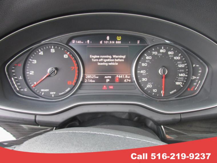 4 Cylinder Engine, ABS, 4-Wheel Disc Brakes, 7-Speed A/T, A/C, A/T, Adjustable Steering Wheel, Security System, All Wheel Drive, Aluminum Wheels, AM/FM Stereo, Transmission w/Dual Shift Mode, Automatic Headlights, Auxiliary Audio Input, Back-Up Camera, Brake Assist, Bucket Seats, Child Safety Locks, Climate Control, Temporary Spare Tire, Cruise Control, Daytime Running Lights, Driver Air Bag, Driver Illuminated Vanity Mirror, Driver Adjustable Lumbar, Driver Vanity Mirror, Multi-Zone A/C, Auto-Dimming Rearview Mirror, Stability Control, Fog Lamps, Floor Mats, Gasoline Fuel, HD Radio, Headlights-Auto-Leveling, Heated Front Seat(s), Heated Mirrors, HID headlights, Integrated Turn Signal Mirrors, Intermittent Wipers, Keyless Entry, Keyless Start, Leather Seats, Leather Steering Wheel, Luggage Rack, MP3 Player, Telematics, Pass-Through Rear Seat, Passenger Air Bag, Passenger Air Bag Sensor, Passenger Illuminated Visor Mirror, Passenger Vanity Mirror, Power Door Locks, Power Mirror(s), Power Driver Seat, Power Liftgate, Power Passenger Seat, Power Steering, Power Windows, Privacy Glass, Rain Sensing Wipers, Rear A/C, Rear Bench Seat, Rear Defrost, Rear Head Air Bag, Rear Spoiler, Remote Trunk Release, Requires Subscription, Front Side Air Bag, Front Head Air Bag, Smart Device Integration, Steering Wheel Audio Controls, Tire Pressure Monitor, Tires - Front All-Season, Tires - Rear All-Season, Traction Control, Trip Computer, Turbocharged, Universal Garage Door Opener, Variable Speed Intermittent Wipers, Engine Immobilizer, Bluetooth Connection, Woodgrain Interior Trim, Aluminum Side Windows Trim, Black Front Windshield Trim and Black Rear Window Trim, Body-Colored Door Handles, Body-Colored Front Bumper w/Metal-Look Rub Strip/Fascia Accent and Metal-Look Bumper Insert, Body-Colored Power Heated Side Mirrors w/Manual Folding and Turn Signal Indicator, Body-Colored Rear Bumper w/Metal-Look Rub Strip/Fascia Accent, Clearcoat Paint, Compact Spare Tire Mounted Inside Under Cargo, Deep Tinted Glass, Fixed Rear Window w/Fixed Interval Wiper and Defroster, Front And Rear Fog Lamps, Front License Plate Bracket, Galvanized Steel/Aluminum Panels, LED Brakelights, Lip Spoiler, Metal-Look Bodyside Insert, Black Bodyside Cladding and Black Wheel Well Trim, Metal-Look Grille, Perimeter/Approach Lights, Power Liftgate Rear Cargo Access, Programmable Projector Beam High Intensity Low/High Beam Auto-Leveling Daytime Running Lights Preference Setting Headlamps w/Delay-Off, Roof Rack, Speed Sensitive Rain Detecting Variable Intermittent Wipers w/Heated Jets, Steel Spare Wheel, Tailgate/Rear Door Lock Included w/Power Door Locks, Tires: 235/60R18 AS, Wheels w/Silver Accents, Wheels: 18" 5-Double-Spoke Dynamic Design, 2 Seatback Storage Pockets, 3 12V DC Power Outlets, 40-20-40 Folding Split-Bench Front Facing Manual Reclining Fold Forward Seatback Rear Seat w/Manual Fore/Aft, Air Filtration, Analog Display, Audi connect CARE Tracker System, Cargo Area Concealed Storage, Cargo Space Lights, Carpet Floor Trim, Compass, Cruise Control, Day-Night Auto-Dimming Rearview Mirror, Delayed Accessory Power, Driver And Passenger Visor Vanity Mirrors w/Driver And Passenger Illumination, Driver And Passenger Auxiliary Mirror, Driver Foot Rest, Driver Seat, Dual Zone Front Automatic Air Conditioning, Engine Immobilizer, Fade-To-Off Interior Lighting, FOB Controls -inc: Cargo Access, Front And Rear Map Lights, Front Center Armrest and Rear Center Armrest, Front Cupholder, Full Carpet Floor Covering -inc: Carpet Front And Rear Floor Mats, Full Cloth Headliner, Full Floor Console w/Covered Storage, Mini Overhead Console and 3 12V DC Power Outlets, Gauges -inc: Speedometer, Odometer, Engine Coolant Temp, Tachometer, Oil Level, Trip Odometer and Trip Computer, Heated 8-Way Power Front Bucket Seats -inc: 4-way power lumbar for driver, HomeLink Garage Door Transmitter, HVAC -inc: Underseat Ducts and Console Ducts, Illuminated Locking Glove Box, Interior Trim -inc: Genuine Wood Instrument Panel Insert, Genuine Wood Door Panel Insert, Genuine Wood Console Insert and Metal-Look Interior Accents, Leather Seating Surfaces, Leather Steering Wheel, Leather/Metal-Look Gear Shifter Material, Leatherette Door Trim Insert, Manual Tilt/Telescoping Steering Column, Manual w/Tilt Front Head Restraints and Manual Adjustable Rear Head Restraints, Outside Temp Gauge, Passenger Seat, Perimeter Alarm, Power 1st Row Windows w/Front And Rear 1-Touch Up/Down, Power Door Locks w/Autolock Feature, Power Fuel Flap Locking Type, Power Rear Windows and Fixed 3rd Row Windows, Proximity Key For Doors And Push Button Start, Rear Cupholder, Rear HVAC w/Separate Controls, Redundant Digital Speedometer, Refrigerated/Cooled Box Located In The Glovebox, Driver / Passenger And Rear Door Bins, Remote Keyless Entry w/Integrated Key Transmitter, 4 Door Curb/Courtesy, Illuminated Entry, Illuminated Ignition Switch and Panic Button, Remote Releases -Inc: Power Cargo Access, Systems Monitor, Trip Computer, Trunk/Hatch Auto-Latch, Valet Function, 18.5 Gal. Fuel Tank, 4-Wheel Disc Brakes w/4-Wheel ABS, Front And Rear Vented Discs, Brake Assist, Hill Descent Control, Hill Hold Control and Electric Parking Brake, 5.302 Axle Ratio, 75-Amp/Hr 420CCA Maintenance-Free Battery w/Run Down Protection, Automatic Full-Time All-Wheel, Electric Power-Assist Speed-Sensing Steering, Engine Auto Stop-Start Feature, Engine Oil Cooler, Engine: 2.0L TFSI Direct-Injection DOHC 4 Cylinder, Front And Rear Anti-Roll Bars, Gas-Pressurized Shock Absorbers, GVWR: 5, 434 lbs, Multi-Link Front Suspension w/Coil Springs, Multi-Link Rear Suspension w/Coil Springs, Permanent Locking Hubs, Quasi-Dual Stainless Steel Exhaust, Regenerative 150 Amp Alternator, Transmission w/Driver Selectable Mode and Oil Cooler, Transmission: 7-Speed S tronic Dual-Clutch Auto, ABS And Driveline Traction Control, Airbag Occupancy Sensor, Audi connect CARE Emergency Sos, Audi pre sense city, Back-Up Camera, Dual Stage Driver And P