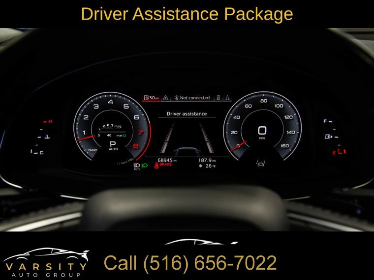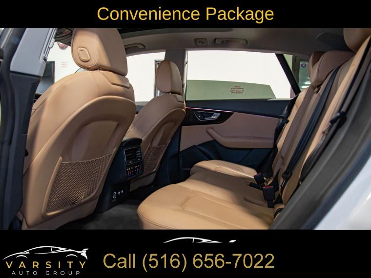 Navigation System, Ambient Interior Lighting Plus Package, Cold Weather Package, Convenience Package, Driver Assistance Package, Prestige, Towing Package, 10 Speakers, AM/FM radio: SiriusXM, Bang & Olufsen 3D Premium Sound System, CD/DVD Player, Radio data system, Radio: Audi MMI Navigation Plus w/Touch Response, 4-Zone Climate Control, Air Conditioning, Automatic temperature control, Front dual zone A/C, Rear air conditioning, Rear window defroster, Heads-Up Display, Heated Rear Seats, Memory seat, Power Door Closers, Power driver seat, Power steering, Power windows, Remote keyless entry, Steering wheel memory, Steering wheel mounted audio controls, Adaptive suspension, Four wheel independent suspension, Speed-sensing steering, Traction control, 4-Wheel Disc Brakes, ABS brakes, Dual front impact airbags, Dual front side impact airbags, Emergency communication system: Audi connect CARE, Front anti-roll bar, Low tire pressure warning, Occupant sensing airbag, Overhead airbag, Rear anti-roll bar, Power moonroof, Power Liftgate, Brake assist, Electronic Stability Control, Exterior Parking Camera Rear, Delay-off headlights, Front fog lights, Fully automatic headlights, Headlight Washer System, Rear fog lights, Panic alarm, Security system, Audi Adaptive Cruise Assist, Speed control, Audi Guard Protection Kit, Bumpers: body-color, HD Matrix Design LED Headlights, Heated door mirrors, Heated Power Folding Auto-Dimming Exterior Mirrors, High-Beam Assist, Power door mirrors, Roof rack: rails only, Spoiler, Turn signal indicator mirrors, Alu Touch-Sensitive Interior Buttons, Audi Active Lane Departure Warning, Audi Phone Box w/Wireless Charging, Audi Side Assist w/Pre Sense Rear, Audi smartphone interface (Apple CarPlay/Android Auto), Auto-dimming Rear-View mirror, Compass, Driver door bin, Driver vanity mirror, Front & Rear Doors Audi Beam-Rings, Front reading lights, Garage door transmitter: HomeLink, Genuine wood door panel insert, Heated Steering Wheel, High-Gloss Gray Oak Wood Inlays, Illuminated Door Sills, Illuminated entry, Leather Dashboard, Leather Shift Knob, Leather steering wheel, Outside temperature display, Overhead console, Passenger vanity mirror, Rear reading lights, Rear seat center armrest, Tachometer, Telescoping steering wheel, Tilt steering wheel, Top View Camera System, Traffic Sign Recognition, Trip computer, USB Cables, Front Bucket Seats, Front Center Armrest, Heated Front Bucket Seats, Heated front seats, Leather Seating Surfaces, Power passenger seat, Split folding rear seat, Ventilated Front Seats, Passenger door bin, Towing 7 Pin Connector, Alloy wheels, Wheels: 20" 5-Spoke, Wheels: 21" 5-Spoke W-Design, Electric Sunblinds for Rear Side Windows, Rain sensing wipers, Rear window wiper, Variably intermittent wipers, Axle Ratio: TBA, 2019 Audi Q8 3.0T Prestige quattro, Glacier White, Saiga Beige w/Leather Seating Surfaces or Valcona Leather Seat Trim, One Owner