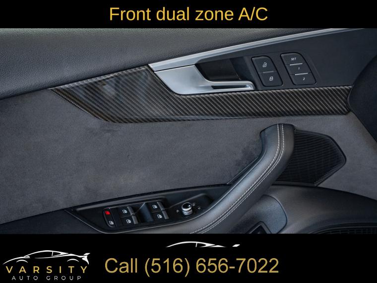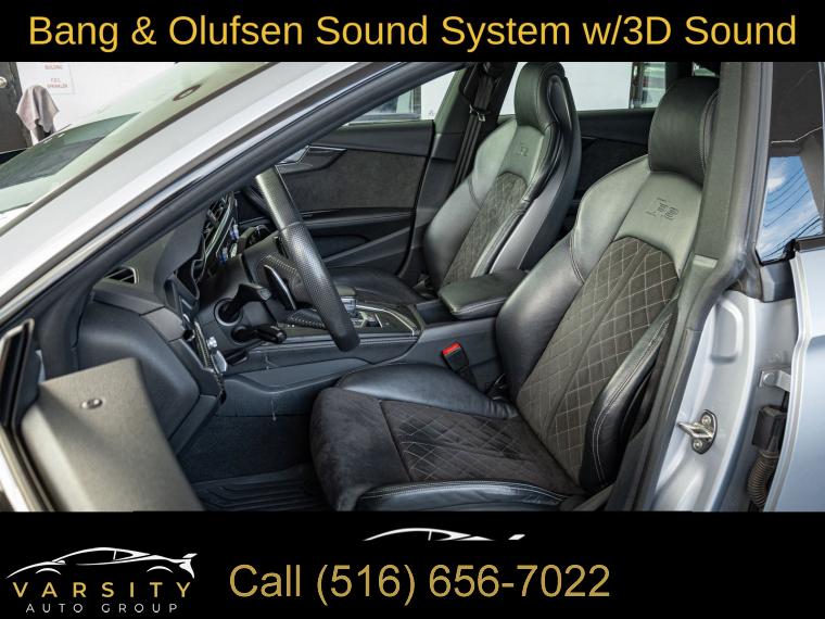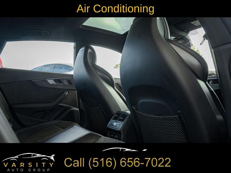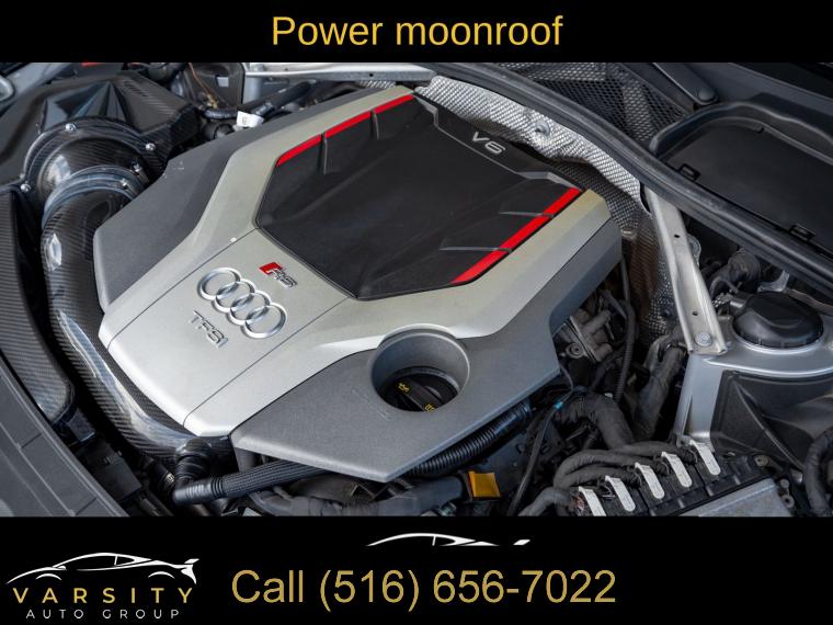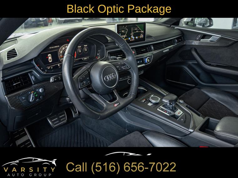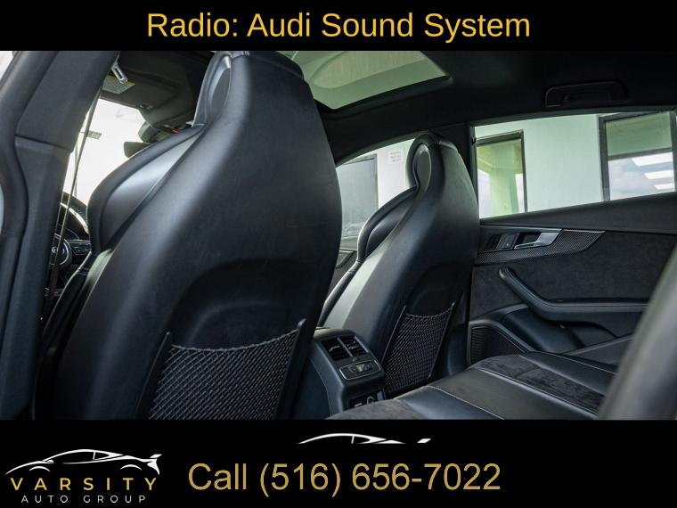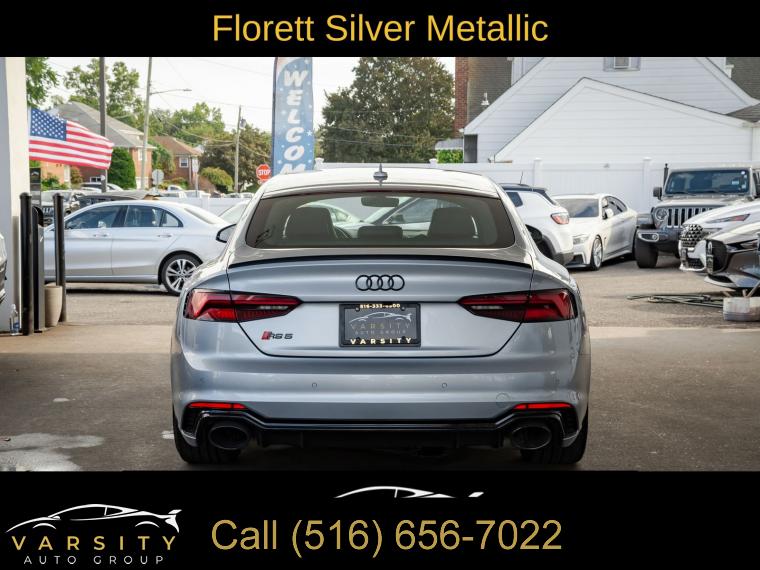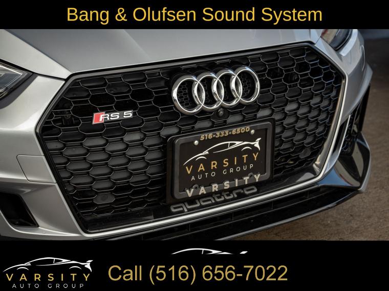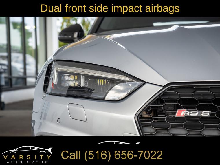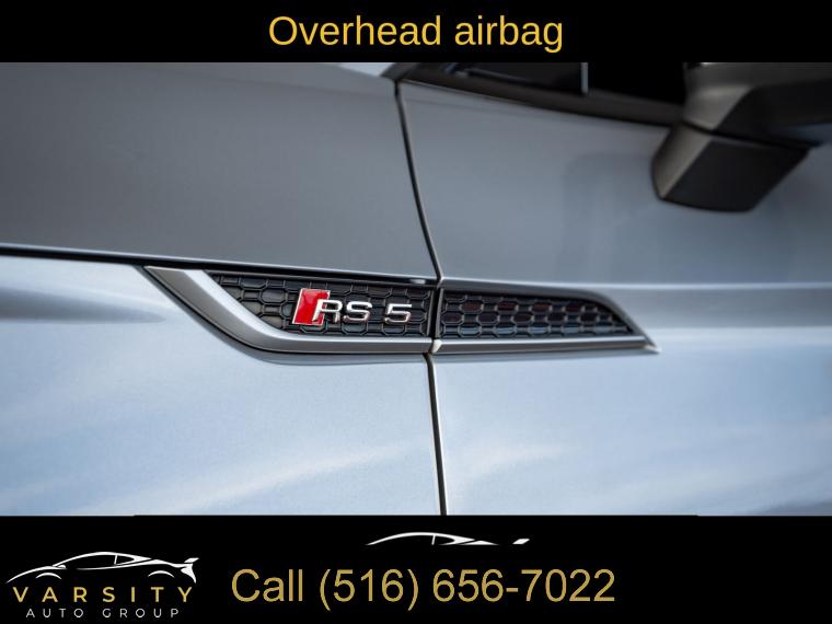 Navigation system: Audi Navigation Plus, Black Optic Package, Dynamic Package, RS Driver Assistance Package, 10 Speakers, AM/FM radio: SiriusXM, Bang & Olufsen Sound System w/3D Sound, Radio data system, Radio: Audi Sound System, Air Conditioning, Automatic temperature control, Front dual zone A/C, Rear air conditioning, Rear window defroster, Head-Up Display, Memory seat, Power driver seat, Power steering, Power windows, Remote keyless entry, Steering wheel mounted audio controls, Four wheel independent suspension, Speed-sensing steering, Traction control, 4-Wheel Disc Brakes, ABS brakes, Dual front impact airbags, Dual front side impact airbags, Dynamic Steering, Emergency communication system: Audi connect CARE, Front anti-roll bar, Knee airbag, Low tire pressure warning, Occupant sensing airbag, Overhead airbag, Rear anti-roll bar, Red Brake Calipers, Power moonroof, Power Liftgate, Brake assist, Electronic Stability Control, Exterior Parking Camera Rear, Delay-off headlights, Front fog lights, Headlight cleaning, High-Beam Assistant, Panic alarm, Security system, Adaptive Cruise Control w/Traffic Jam Assist, Speed control, Auto-dimming door mirrors, Bumpers: body-color, Heated door mirrors, High Gloss Black Exterior Kit w/quattro Script, High-Gloss Black Exterior Mirror Housings, Power door mirrors, RS Sport Exhaust System w/Black Tips, RS Sport Suspension Plus w/Dynamic Ride Control, Spoiler, Turn signal indicator mirrors, Audi Active Lane Assist, Audi smartphone interface (Apple CarPlay/Android Auto), Auto-dimming Rear-View mirror, Compass, Driver door bin, Driver vanity mirror, Front reading lights, Garage door transmitter: HomeLink, Heated S Sport Front Seats, Illuminated entry, Leather Shift Knob, Leather steering wheel, Outside temperature display, Overhead console, Park Steering Assist, Passenger vanity mirror, Rear reading lights, Rear seat center armrest, Sport steering wheel, Tachometer, Telescoping steering wheel, Tilt steering wheel, Top View Camera System, Traffic Sign Recognition, Trip computer, Front Bucket Seats, Front Center Armrest, Heated front seats, Leather/Alcantara Seating Surfaces, Power passenger seat, Split folding rear seat, Passenger door bin, Wheels: 20" 5-Arm-Flag Forged Design, Rain sensing wipers, Speed-Sensitive Wipers, Variably intermittent wipers, The Price you See, is the Price You Pay!!!, Audi RS 5 2.9T, quattro, Florett Silver Metallic, Bang & Olufsen Sound System