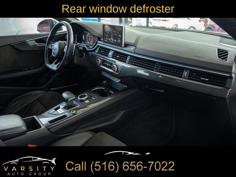 The Price you See, is the Price You Pay!!!, Audi RS 5 2.9T, quattro, Florett Silver Metallic, Black Optic Package, Bang & Olufsen Sound System, 10 Speakers, 4-Wheel Disc Brakes, ABS brakes, Adaptive Cruise Control w/Traffic Jam Assist, Air Conditioning, AM/FM radio: SiriusXM, Audi Active Lane Assist, Audi smartphone interface (Apple CarPlay/Android Auto), Auto-dimming door mirrors, Auto-dimming Rear-View mirror, Automatic temperature control, Bang & Olufsen Sound System w/3D Sound, Black Optic Package, Brake assist, Bumpers: body-color, Compass, Delay-off headlights, Driver door bin, Driver vanity mirror, Dual front impact airbags, Dual front side impact airbags, Dynamic Package, Dynamic Steering, Electronic Stability Control, Emergency communication system: Audi connect CARE, Exterior Parking Camera Rear, Four wheel independent suspension, Front anti-roll bar, Front Bucket Seats, Front Center Armrest, Front dual zone A/C, Front fog lights, Front reading lights, Garage door transmitter: HomeLink, Head-Up Display, Headlight cleaning, Heated door mirrors, Heated front seats, Heated S Sport Front Seats, High Gloss Black Exterior Kit w/quattro Script, High-Beam Assistant, High-Gloss Black Exterior Mirror Housings, Illuminated entry, Knee airbag, Leather Shift Knob, Leather steering wheel, Leather/Alcantara Seating Surfaces, Low tire pressure warning, Memory seat, Navigation system: Audi Navigation Plus, Occupant sensing airbag, Outside temperature display, Overhead airbag, Overhead console, Panic alarm, Park Steering Assist, Passenger door bin, Passenger vanity mirror, Power door mirrors, Power driver seat, Power Liftgate, Power moonroof, Power passenger seat, Power steering, Power windows, Radio data system, Radio: Audi Sound System, Rain sensing wipers, Rear air conditioning, Rear anti-roll bar, Rear reading lights, Rear seat center armrest, Rear window defroster, Red Brake Calipers, Remote keyless entry, RS Driver Assistance Package, RS Sport Exhaust System w/Black Tips, RS Sport Suspension Plus w/Dynamic Ride Control, Security system, Speed control, Speed-sensing steering, Speed-Sensitive Wipers, Split folding rear seat, Spoiler, Sport steering wheel, Steering wheel mounted audio controls, Tachometer, Telescoping steering wheel, Tilt steering wheel, Top View Camera System, Traction control, Traffic Sign Recognition, Trip computer, Turn signal indicator mirrors, Variably intermittent wipers, Wheels: 20" 5-Arm-Flag Forged Design. Florett Silver Metallic 2019 Audi RS 5 2.9T quattro quattro 8-Speed Automatic with Tiptronic 2.9L TFSI 6 Cylinder 24V DOHC Odometer is 20266 miles below market average! 17/26 City/Highway MPG