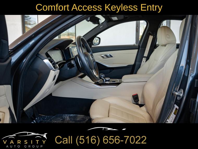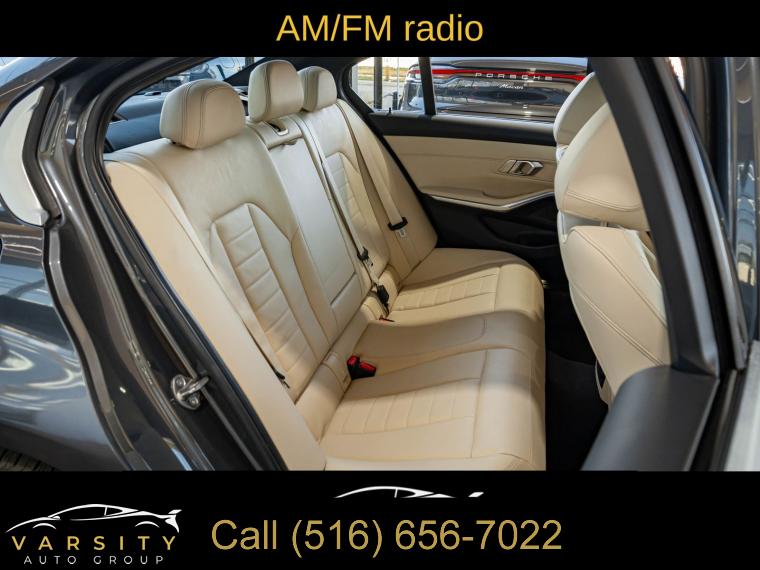Connected Package Pro, Convenience Package, Wireless Charging, 10 Speakers, AM/FM radio, HD Radio, Hi-Fi Sound System, Radio data system, Radio: AM/FM Audio System, SiriusXM Satellite Radio, Air Conditioning, Automatic temperature control, Front dual zone A/C, Rear air conditioning, Rear window defroster, Comfort Access Keyless Entry, Lumbar Support, Memory seat, Power driver seat, Power steering, Power windows, Remote Engine Start, Remote keyless entry, Steering wheel mounted audio controls, Four wheel independent suspension, Speed-sensing steering, Traction control, 4-Wheel Disc Brakes, ABS brakes, Dual front impact airbags, Dual front side impact airbags, Emergency communication system: BMW Assist eCall, Front anti-roll bar, Low tire pressure warning, Occupant sensing airbag, Overhead airbag, Rear anti-roll bar, Power moonroof, Power Tailgate, Active Blind Spot Detection, Brake assist, Electronic Stability Control, Exterior Parking Camera Rear, Delay-off headlights, Fully automatic headlights, Panic alarm, Security system, Speed control, Auto-dimming door mirrors, Bumpers: body-color, Heated door mirrors, LED Headlights w/Cornering Lights, Power door mirrors, Turn signal indicator mirrors, Active Driving Assistant, Ambient Lighting, Apple CarPlay Compatibility, Auto-dimming Rear-View mirror, Driver door bin, Driver vanity mirror, Front reading lights, Garage door transmitter, Genuine wood console insert, Genuine wood dashboard insert, Hands-Free Bluetooth & USB Audio Connection, Illuminated entry, Leather Shift Knob, Leather steering wheel, Live Cockpit Pro, Outside temperature display, Park Distance Control, Passenger vanity mirror, Rear reading lights, Rear seat center armrest, Sport steering wheel, Tachometer, Telescoping steering wheel, Tilt steering wheel, Trip computer, WiFi Hotspot, Front Bucket Seats, Front Center Armrest, Heated Front Seats, Power Front Seats, Power passenger seat, SensaTec Upholstery, Split folding rear seat, Sport Seats, Vernasca Leather Upholstery, Passenger door bin, Alloy wheels, Wheels: 18" x 7.5" V-Spoke Bi-Color Orbit Grey, Rain sensing wipers, Speed-Sensitive Wipers, Variably intermittent wipers, The Price you See, is the Price You Pay!!!, BMW 330i, Mineral Grey Metallic, Canberra Beige/Black Vernasca leather interior, Clean CARFAX