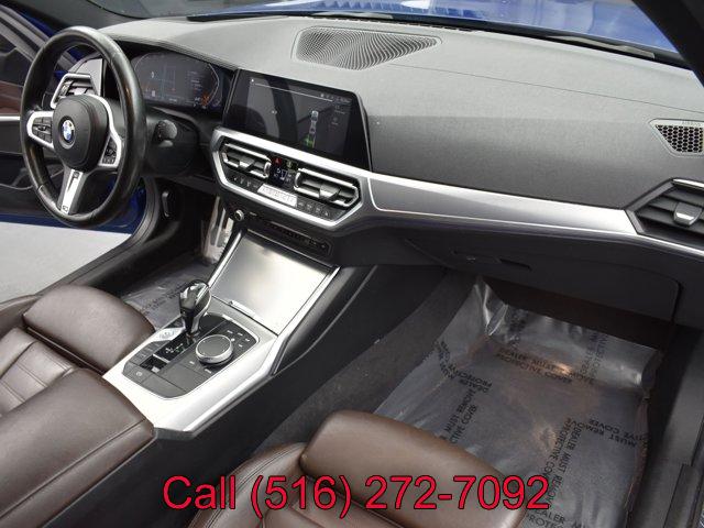 Only 51,428 Miles! Boasts 34 Highway MPG and 25 City MPG! This BMW 3 SERIES delivers a Intercooled Turbo Premium Unleaded I-4 2.0 L/122 engine powering this Automatic transmission. WHEELS: 19 X 8 M DOUBLE-SPOKE BI-COLOR JET BLACK -inc: (Style 791M), Tires: 225/40R19 All-Season Run-Flat, SENSATEC DASHBOARD, REMOTE ENGINE START.* This BMW 3 SERIES Features the Following Options *PREMIUM PACKAGE -inc: Live Cockpit Pro, navi, Apple CarPlay Compatibility, Connected Package Pro, Head-Up Display, Heated Steering Wheel, Heated Front Seats, M SPORT PACKAGE -inc: M footrest and signature key, LED Fog Lights, Active Driving Assistant, cross-traffic alert rear, For vehicles equipped w/navigation, speed limit info is additionally included, Variable Sport Steering, LED Headlights w/Cornering Lights, Without Lines Designation Outside, SensaTec Dashboard, Wheels: 19 x 8 M Double-Spoke Bi-Color Jet Black, (Style 791M), Tires: 225/40R19 All-Season Run-Flat, Shadowline Exterior Trim, Comfort Access Keyless Entry, Lumbar Support, Aluminum Tetragon Interior Trim, SiriusXM Satellite Radio (subscription required), M Steering Wheel, M Sport Package (337), M Sport Suspension, Aerodynamic Kit, Active Blind Spot Detection, LIVE COCKPIT PRO -inc: navi, Apple CarPlay Compatibility, Connected Package Pro , PORTIMAO BLUE METALLIC, PARK DISTANCE CONTROL, MOCHA, VERNASCA LEATHER UPHOLSTERY, HEATED STEERING WHEEL, HEATED FRONT SEATS, HARMAN/KARDON SURROUND SOUND SYSTEM, AMBIENT LIGHTING.* Visit Us Today *Come in for a quick visit at Turn Auto Mall, 2 Jericho Turnpike, New Hyde Park, NY 11040 to claim your BMW 3 SERIES!