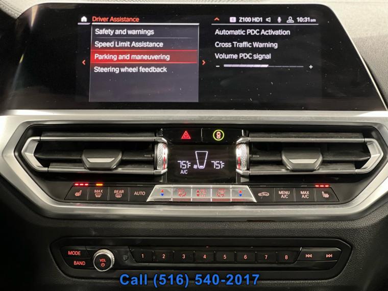 Sunroof/Moonroof, Remote Start, Navigation System, Leather Seats, Heated Seats, Bluetooth, Backup Camera, Seating capacity: 5, Split front seats: Bucket front seats, Driver seat direction: Driver seat with 12-way directional controls, Passenger seat direction: Front passenger seat with 12-way directional controls, Front head restraints: Height and tilt adjustable front seat head restraints, Front head restraint control: Manual front seat head restraint control, Rear seats fixed or removable: Fixed rear seats, Rear seats: Rear bench seat, Rear seat folding position: Fold forward rear seatback, Folding rear seats: 40-20-40 folding rear seats, Rear head restraints: Foldable rear seat head restraints, Rear head restraint control: Manual rear seat head restraint control, Rear head restraint control: 3 rear seat head restraints, Front seatback upholstery: Plastic front seatback upholstery, Door trim insert: Leatherette door trim insert, Headliner material: Cloth headliner material, Headliner coverage: Full headliner coverage, Floor covering: Full carpet floor covering, Floor mats: Carpet front and rear floor mats, Gearshifter material: Leather and metal-look gear shifter material, Door panel insert: Metal-look door panel insert, Interior accents: Metal-look interior accents, Rear seatback upholstery: Carpet rear seatback upholstery, Number of memory settings: 2 memory settings, Climate control: Automatic climate control, Air conditioning: Yes, Dual-zone front climate control: Dual-zone front climate control, Rear climate control: Rear climate control system with separate controls, Cabin air filter: Cabin air filter, Rear under seat ducts: Rear under seat climate control ducts, Residual heat recirculation: Residual heat recirculation, Rear console climate control ducts: Rear console climate control ducts, Steering wheel material: Leather steering wheel, Steering wheel tilt: Manual tilting steering wheel, Steering wheel telescopic: Manual telescopic steering wheel, Tinted windows: Light tinted windows, Armrests rear: Rear seat center armrest, Armrests front center: Sliding front seat center armrest, Sport steering wheel: Sport steering wheel, Floor coverage: Full floor coverage, Passenger doors rear left: Conventional left rear passenger door, Rear cargo door: Trunk, Heated door mirrors: Heated driver and passenger side door mirrors, Door mirror with tilt-down in reverse: Power passenger door mirror with tilt down in reverse, Passenger doors rear right: Conventional right rear passenger door, Visor driver mirror: Driver visor mirror, Visor illuminated driver mirror: Illuminated driver visor mirror, Visor passenger mirror: Passenger visor mirror, Visor illuminated passenger mirror: Illuminated passenger visor mirror, Rearview mirror: Auto-dimming rear view mirror, Beverage holders: Front beverage holders, Rear seat direction: Front facing rear seat, Memory settings: Memory settings include: door mirrors, Floor console: Full floor console, Floor console storage: Covered floor console storage, Glove box: Illuminated locking glove box, Number of beverage holders: 8 beverage holders, Seatback storage pockets: 2 seatback storage pockets, Door bins front: Driver and passenger door bins, Door bins rear: Rear door bins, Cargo floor type: Carpet cargo area floor, Trunk lid trim: Carpet trunk lid trim, Cargo tie downs: Cargo area tie downs, Cargo light: Cargo area light, Concealed cargo storage: Cargo area concealed storage, Steering mounted audio control: Steering wheel mounted audio controls, Cruise control: Cruise control with steering wheel mounted controls, Cargo access: Power cargo area access release, Driver foot rest: Driver foot rest, Accessory power: Retained accessory power, Garage door opener: Garage door opener, 12V power outlets: 3 12V power outlets, Door locks: Power door locks with 2 stage unlocking, Keyfob keyless entry: Keyfob keyless entry, All-in-one key: All-in-one remote fob and ignition key, Auto door locks: Auto-locking doors, Fob engine controls: Smart key with push button start, Interior lock disable: Interior lock disable, Valet key: Valet key, Auto-dimming door mirror driver: Auto-dimming driver side mirror, Fuel door lock: Power fuel door lock, Tailgate control: Tailgate/power door lock, Keyfob cargo controls: Keyfob trunk control, Keyfob window controls: Keyfob window control, Keyfob sunroof controls: Keyfob sunroof/convertible roof control, Tachometer: Tachometer, Engine/electric motor temperature gauge: Engine/electric motor temperature gauge, Clock: Digital clock, Temperature display: Exterior temperature display, Folding door mirrors: Power folding door mirrors, Engine temperature warning: Engine temperature warning, Battery charge warning: Battery charge warning, Low level warnings: Low level warning for oil coolant, fuel, washer fluid and brake fluid, Key in vehicle warning: Key in vehicle warning, Bulb warning: Bulb failure warning, Door ajar warning: Rear cargo area ajar warning, Service interval warning: BMW TeleServices service interval indicator, Oil pressure warning: Oil pressure warning, Brake pad warning: Brake pad wear indicator, Trip computer: Trip computer, First-row windows: Power first-row windows, Second-row windows: Power second-row windows, One-touch down window: Front and rear one-touch down windows, One-touch up window: Front and rear one-touch up windows, Wipers: Variable intermittent front windshield wipers, Speed sensitive wipers: Speed sensitive wipers, Rear window defroster: Rear window defroster, Rear windshield: Fixed rear windshield, Beverage holders rear: Rear beverage holders, Auto-dimming door mirror passenger: Auto-dimming passenger side mirror, Built-in virtual assistant: Built-in virtual assistant, Driver information center: Driver information center, Day/Night rearview mirror: Day/Night rearview mirror, Front reading lights: Front reading lights, Rear reading lights: Rear reading lights, Variable panel light: Variable instrument panel lig