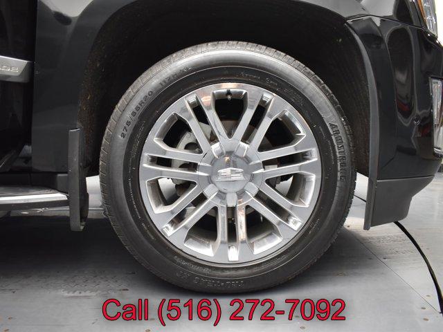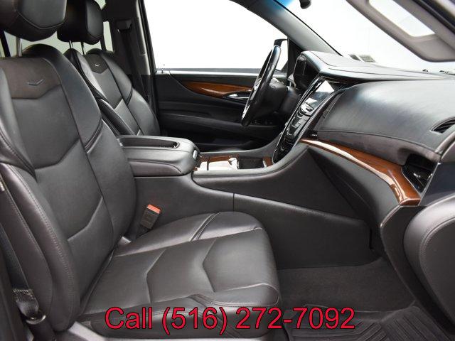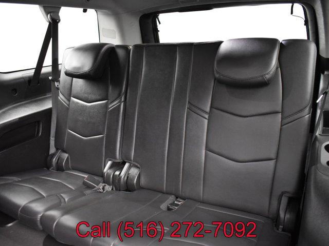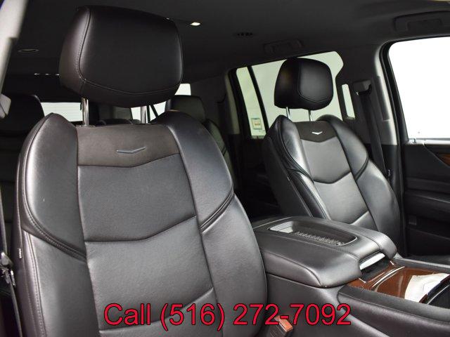 CADILLAC USER EXPERIENCE WITH EMBEDDED NAVIGATION AM/FM stereo with 8 diagonal color information display featuring touch response haptic feedback gesture recognition Natural Voice Recognition Phone Integration for Apple CarPlay and Android Auto capability for compatible phone Connected Apps and Teen Driver. Five USB ports including one in the articulating storage door/bin and auxiliary audio port (STD), LPO ALL-WEATHER CARGO MAT, WHEELS 20 X 9 (50.8 CM X 22.9 CM) DUAL 7-SPOKE ALLOY WITH CHROME FINISH (STD), TIRES P275/55R20 ALL-SEASON BLACKWALL (STD), PREFERRED EQUIPMENT GROUP Includes Standard Equipment, LPO ALL-WEATHER FLOOR MATS 1ST 2ND AND 3RD ROW, REAR AXLE 3.23 RATIO, SEATS SECOND ROW BUCKET MANUAL (STD), TRANSMISSION 10-SPEED AUTOMATIC electronically controlled with overdrive tow/haul mode and tap up/tap down shifting (STD), LICENSE PLATE BRACKET FRONT BLACK, SEATS FRONT BUCKET with leather seating surfaces driver and front passenger 12-way power seat adjusters including 4-way power lumbar control independently heated driver and front passenger seat cushions and seatbacks (three settings) and 2-position driver memory (STD), LPO POLISHED EXHAUST TIP, BLACK RAVEN, JET BLACK LEATHER SEATING SURFACES with mini perforated inserts, LPO MOLDED SPLASH GUARDS BLACK, LPO INTERIOR PROTECTION PACKAGE includes (VAV) all-weather floor mats LPO and (VLI) all-weather cargo mat LPO, ENGINE 6.2L V8 WITH ACTIVE FUEL MANAGEMENT Spark Ignition Direct Injection (SIDI) and Variable Valve Timing (VVT) includes aluminum block construction (420 hp [313.2 kW] @ 5600 rpm 460 lb-ft of torque [621 N-m] @ 4100 rpm) (STD), Keyless Start, Locking/Limited Slip Differential, Four Wheel Drive, Tow Hitch, Active Suspension, Air Suspension, Power Steering, ABS, 4-Wheel Disc Brakes, 4-Wheel Disc Brakes, Chrome Wheels, Tires - Front Performance, Tires - Rear Performance, Conventional Spare Tire, Conventional Spare Tire, Luggage Rack, Running Boards/Side Steps, Privacy Glass, Heated Mirrors, Power Mirror(s), Integrated Turn Signal Mirrors, Power Folding Mirrors, Intermittent Wipers, Variable Speed Intermittent Wipers, Rain Sensing Wipers, Intermittent Wipers, Remote Trunk Release, Power Liftgate, Hands-Free Liftgate, AM/FM Stereo, Navigation System, MP3 Capability, Bluetooth Connection, Auxiliary Audio Input, Smart Device Integration, Driver Restriction Features, Satellite Radio, Requires Subscription, HD Radio, Premium Sound System, CD Player, MP3 Capability, WiFi Hotspot, Bluetooth Connection, Satellite Radio, Telematics, Navigation from Telematics, Requires Subscription, Power Driver Seat, Power Passenger Seat, Leather Seats, Bucket Seats, Heated Front Seat(s), Driver Adjustable Lumbar, Passenger Adjustable Lumbar, Seat Memory, Bucket Seats, Rear Bucket Seats, Heated Front Seat(s), Cooled Front Seat(s), Heated Rear Seat(s), Power Passenger Seat, 3rd Row Seat, Pass-Through Rear Seat, Climate Control, A/C, MP3 Capability, Auxiliary Audio Input, Heated Rear Seat(s), Floor Mats, Adjustable Steering Wheel, Leather Steering Wheel, Adjustable Steering Wheel, Heated Steering Wheel, Steering Wheel Audio Controls, Tire Pressure Monitor, Trip Computer, Power Windows, Power Windows, Power Door Locks, Power Door Locks, Adjustable Pedals, Adjustable Steering Wheel, Mirror Memory, Adjustable Pedals, Seat Memory, Keyless Entry, Power Door Locks, Immobilizer, Keyless Start, Remote Engine Start, Cruise Control, Universal Garage Door Opener, Security System, Immobilizer, Climate Control, Multi-Zone A/C, A/C, Rear A/C, Rear Defrost, Auto-Dimming Rearview Mirror, Traction Control, Stability Control, Driver Air Bag, Passenger Air Bag, Front Side Air Bag, Front Head Air Bag, Rear Head Air Bag, Passenger Air Bag Sensor, Telematics, Requires Subscription, Rear Parking Aid, Rear Parking Aid, Automatic Parking, Back-Up Camera, Aerial View Display System, Child Safety Locks, Driver Restriction Features, Tire Pressure Monitor