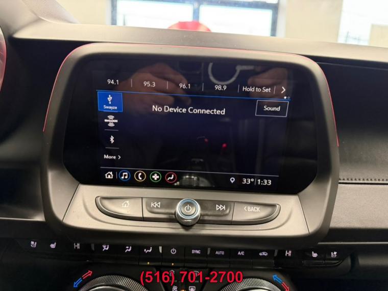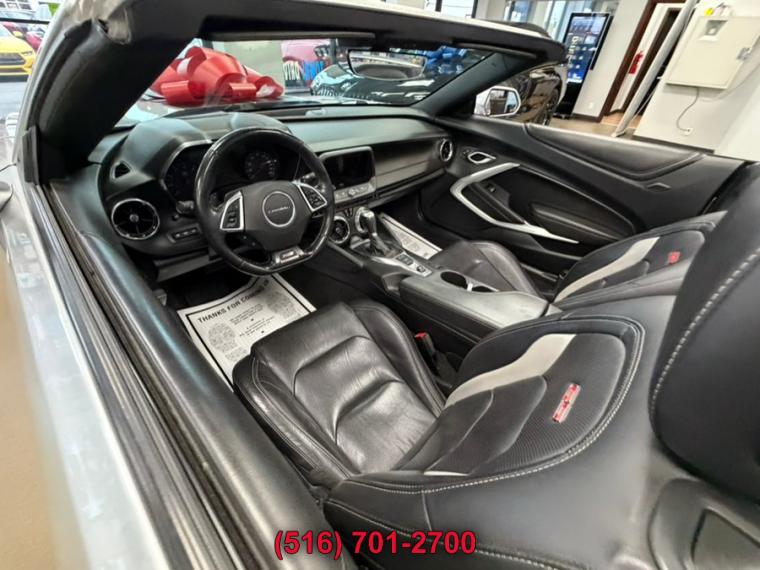 10-Speed A/T, ABS, 4-Wheel Disc Brakes, 8 Cylinder Engine, A/C, A/T, Adjustable Steering Wheel, Security System, Aluminum Wheels, AM/FM Stereo, Auxiliary Audio Input, Back-Up Camera, Blind Spot Monitor, Brake Assist, Bucket Seats, Climate Control, Convertible Soft Top, Cooled Front Seat(s), Cross-Traffic Alert, Cruise Control, Daytime Running Lights, Driver Air Bag, Driver Restriction Features, Driver Vanity Mirror, Multi-Zone A/C, Stability Control, Emergency Trunk Release, Floor Mats, Front Reading Lamps, Gasoline Fuel, Heads-Up Display, Heated Front Seat(s), Heated Mirrors, Heated Steering Wheel, Intermittent Wipers, Keyless Entry, Keyless Start, Knee Air Bag, Leather Seats, Leather Steering Wheel, Locking/Limited Slip Differential, Mirror Memory, MP3 Player, Telematics, Passenger Air Bag, Passenger Air Bag Sensor, Passenger Vanity Mirror, Power Door Locks, Power Mirror(s), Power Driver Seat, Power Passenger Seat, Power Steering, Power Windows, Premium Sound System, Rear Side Air Bag, Rear Defrost, Rear Head Air Bag, Rear Parking Aid, Rear Spoiler, Rear Wheel Drive, Remote Engine Start, Remote Trunk Release, Requires Subscription, Satellite Radio, Seat Memory, Front Side Air Bag, Front Head Air Bag, Smart Device Integration, Tire Pressure Monitor, Tires - Front Performance, Tires - Rear Performance, Traction Control, Variable Speed Intermittent Wipers, WiFi Hotspot, Bluetooth Connection, Convertible top, power-folding, remote control (down only) includes glass rear window with integral defogger, Mirrors, outside heated power-adjustable and driver-side auto-dimming, body-color, Spoiler, rear, stanchion, Tires, 245/40ZR20 front and 275/35ZR20 rear, blackwall, summer-only, run-flat (Do not use summer only tires in winter conditions, as it would adversely affect vehicle safety, performance and durability. Use only GM-approved tire and wheel combinations. Unapproved combinations may change the vehicle's performance characteristics. For important tire, Wheels, 20" x 8.5" (50.8 cm x 21.6 cm) front and 20" x 9.5" (50.8 cm x 24.1 cm) rear bright 5-spoke Silver-painted aluminum, Wipers, front variable-speed, intermittent with washers, Air conditioning, dual-zone automatic climate control with individual climate settings for driver and dedicated passenger controls and outside temperature display, Compass display, Cruise control, electronic with set and resume speed, steering wheel mounted, Cup holders, 2 front, Dead pedal, driver, Defogger, rear-window, electric, Door locks, power programmable with lockout protection, Driver Information Center, enhanced, 8" diagonal multi-color re-configurable display, Floor mats, carpeted front, Glovebox, lockable, Head-Up Display with color digital readouts for vehicle speed, selected gear, G-Force, audio system information, high-beam indicator, compass, outside air temperature, tachometer, vehicle messages, Turn-by-Turn information and phone information, Interior trim, aluminum accents on door trim and shifter cap, Keyless Open and Start includes 2 remote transmitters that enable automatic door unlock and open by touching door switch, Lighting, front reading lamps, Lighting, interior spectrum, 24 different color selections, Power outlet, 1 located on center console, Rear Camera Mirror, Seat adjuster, driver, 8-way power, Seat adjuster, front passenger, 6-way power, Seat, rear fixed, Seats, heated driver and front passenger, Seats, Leather-trimmed front Sport bucket, Seats, ventilated driver and front passenger, Shift knob, leather-wrapped, Sill plates, illuminated, Speedometer, miles/kilometers, Steering column, manual rake and telescopic, Steering wheel, heated, Steering wheel, leather-wrapped, flat-bottom, Theft-deterrent system, electrical, unauthorized entry, Trunk release, power, Visors, driver and front passenger vanity mirrors, Windows, power with driver and passenger Express-Down/Up, Battery rundown protection, Brakes, Brembo 4-piston front and rear, performance, 4-wheel antilock, 4-wheel disc, Cooling system, extra capacity, Cooling, external engine oil cooler, Differential, limited slip, Driver Selector Mode up to 4 modes available for various driving conditions - Snow/Ice, Tour, Sport and Track (SS and ZL1 models only), Engine, 6.2L (376 ci) V8 DI, VVT (455 hp [339.3 kW] @ 6000 rpm, 455 lb-ft of torque [614.3 N-m] @ 4400 rpm), Exhaust, dual-outlet stainless-steel with bright tips, Fueling system, capless, Rear axle, 3.73 ratio (Included with (MN6) 6-speed manual transmission.), Rear wheel drive, Steering, power, variable ratio, electric, Suspension, Performance, Transmission, 6-speed manual (Includes Active Rev Matching.), Airbags, dual-stage frontal, knee, head and thorax side-impact, driver and front passenger includes Passenger Sensing System (Always use seat belts and child restraints. Children are safer when properly secured in a rear seat in the appropriate child restraint. See the Owner's Manual for more information.), Brake, parking, electric, Chevrolet Connected Access with 10 years of standard connectivity which enables services such as, Vehicle Diagnostics, Dealer Maintenance Notification, Chevrolet Smart Driver, Marketplace and more (Limitations apply. Not transferable. Standard connectivity available to original purchaser for ten years from the date of initial vehicle purchase for m, Daytime Running Lamps, LED, HD Rear Vision Camera, Lane Change Alert with Side Blind Zone Alert, LATCH system (Lower Anchors and Tethers for CHildren), for child restraint seats, OnStar and Chevrolet connected services capable (Fleet orders receive a 3-month trial. Visit onstar.com for coverage map, details and system limitations. Services vary by model.), Rear Cross Traffic Alert, Rear Park Assist, Seat belts, 3-point, all positions includes front seat driver and front passenger seat belt pretensioners, StabiliTrak, stability control system with brake assist includes traction control, Teen Driver mode configurable feature that lets you activate customizab