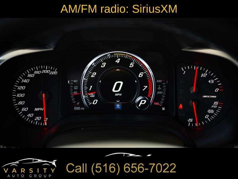 Navigation System, Preferred Equipment Group 1LZ, 9 Speakers, AM/FM radio: SiriusXM, Bose Premium 9-Speaker Audio System Feature, Radio data system, Radio: Chevrolet Infotainment System w/Navigation, Air Conditioning, Automatic temperature control, Front dual zone A/C, Rear window defroster, Head-Up Display, Heads-Up Display, Power driver seat, Power steering, Power windows, Remote keyless entry, Remote Vehicle Starter System, Steering wheel mounted audio controls, Adaptive suspension, Four wheel independent suspension, Speed-sensing steering, Traction control, 4-Wheel Disc Brakes, ABS brakes, Dual front impact airbags, Dual front side impact airbags, Emergency communication system, Front anti-roll bar, Low tire pressure warning, Occupant sensing airbag, Rear anti-roll bar, Painted Body-Color Carbon Fiber Removable Roof Panel, Electronic Stability Control, Exterior Parking Camera Rear, Delay-off headlights, Fully automatic headlights, High-Intensity Discharge Headlights, Panic alarm, Red Seat Belt Color, Speed control, Bumpers: body-color, Front License Plate Bracket, Heated door mirrors, Power door mirrors, Spoiler, Apple CarPlay/Android Auto, Compass, Customer Engine Build Program, Driver door bin, Driver vanity mirror, Front reading lights, GT Bucket Seats, Illuminated entry, Leather Shift Knob, Leather steering wheel, Outside temperature display, Passenger vanity mirror, Performance Data & Video Recorder, Sport steering wheel, Tachometer, Telescoping steering wheel, Tilt steering wheel, Trip computer, Voltmeter, 8-Way Driver & Passenger Seat Adjusters, Front Bucket Seats, Front Center Armrest, Power passenger seat, Passenger door bin, Alloy wheels, Wheels: 19" x 10" Fr & 20" x 12" Rr Z06 Pearl, Variably intermittent wipers, 2.41 Limited-Slip Rear Axle Ratio, The Price you See, is the Price You Pay!!!