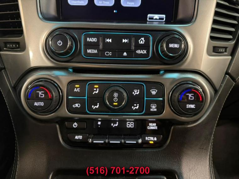 ABS, 4-Wheel Disc Brakes, 6-Speed A/T, 8 Cylinder Engine, A/C, A/T, Adjustable Steering Wheel, Security System, AM/FM Stereo, Automatic Headlights, Auxiliary Audio Input, Back-Up Camera, Brake Assist, CD Player, Child Safety Locks, Climate Control, Cloth Seats, Cruise Control, Daytime Running Lights, Driver Air Bag, Driver Adjustable Lumbar, Driver Restriction Features, Multi-Zone A/C, Stability Control, Floor Mats, Conventional Spare Tire, Gasoline Fuel, Heated Mirrors, Intermittent Wipers, Keyless Entry, Leather Steering Wheel, Locking/Limited Slip Differential, MP3 Player, Pass-Through Rear Seat, Passenger Air Bag, Passenger Air Bag Sensor, Passenger Adjustable Lumbar, Power Door Locks, Power Mirror(s), Power Driver Seat, Power Passenger Seat, Power Steering, Power Windows, Privacy Glass, Rain Sensing Wipers, Rear A/C, Rear Bench Seat, Rear Side Air Bag, Rear Defrost, Rear Head Air Bag, Rear Parking Aid, Rear Wheel Drive, Remote Engine Start, Requires Subscription, Running Boards/Side Steps, Front Side Air Bag, Front Head Air Bag, Smart Device Integration, Steering Wheel Audio Controls, Tire Pressure Monitor, Traction Control, Tow Hitch, Transmission Overdrive Switch, Variable Speed Intermittent Wipers, WiFi Hotspot, Bluetooth Connection, Active aero shutters, front, Assist steps, Black (Premier includes chrome accent strip) (Deleted when (RVQ) Assist step kit, Black, LPO or (VXH) Assist step kit, Chrome, LPO are ordered.), Fascia, front body-color, Fascia, rear body-color, Glass, acoustic, laminated, Glass, deep-tinted, Liftgate, rear manual, Luggage rack side rails, roof-mounted, Mirrors, outside heated power-adjustable, manual-folding and color keyed driver mirror includes spotter mirror, Tire carrier, lockable outside spare, winch-type mounted under frame at rear, Tire, spare P265/70R17 all-season, blackwall, Tires, P265/65R18 all-season, blackwall, Wheel, full-size spare, 17" (43.2 cm) steel, Wheels, 18" x 8.5" (45.7 cm x 21.6 cm) aluminum with high-polished finish, Wiper, rear intermittent with washer, Wipers, front intermittent, Rainsense, Assist handles, 1st row passenger and 2nd row outboard seats, Cargo management system, Cargo net (Deleted when (YL4) Custom Edition or (WK1) Custom Midnight Edition are ordered.), Climate control, tri-zone automatic with individual climate settings for driver, right-front passenger and rear passengers, Console, floor with storage area, cup holders and auxiliary jack (Not available with (AZ3) 40/20/40 split-bench front seat.), Conversation mirror, Cruise control, electronic with set and resume speed, Defogger, rear-window electric, Door locks, power programmable with lockout protection and delayed locking, Driver Information Center, 4.2" diagonal multi-color, Floor covering, color-keyed carpeting, Floor mats, color-keyed carpeted first and second row, removable, Lighting, interior with dome light, driver- and passenger-side door switch with delayed entry feature, cargo lights, door handle or Remote Keyless Entry-activated illuminated entry and map lights in front and second seat positions., Mirror, inside rearview manual day/night, Power outlet, 110-volt, Power outlets, 5 auxiliary, 12-volt includes outlets in the instrument panel, console, back of console, 1 in 3rd row and 1 in cargo area (With (AZ3) 40/20/40 split-bench front seats, the outlet on the back of the console is deleted.), Remote Keyless Entry, extended-range, Remote vehicle start, Seat adjuster, front passenger 6-way power, Seat trim, cloth, Seat, third row manual 60/40 split-folding bench, fold flat (Deleted when (YL4) Custom Edition or (WK1) Custom Midnight Edition are ordered.), Seats, front bucket, with Premium Cloth passenger seat includes power fore/aft, power recline and Power lumbar, 10-way power driver seat includes 6-way power cushion, 2-way power lumbar control and power recline (Includes (AYQ) frontal and side-impact for driver and front passenger airbags and (D07) front center console. Upgradeable to (AZ3) front, Seats, second row 60/40 split-folding bench, manual, Steering column, Tilt-Wheel, Steering wheel controls, mounted audio and cruise controls includes Driver Information Center controls, Steering wheel, leather-wrapped, Warning tones headlamp on, key-in-ignition, driver and right-front passenger seat belt unfasten and turn signal on, Windows, power, with Express-Down and Express-Up on front doors and lock out features, Alternator, 150 amps, Battery, 720 cold-cranking amps with 80 amp hour rating, Cooling, auxiliary transmission oil cooler, heavy-duty air-to-oil, Cooling, external engine oil cooler, heavy-duty air-to-oil integral to driver side of radiator, Differential, heavy-duty locking rear, E85 FlexFuel capable (Included and only available with Fleet or Government order types.), Engine, 5.3L EcoTec3 V8 with Active Fuel Management, Direct Injection and Variable Valve Timing includes aluminum block construction (355 hp [265 kW] @ 5600 rpm, 383 lb-ft of torque [518 N-m] @ 4100 rpm), GVWR, 7100 lbs. (3221 kg) (Requires 2WD model.), Hill Start Assist, Rear axle, 3.08 ratio (Not available with (NHT) Max Trailering Package.), Rear wheel drive, Steering, power, Suspension Package, Premium Smooth Ride (Not available with (NHT) Max Trailering Package.), Suspension, front coil-over-shock with stabilizer bar, Suspension, rear multi-link with coil springs, Trailer sway control, Trailering equipment includes trailering hitch platform, 7-wire harness with independent fused trailering circuits mated to a 7-way sealed connector and 2" trailering receiver, Transmission, 6-speed automatic, electronically controlled with overdrive and tow/haul mode, Airbags, Frontal airbags for driver and front outboard passenger; Seat-mounted side-impact airbags for driver and front outboard passenger; Driver inboard seat-mounted side-impact airbag; Head-curtain airbags for all rows in outboard seating positions (Not available with (AZ3) front 40/20/40 split-bench seat. Always use seat belt