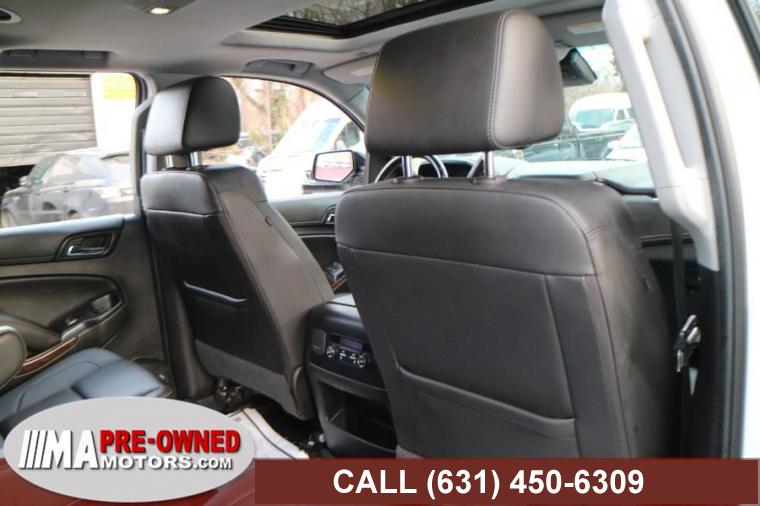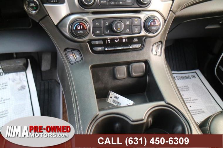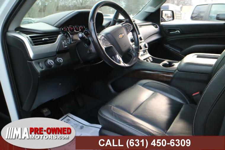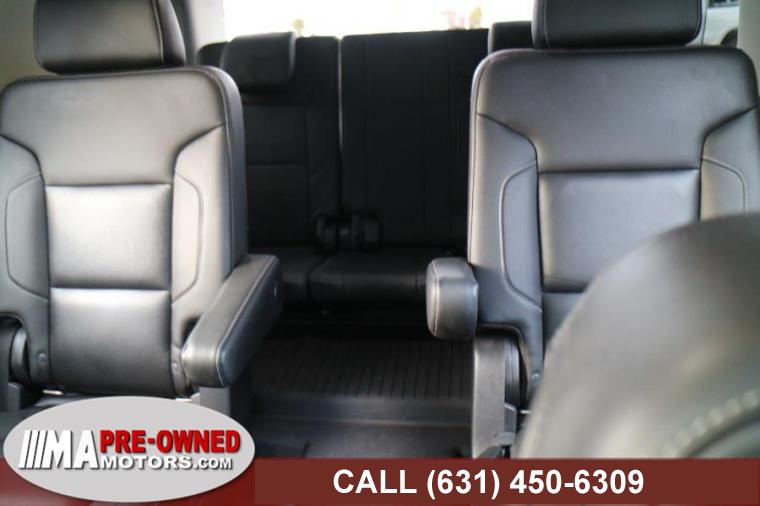 ABS, 4-Wheel Disc Brakes, 6-Speed A/T, 8 Cylinder Engine, A/C, A/T, 3rd Row Seat, Adjustable Pedals, Adjustable Steering Wheel, Security System, AM/FM Stereo, Automatic Headlights, Auxiliary Audio Input, Back-Up Camera, Brake Assist, Bucket Seats, CD Player, Child Safety Locks, Climate Control, Cruise Control, Daytime Running Lights, Driver Air Bag, Driver Adjustable Lumbar, Driver Restriction Features, Multi-Zone A/C, Auto-Dimming Rearview Mirror, Stability Control, Four Wheel Drive, Floor Mats, Conventional Spare Tire, Gasoline Fuel, HD Radio, Heated Front Seat(s), Heated Mirrors, Intermittent Wipers, Keyless Entry, Lane Departure Warning, Lane Keeping Assist, Leather Seats, Leather Steering Wheel, Locking/Limited Slip Differential, MP3 Player, Telematics, Pass-Through Rear Seat, Passenger Air Bag, Passenger Air Bag Sensor, Passenger Adjustable Lumbar, Power Door Locks, Power Mirror(s), Power Driver Seat, Power Liftgate, Power Passenger Seat, Power Steering, Power Windows, Premium Sound System, Privacy Glass, Rain Sensing Wipers, Rear A/C, Rear Defrost, Rear Head Air Bag, Rear Parking Aid, Remote Engine Start, Remote Trunk Release, Requires Subscription, Running Boards/Side Steps, Satellite Radio, Seat Memory, Front Side Air Bag, Front Head Air Bag, Smart Device Integration, Steering Wheel Audio Controls, Tire Pressure Monitor, Traction Control, Tow Hitch, Transmission Overdrive Switch, Universal Garage Door Opener, Variable Speed Intermittent Wipers, WiFi Hotspot, Bluetooth Connection, Active aero shutters, front, Assist steps, Black (Premier includes chrome accent strip) (Deleted when (PDR) LT Signature Package, (RVQ) Assist step kit, Black, LPO or (VXH) Assist step kit, Chrome, LPO are ordered.), Fascia, front body-color, Fascia, rear body-color ((PCK) Luxury Package and (PDA) Texas Edition Package includes trailer hitch close out.), Glass, acoustic, laminated, Glass, deep-tinted, IntelliBeam, automatic high beam on/off, Liftgate, power, Luggage rack side rails, roof-mounted, Mirrors, outside heated power-adjustable, manual-folding and color keyed driver mirror includes spotter mirror, Tire carrier, lockable outside spare, winch-type mounted under frame at rear, Tire, spare P265/70R17 all-season, blackwall, Tires, P265/65R18 all-season, blackwall, Wheel, full-size spare, 17" (43.2 cm) steel, Wheels, 18" x 8.5" (45.7 cm x 21.6 cm) aluminum with high-polished finish, Wiper, rear intermittent with washer, Wipers, front intermittent, Rainsense, Assist handles, 1st row passenger and 2nd row outboard seats, Cargo management system, Cargo net, Climate control, tri-zone automatic with individual climate settings for driver, right-front passenger and rear passengers, Console, floor with storage area, cup holders and auxiliary jack, Conversation mirror (Deleted when (UTT) Theft Protection Package is ordered.), Cruise control, electronic with set and resume speed, Defogger, rear-window electric, Door locks, power programmable with lockout protection and delayed locking, Driver Information Center, 4.2" diagonal multi-color, Floor covering, color-keyed carpeting, Floor mats, color-keyed carpeted first and second row, removable (Deleted when (Z71) Off-Road Package or (WJP) Z71 Midnight Edition are ordered.), Lighting, interior with dome light, driver- and passenger-side door switch with delayed entry feature, cargo lights, door handle or Remote Keyless Entry-activated illuminated entry and map lights in front and second seat positions., Memory settings recalls presets for driver power seat adjuster and pedals (When (PCK) Luxury Package or (PDA) Texas Edition Package are ordered, also includes memory presets for outside rearview mirrors and power steering column.), Mirror, inside rearview auto-dimming, Pedals, power-adjustable for accelerator and brake, Power outlet, 110-volt, Power outlets, 5 auxiliary, 12-volt includes outlets in the instrument panel, console, back of console, 1 in 3rd row and 1 in cargo area, Remote Keyless Entry, extended-range (Not included when (PCK) Luxury Package or (PDA) Texas Edition Package are ordered.), Remote vehicle start, Seat adjuster, front passenger 6-way power, Seat trim, leather-appointed front seats, Seat, third row manual 60/40 split-folding bench, fold flat (Not included when (PCK) Luxury Package or (PDA) Texas Edition Package are ordered.), Seats, front bucket with leather-appointed seating heated seat cushions and seat backs, 10-way power driver and passenger seat includes 6-way power cushions, driver seat 2-position memory, 2-way power lumbar control and power recline, Seats, second row 60/40 split-folding bench, manual, Steering column, manual tilt and telescopic, Steering wheel controls, mounted audio and cruise controls includes Driver Information Center controls, Steering wheel, leather-wrapped, Universal Home Remote includes garage door opener, programmable, Warning tones headlamp on, key-in-ignition, driver and right-front passenger seat belt unfasten and turn signal on, Windows, power, with Express-Down and Express-Up on front doors and lock out features, 4-wheel drive, Alternator, 150 amps, Battery, 720 cold-cranking amps with 80 amp hour rating, Cooling, auxiliary transmission oil cooler, heavy-duty air-to-oil, Cooling, external engine oil cooler, heavy-duty air-to-oil integral to driver side of radiator, Differential, heavy-duty locking rear, E85 FlexFuel capable (Included and only available with Fleet or Government order types.), Engine, 5.3L EcoTec3 V8 with Active Fuel Management, Direct Injection and Variable Valve Timing includes aluminum block construction (355 hp [265 kW] @ 5600 rpm, 383 lb-ft of torque [518 N-m] @ 4100 rpm), GVWR, 7300 lbs. (3311 kg) (Requires 4WD model.), Hill Start Assist, Rear axle, 3.08 ratio (Not available with (NHT) Max Trailering Package.), Steering, power, Suspension Package, Premium Smooth Ride (Not available with (NHT) Max Trailering Package.), Suspension, front coil-over-shock with stabilizer bar, Suspension, 