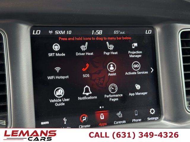 ABS, 4-Wheel Disc Brakes, 8 Cylinder Engine, 8-Speed A/T, A/C, A/T, Adjustable Steering Wheel, Security System, Aluminum Wheels, AM/FM Stereo, Transmission w/Dual Shift Mode, Automatic Headlights, Auxiliary Audio Input, Back-Up Camera, Brake Assist, Bucket Seats, Child Safety Locks, Climate Control, Cruise Control, Daytime Running Lights, Driver Air Bag, Driver Illuminated Vanity Mirror, Driver Adjustable Lumbar, Driver Vanity Mirror, Multi-Zone A/C, Auto-Dimming Rearview Mirror, Stability Control, Fog Lamps, Floor Mats, Gasoline Fuel, HD Radio, Heated Front Seat(s), Heated Steering Wheel, Intermittent Wipers, Keyless Entry, Keyless Start, Knee Air Bag, Leather Steering Wheel, Locking/Limited Slip Differential, MP3 Capability, Telematics, Pass-Through Rear Seat, Passenger Air Bag, Passenger Air Bag Sensor, Passenger Illuminated Visor Mirror, Passenger Adjustable Lumbar, Passenger Vanity Mirror, Power Door Locks, Power Mirror(s), Power Driver Seat, Power Passenger Seat, Power Steering, Power Windows, Premium Sound System, Rear Bench Seat, Rear Defrost, Rear Head Air Bag, Rear Parking Aid, Rear Spoiler, Rear Wheel Drive, Remote Engine Start, Remote Trunk Release, Requires Subscription, Satellite Radio, Front Side Air Bag, Front Head Air Bag, Smart Device Integration, Steering Wheel Audio Controls, Tire Pressure Monitor, Tires - Front Performance, Tires - Rear Performance, Traction Control, Trip Computer, Universal Garage Door Opener, Variable Speed Intermittent Wipers, Immobilizer, WiFi Hotspot, Bluetooth Connection, Auto On/Off Projector Beam Halogen Daytime Running Headlamps w/Delay-Off, Black Grille, Black Side Windows Trim, Body-Colored Door Handles, Body-Colored Front Bumper, Body-Colored Power Side Mirrors w/Manual Folding, Body-Colored Rear Bumper, Fixed Rear Window w/Defroster, Front Fog Lamps, Galvanized Steel/Aluminum Panels, Goodyear Brand Tires, Laminated Glass, LED Brakelights, Light Tinted Glass, Lip Spoiler, Perimeter/Approach Lights, Rhombi 2-Pc Wheel Center Cap, Speed Sensitive Variable Intermittent Wipers w/Heated Jets, Tire Mobility Kit, Tires: P245/45ZR20 AS Performance, Trunk Rear Cargo Access, Wheels: 20" x 9.0" Black Noise, 2 12V DC Power Outlets, 2 Seatback Storage Pockets, 4G LTE Wi-Fi Hot Spot Mobile Hotspot Internet Access, 60-40 Folding Bench Front Facing Fold Forward Seatback Cloth Rear Seat, 8-Way Driver Seat, 8-Way Passenger Seat, Air Filtration, Cargo Features -inc: Tire Mobility Kit, Cargo Space Lights, Carpet Floor Trim and Carpet Trunk Lid/Rear Cargo Door Trim, Cloth Performance Seats w/Bee Logo, Compass, Cruise Control w/Steering Wheel Controls, Day-Night Auto-Dimming Rearview Mirror, Delayed Accessory Power, Digital/Analog Appearance, Driver And Passenger Heated Front Seat, Driver And Passenger Visor Vanity Mirrors w/Driver And Passenger Illumination, Driver And Passenger Auxiliary Mirror, Driver Foot Rest, Driver Information Center, Dual Zone Front Automatic Air Conditioning, Fade-To-Off Interior Lighting, FOB Controls -inc: Keyfob Cargo Access and Keyfob Remote Start, Front And Rear Map Lights, Front Center Armrest, Full Carpet Floor Covering -inc: Carpet Front And Rear Floor Mats, Full Cloth Headliner, Full Floor Console w/Covered Storage, Mini Overhead Console w/Storage and 2 12V DC Power Outlets, Gauges -inc: Speedometer, Odometer, Oil Pressure, Engine Coolant Temp, Tachometer, Oil Temperature, Transmission Fluid Temp, Engine Hour Meter, Trip Odometer and Trip Computer, Heated Steering Wheel, HomeLink Garage Door Transmitter, HVAC -inc: Underseat Ducts and Console Ducts, Illuminated Front Cupholder, Illuminated Locking Glove Box, Instrument Panel Bin, Driver / Passenger And Rear Door Bins, Interior Trim -inc: Aluminum Instrument Panel Insert, Aluminum Console Insert and Metal-Look Interior Accents, Leather Gear Shifter Material, Manual Anti-Whiplash Adjustable Front Head Restraints and Fixed Rear Head Restraints, Manual Tilt/Telescoping Steering Column, Outside Temp Gauge, Perimeter Alarm, Power 1st Row Windows w/Driver And Passenger 1-Touch Up/Down, Power 4-Way Driver Lumbar Adjust, Power Door Locks w/Autolock Feature, Power Driver/Passenger 4-Way Lumbar Adjust, Power Front Driver/Passenger Seats, Power Fuel Flap Locking Type, Power Rear Windows, Proximity Key For Doors And Push Button Start, Rear Armrest w/Cupholder Seat, Redundant Digital Speedometer, Remote Keyless Entry w/Integrated Key Transmitter, 4 Door Curb/Courtesy, Illuminated Entry and Panic Button, Remote Releases -Inc: Power Cargo Access and Power Fuel, Sentry Key Immobilizer, SiriusXM Guardian Tracker System, Smart Device Integration, Smart Device Remote Engine Start, Sport Leather/Metal-Look Steering Wheel, Trip Computer, Valet Function, Vinyl Door Trim Insert, Voice Recorder, 18.5 Gal. Fuel Tank, 220 Amp Alternator, 3.09 Axle Ratio, 4-Wheel Disc Brakes w/4-Wheel ABS, Front And Rear Vented Discs, Brake Assist and Hill Hold Control, 50 State Emissions, 730CCA Maintenance-Free Battery w/Run Down Protection, Dual Stainless Steel Exhaust w/Chrome Tailpipe Finisher, Electric Power-Assist Steering, Electro-Mechanical Limited Slip Differential, Engine Oil Cooler, Engine: 6.4L V8 SRT HEMI MDS, Front And Rear Anti-Roll Bars, Gas-Pressurized Shock Absorbers, Multi-Link Rear Suspension w/Coil Springs, Rear-Wheel Drive, Short And Long Arm Front Suspension w/Coil Springs, Sport Tuned Suspension, Transmission w/AUTOSTICK Sequential Shift Control w/Steering Wheel Controls, Transmission: 8-Speed Automatic (8HP70), ABS And Driveline Traction Control, Airbag Occupancy Sensor, Curtain 1st And 2nd Row Airbags, Driver Knee Airbag, Dual Stage Driver And Passenger Front Airbags, Dual Stage Driver And Passenger Seat-Mounted Side Airbags, Electronic Stability Control (ESC) And Roll Stability Control (RSC), Outboard Front Lap And Shoulder Safety Belts -inc: Rear Center 3 Point, Height Adjusters and Pretensioners, ParkSense Rear Parking Sensors, ParkView Back-Up Camera, Rear Child Safety Locks, Side Impact Be