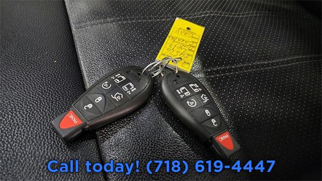 Navigation system: Garmin, Quick Order Package 29N, 9 Speakers, AM/FM radio: SiriusXM, CD player, DVD-Audio, Radio data system, Radio: 430 Nav, Air Conditioning, Automatic temperature control, Front dual zone A/C, Rear air conditioning, Rear window defroster, Power driver seat, Power steering, Power windows, Remote keyless entry, Steering wheel mounted audio controls, Performance Suspension, Traction control, 4-Wheel Disc Brakes, ABS brakes, Anti-whiplash front head restraints, Dual front impact airbags, Dual front side impact airbags, Front anti-roll bar, Front wheel independent suspension, Knee airbag, Low tire pressure warning, Occupant sensing airbag, Overhead airbag, Power Liftgate, Brake assist, Electronic Stability Control, ParkView Rear Back-Up Camera, Delay-off headlights, Front fog lights, Fully automatic headlights, Panic alarm, Security system, Speed control, Bodyside moldings, Bumpers: body-color, Heated door mirrors, Power door mirrors, Spoiler, 115V Auxiliary Power Outlet, Auto-dimming Rear-View mirror, Compass, Driver door bin, Driver vanity mirror, Front reading lights, Garage door transmitter, Heated steering wheel, Illuminated entry, Leather Shift Knob, Manufacturer's Statement of Origin, Outside temperature display, Overhead console, Passenger seat mounted armrest, Passenger vanity mirror, Rear reading lights, Tachometer, Telescoping steering wheel, Tilt steering wheel, Trip computer, 2nd Row Stow 'N Go Bucket Seats, 3rd row seats: split-bench, Driver's Seat Mounted Armrest, Front Bucket Seats, Heated front seats, Leather Trimmed Bucket Seats, Power passenger seat, Reclining 3rd row seat, Split folding rear seat, Black Side Roof Rails, Integrated Roof Rail Crossbars, Passenger door bin, Alloy wheels, Wheels: 17" x 6.5" Fully Painted Black, Rear window wiper, Variably intermittent wipers, 3.16 Axle Ratio