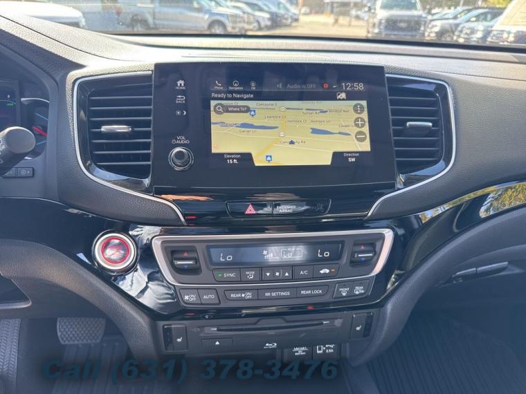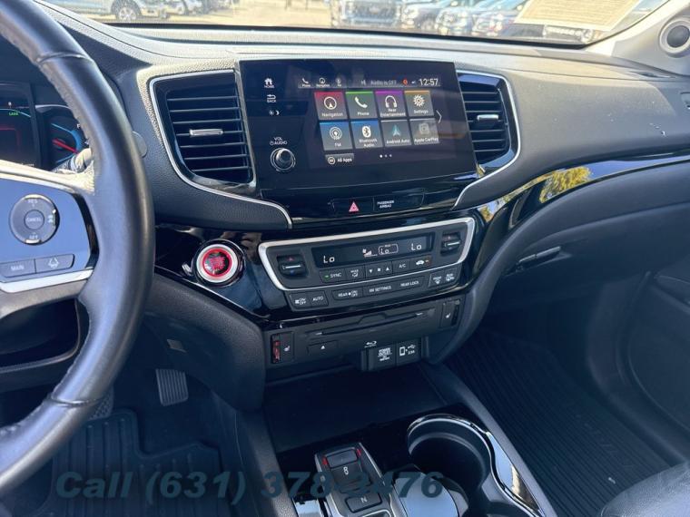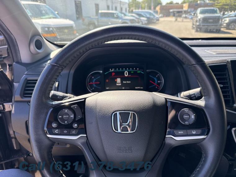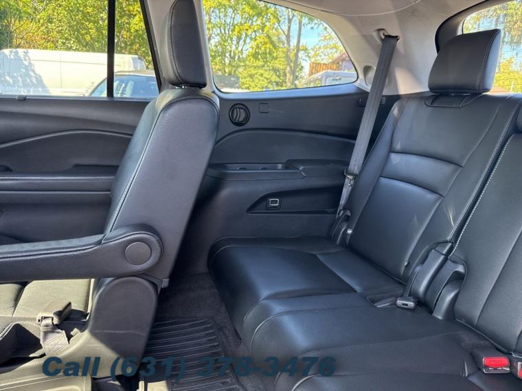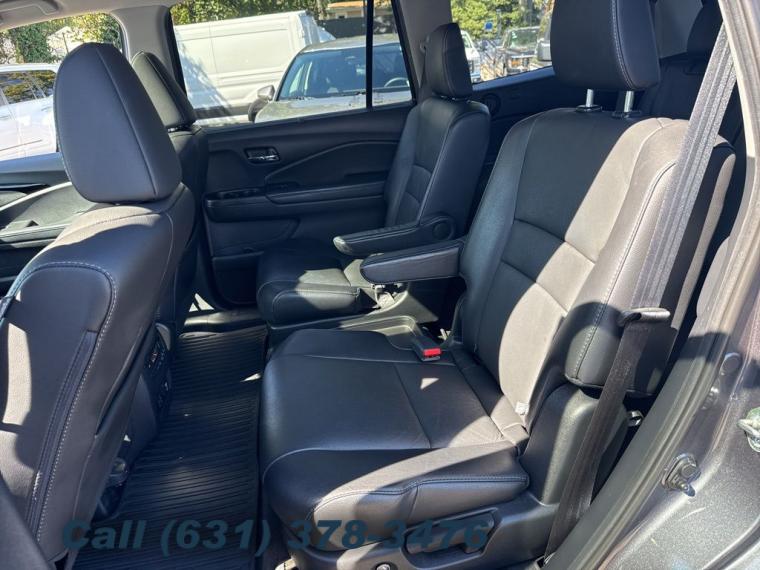 Navigation system: Honda Satellite-Linked Navigation System, 10 Speakers, AM/FM radio: SiriusXM, Radio data system, Radio: AM/FM Premium Audio System, Air Conditioning, Automatic temperature control, Front dual zone A/C, Rear air conditioning, Rear window defroster, Memory seat, Power driver seat, Power steering, Power windows, Remote keyless entry, Steering wheel mounted audio controls, A/V remote: CabinControl, Headphones, Four wheel independent suspension, Speed-sensing steering, Traction control, 4-Wheel Disc Brakes, ABS brakes, Dual front impact airbags, Dual front side impact airbags, Emergency communication system: HondaLink, Front anti-roll bar, Low tire pressure warning, Occupant sensing airbag, Overhead airbag, Rear anti-roll bar, Power moonroof, Power Liftgate, Blind Spot Information (BSI) System warning, Brake assist, Electronic Stability Control, Forward collision: Collision Mitigation Braking System (CMBS) + FCW mitigation, Lane departure: Lane Keeping Assist System (LKAS) active, Exterior Parking Camera Rear, Auto High-beam Headlights, Delay-off headlights, Front fog lights, Fully automatic headlights, Panic alarm, Security system, Speed control, Bumpers: body-color, Heated door mirrors, Power door mirrors, Roof rack: rails only, Spoiler, Turn signal indicator mirrors, Apple CarPlay/Android Auto, Auto-dimming Rear-View mirror, Compass, Driver door bin, Driver vanity mirror, Front reading lights, Garage door transmitter: HomeLink, Illuminated entry, Outside temperature display, Overhead console, Passenger vanity mirror, Rear reading lights, Tachometer, Telescoping steering wheel, Tilt steering wheel, Trip computer, 3rd row seats: split-bench, Front Bucket Seats, Front Center Armrest, Heated Front Bucket Seats, Heated front seats, Heated rear seats, Leather-Trimmed Seats, Power passenger seat, Reclining 3rd row seat, Split folding rear seat, Passenger door bin, Wheels: 20" Machine-Finished Alloy, Rear window wiper, Speed-Sensitive Wipers, Variably intermittent wipers, 4.334 Axle Ratio
