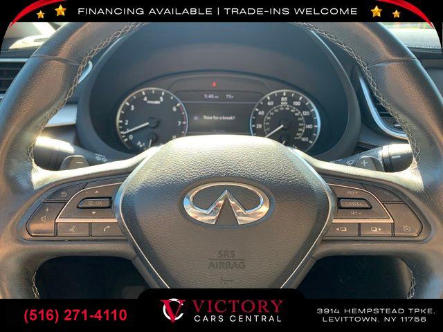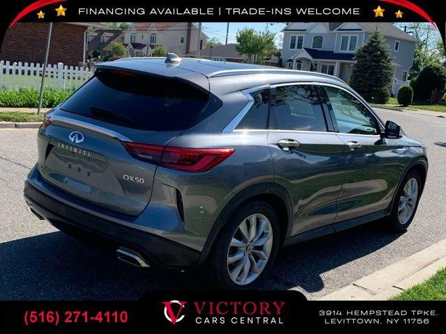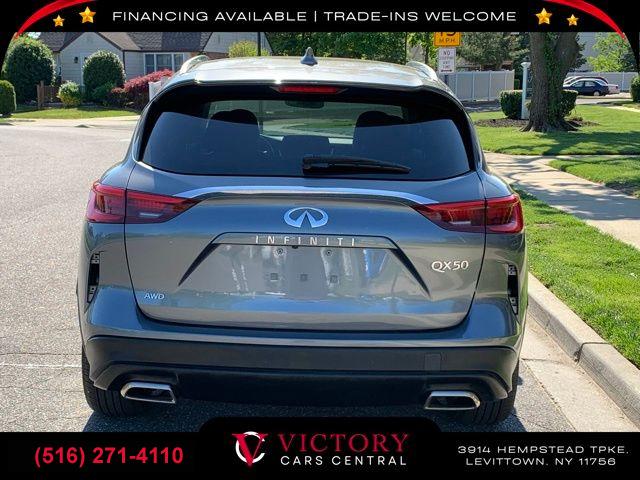 • All pricing and details are believed to be accurate, but we do not warrant or guarantee such accuracy. The prices shown above may vary from region to region, as will incentives, and are subject to change. All cars are sold cosmetically As-Is. Vehicle information is based on standard equipment and may vary from vehicle to vehicle. Call or email for complete vehicle specific information. Price Does not include tax, title, license, destination charges, finance charges, or any reconditioning fees. Our special Internet pricing cannot be extended without a printed copy of the online pricing. The in-store price may exceed our special online pricing. Sorry but we cannot extend special pricing without a printed copy of the on-line pricing. To take advantage of our special Internet discounts, please print this page and present it to your salesperson at the BEGINNING of the transaction. Special Internet pricing posted on this ad/coupon/promotion is only available to customers who reference such pricing & present the ad at time of sale otherwise our store standard list price applies. Please be advised this ad is a Special Internet only ad. Prices can be modified and adjusted weekly, daily and sometimes hourly due to inquiries, bidding and website traffic on any Vehicles. All displayed inventory is subject to prior sale and all prices expire at midnight on the date displayed. Every reasonable effort has been made to ensure the accuracy of the information contained on this site, however absolute accuracy cannot be guaranteed. Advertised special excludes state tax, title, license, registration, NY state inspection, NYS tire recycling fee, finance charges, and dealer fees if applicable. Please verify any information in question with the dealership sales manager. This is easily done by calling us at (516) 271-4110 or by visiting us at the dealership. **With approved credit. Graphite Shadow 2019 INFINITI QX50 LUXE AWD CVT I4