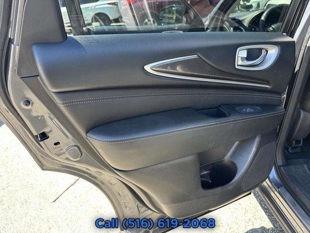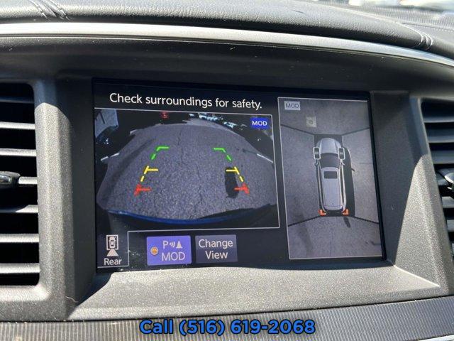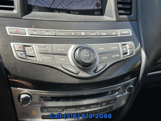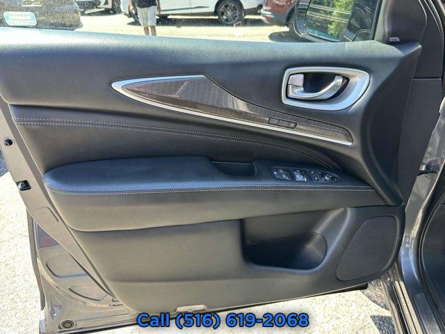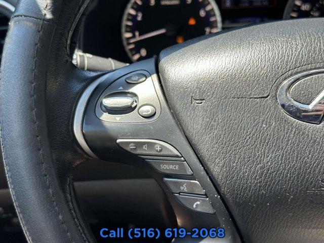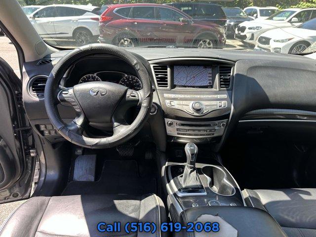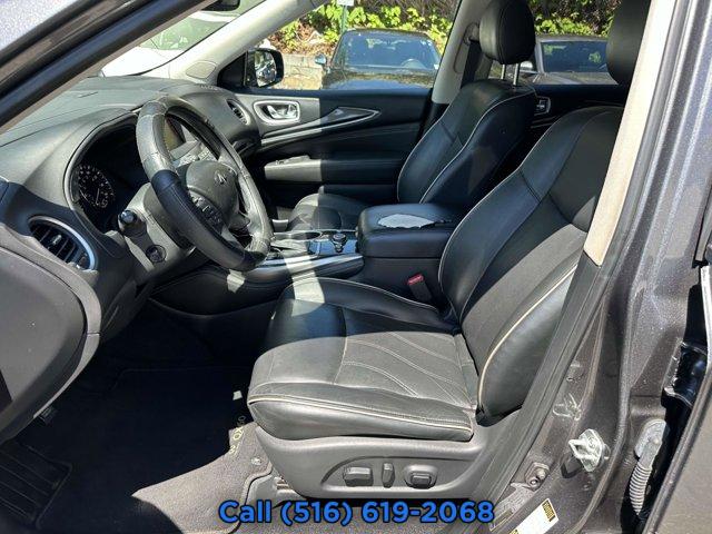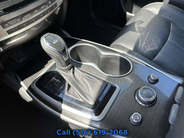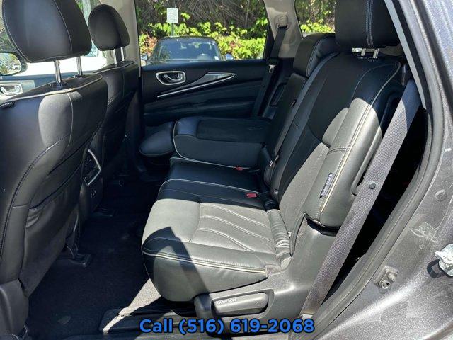 [M93] CARGO PACKAGE ESSENTIAL -inc: underfloor storage dividers Rear Cargo Cover Cargo Protector Console Net First Aid Kit, GRAPHITE LEATHER-APPOINTED SEAT TRIM, [K11] ILLUMINATED KICK PLATES (K11), [L11] CARPETED FLOOR MATS (4-PIECE SET) -inc: 1st 2nd and 3rd rows, [B92] SPLASH GUARDS (COLOR MATCHED SET OF 4), [K01] ESSENTIAL PACKAGE -inc: Around View Monitor w/Moving Object Detection Front & Rear Sonar System (2FR/2RR) Rain-Sensing Front Windshield Wipers INFINITI InTouch w/Navigation & InTouch Services lane guidance 3D building graphics 4-year complimentary trial of select package 1-year complimentary trial of premier package SiriusXM satellite radio w/90-day complimentary trial and SiriusXM Traffic and Travel Link w/4-year complimentary trial access to traffic weather fuel prices stocks sports and movie times Voice Recognition for Navigation Functions 1-shot voice destination entry Illuminated Kick Plates (IKP), GRAPHITE LEATHERETTE SEAT TRIM, GRAPHITE SHADOW, [S55] LITERATURE KIT, [B12] REAR BUMPER PROTECTOR, All Wheel Drive, Power Steering, ABS, 4-Wheel Disc Brakes, Brake Assist, Aluminum Wheels, Tires - Front All-Season, Tires - Rear All-Season, Temporary Spare Tire, Sun/Moonroof, Generic Sun/Moonroof, Heated Mirrors, Power Mirror(s), Integrated Turn Signal Mirrors, Power Folding Mirrors, Rear Defrost, Privacy Glass, Intermittent Wipers, Variable Speed Intermittent Wipers, Rear Spoiler, Remote Trunk Release, Power Liftgate, Power Door Locks, Fog Lamps, Daytime Running Lights, Automatic Headlights, LED Headlights, AM/FM Stereo, CD Player, Premium Sound System, Satellite Radio, MP3 Capability, Bluetooth Connection, Auxiliary Audio Input, HD Radio, Requires Subscription, MP3 Capability, Steering Wheel Audio Controls, Bluetooth Connection, Power Driver Seat, Power Passenger Seat, Heated Front Seat(s), Driver Adjustable Lumbar, Seat Memory, Bucket Seats, Mirror Memory, Seat Memory, Pass-Through Rear Seat, Rear Bench Seat, Adjustable Steering Wheel, Trip Computer, Power Windows, 3rd Row Seat, Leather Steering Wheel, Heated Steering Wheel, Keyless Entry, Power Door Locks, Keyless Start, Keyless Entry, Power Door Locks, Universal Garage Door Opener, Cruise Control, Climate Control, Multi-Zone A/C, A/C, A/C, Rear A/C, Premium Synthetic Seats, Auto-Dimming Rearview Mirror, Driver Vanity Mirror, Passenger Vanity Mirror, Driver Illuminated Vanity Mirror, Passenger Illuminated Visor Mirror, Floor Mats, Keyless Start, Mirror Memory, Seat Memory, Smart Device Integration, Power Windows, Power Door Locks, Trip Computer, Security System, Immobilizer, Traction Control, Stability Control, Traction Control, Front Side Air Bag, Blind Spot Monitor, Front Collision Mitigation, Tire Pressure Monitor, Driver Air Bag, Passenger Air Bag, Front Head Air Bag, Rear Head Air Bag, Passenger Air Bag Sensor, Child Safety Locks, Back-Up Camera