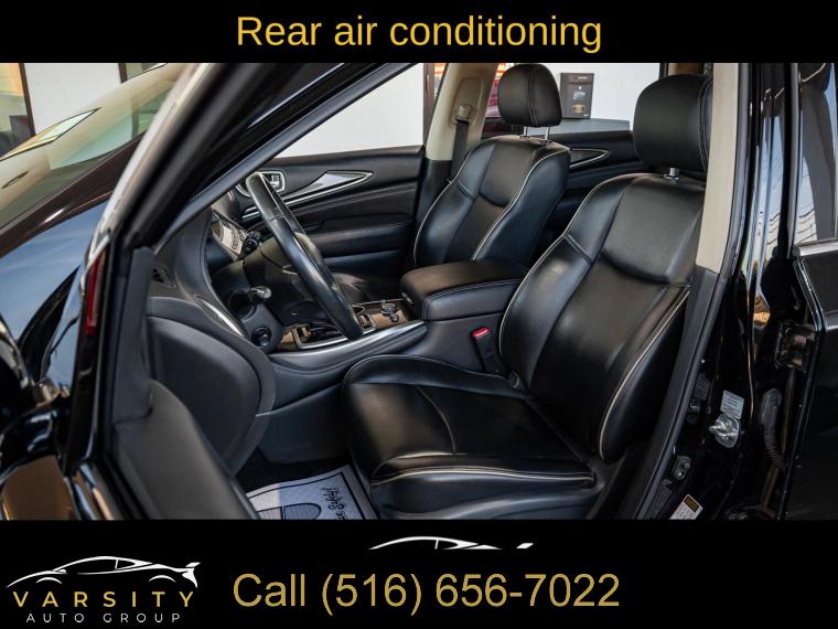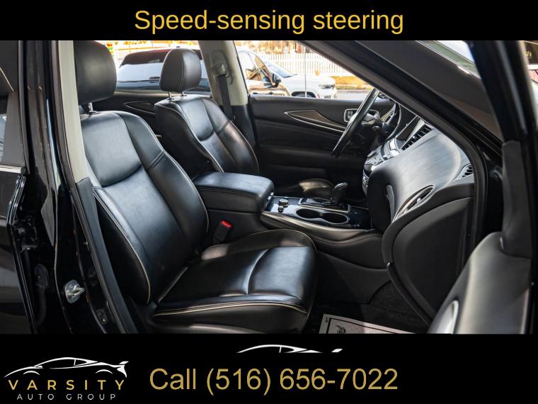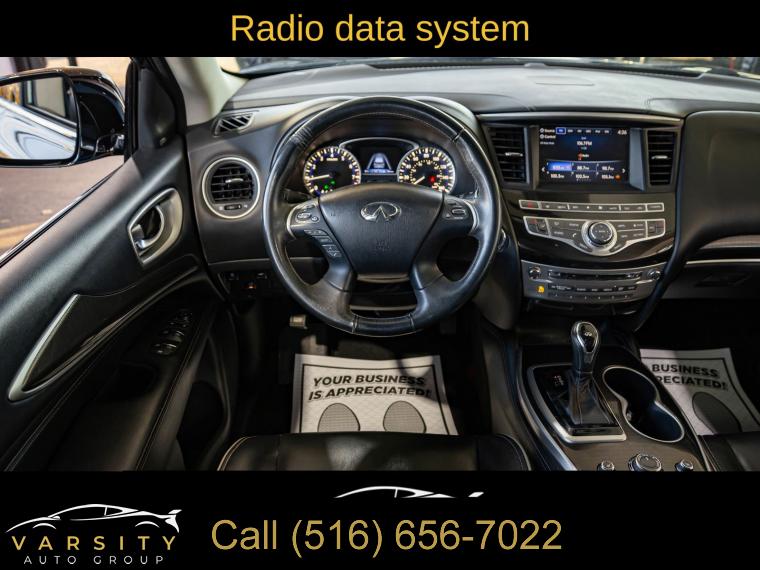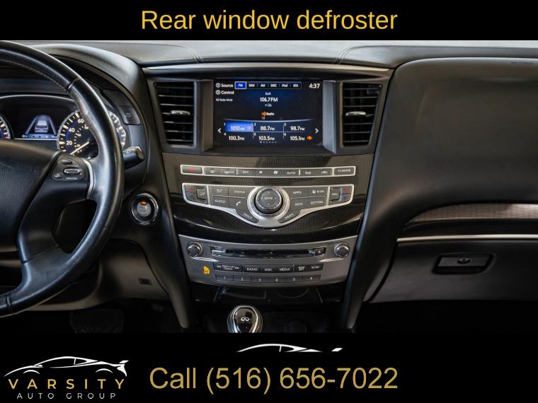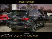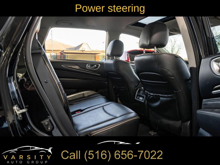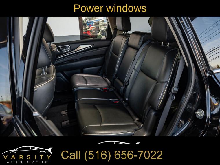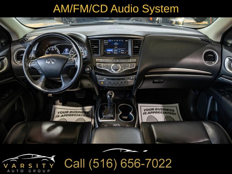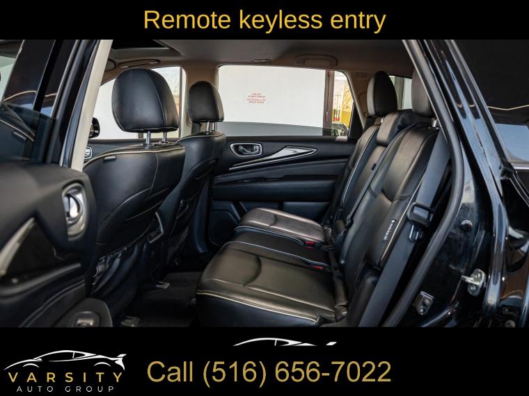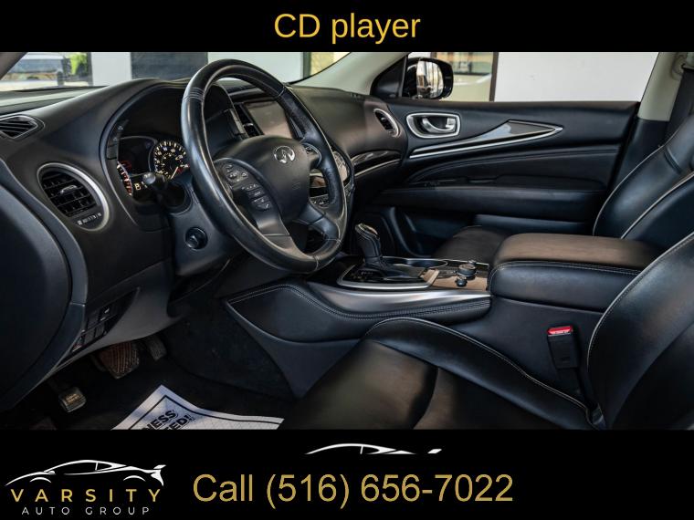 6 Speakers, AM/FM radio: SiriusXM, AM/FM/CD Audio System, CD player, Radio data system, Air Conditioning, Automatic temperature control, Front dual zone A/C, Rear air conditioning, Rear window defroster, Power driver seat, Power steering, Power windows, Remote keyless entry, Steering wheel mounted audio controls, Four wheel independent suspension, Speed-sensing steering, Traction control, 4-Wheel Disc Brakes, ABS brakes, Anti-whiplash front head restraints, Dual front impact airbags, Dual front side impact airbags, Front anti-roll bar, Low tire pressure warning, Occupant sensing airbag, Overhead airbag, Rear anti-roll bar, Power moonroof, Power Liftgate, Brake assist, Electronic Stability Control, Delay-off headlights, Front fog lights, Fully automatic headlights, High intensity discharge headlights: Bi-Xenon, Panic alarm, Security system, Speed control, Bodyside moldings, Bumpers: body-color, Heated door mirrors, Power door mirrors, Splash Guards (Color Matched, Set of 4), Spoiler, Turn signal indicator mirrors, Auto-dimming Rear-View mirror, Carpeted Floor Mats (4-Piece Set), Driver door bin, Driver vanity mirror, Front reading lights, Garage door transmitter: HomeLink, Illuminated entry, Leather Shift Knob, Leather steering wheel, Literature Kit, Outside temperature display, Overhead console, Passenger vanity mirror, Rear reading lights, Rear seat center armrest, Tachometer, Telescoping steering wheel, Tilt steering wheel, Trip computer, 3rd row seats: bench, Front Bucket Seats, Heated Front Seats, Heated front seats, Leatherette Seat Trim, Power passenger seat, Reclining 3rd row seat, Split folding rear seat, Front Center Armrest w/Storage, Passenger door bin, Alloy wheels, Wheels: 18" Triple 5-Spoke Aluminum-Alloy, Rear window wiper, Speed-Sensitive Wipers, Variably intermittent wipers, 5.25 Axle Ratio, The Price you See, is the Price You Pay!!!, INFINITI QX60 PURE, Black Obsidian, Graphite w/Leatherette Seat Trim, All Wheel Drive, Clean CARFAX