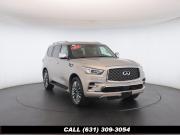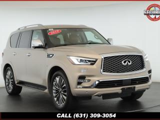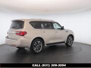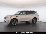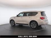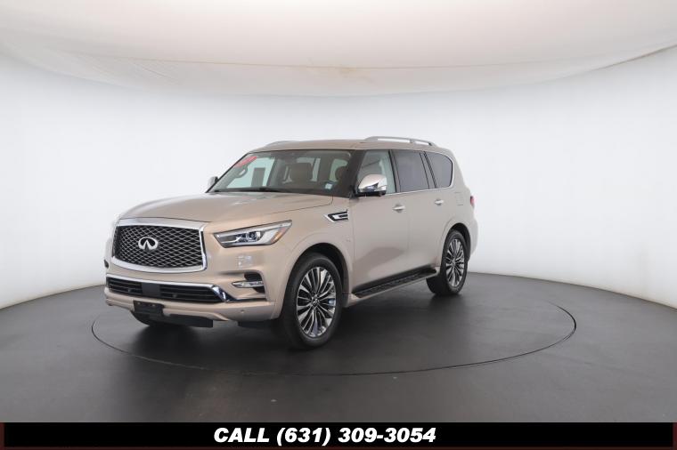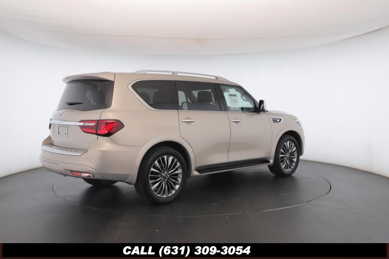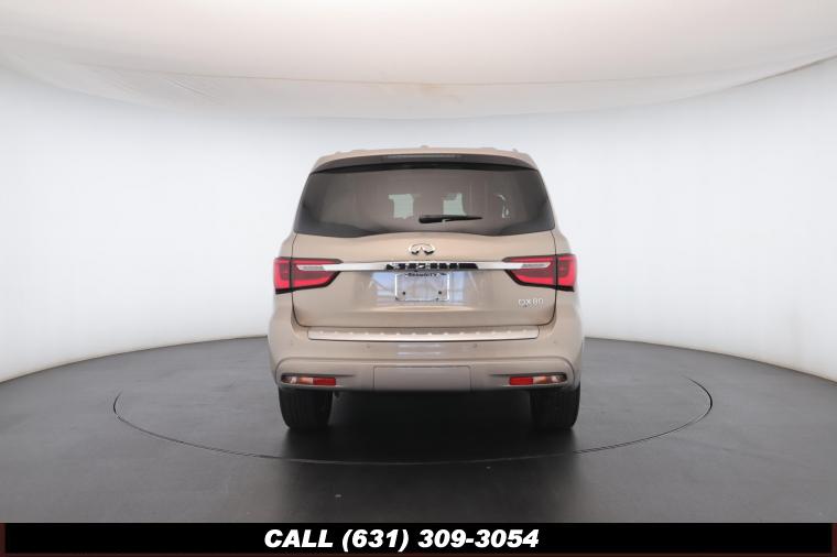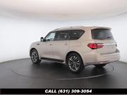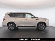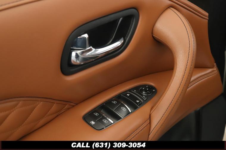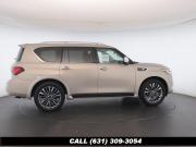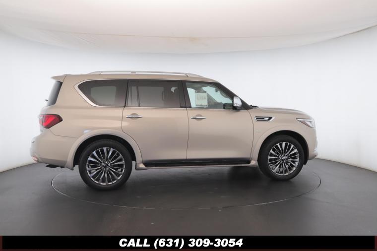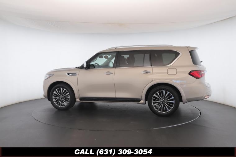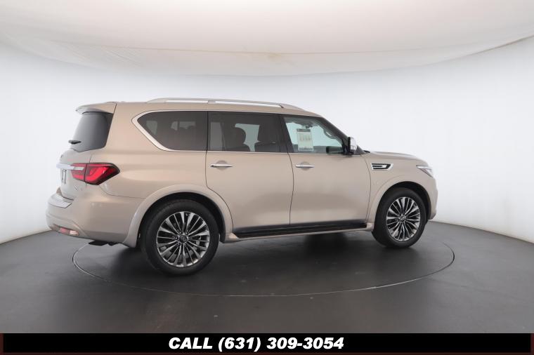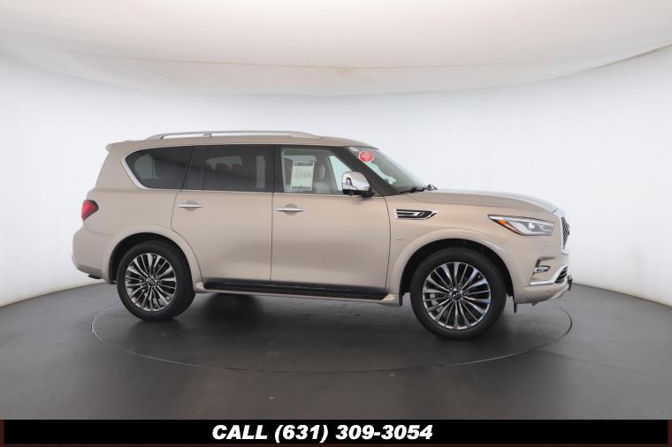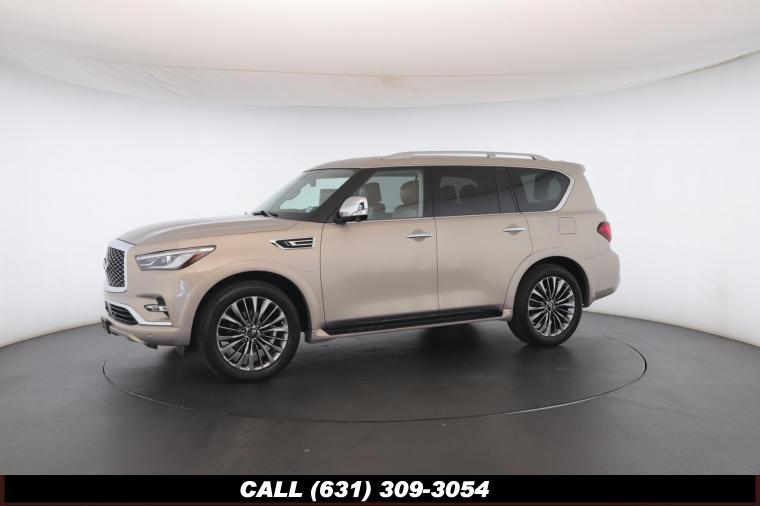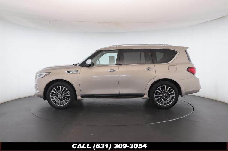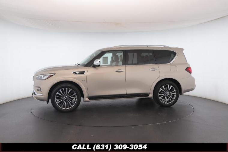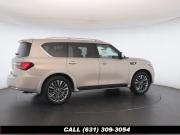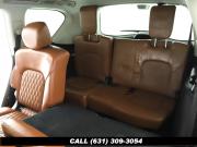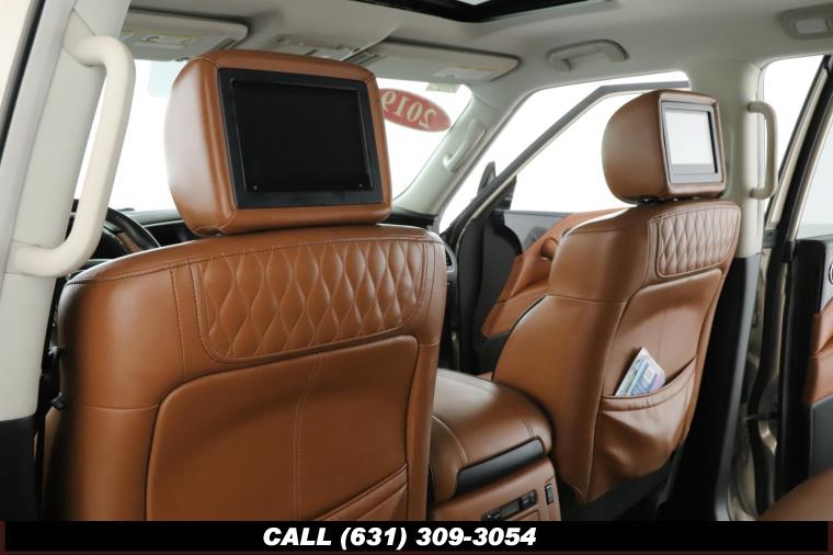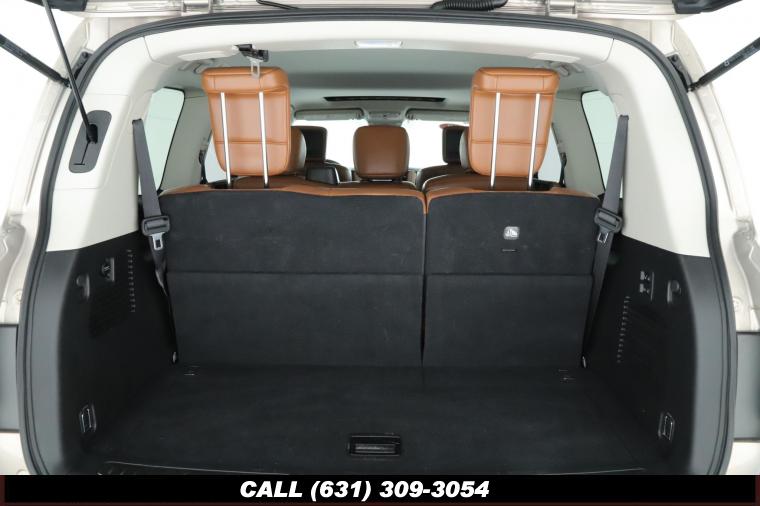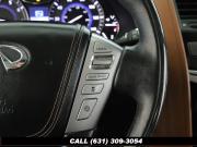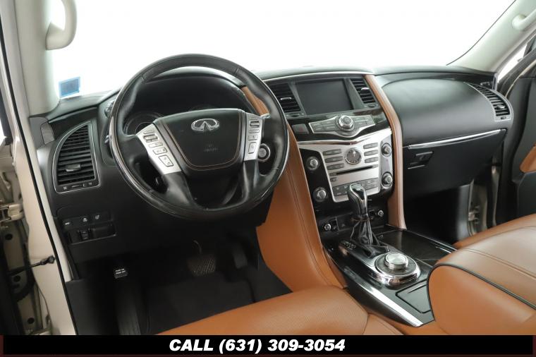 120V Power Outlet, 13 Speakers, 2.94 Axle Ratio, 22 Wheel Package, 3rd row seats: split-bench, 4-Wheel Disc Brakes, ABS brakes, Adaptive Front Lighting System, Advanced Climate Control System, Air Conditioning, Alloy wheels, AM/FM radio: SiriusXM, Anti-whiplash front head restraints, Auto High-beam Headlights, Auto tilt-away steering wheel, Auto-dimming door mirrors, Auto-dimming Rear-View mirror, Auto-leveling suspension, Automatic temperature control, Backup Collision Intervention (BCI), Blind Spot Intervention (BSI), Blind Spot Warning, Bose Cabin Surround Sound System, Brake Assist, Bumpers: body-color, CD Player, Charcoal/Espresso Burl Trim, Chrome Outside Mirror Caps, Climate-Controlled Front Seats, Delay-off headlights, Driver door bin, Driver Vanity Mirror, Dual 8 Color Monitors, Dual front impact airbags, Dual front side impact airbags, DVD-Audio, Electronic Stability Control, Emergency communication system: INFINITI Connection, Four wheel independent suspension, Front anti-roll bar, Front beverage holders, Front Bucket Seats, Front Center Armrest, Front dual zone A/C, Front fog lights, Front Pre-Crash Seatbelts, Front reading lights, Fully automatic headlights, Garage door transmitter: HomeLink, Genuine wood console insert, Genuine wood dashboard insert, Genuine wood door panel insert, Headlight Washers, Heated 2nd-Row Seats, Heated door mirrors, Heated Front Bucket Seats, Heated front seats, Heated Steering Wheel, Hydraulic Body Motion Control System, Illuminated entry, Intelligent Cruise Control (Full-Speed Range), Lane Departure Warning System, Leather Shift Knob, Leather Steering Wheel, Leather-Appointed Seats w/Stratford Burl Trim, Literature Kit, Low tire pressure warning, Memory seat, Navigation system: INFINITI InTouch Navigation, Occupant sensing airbag, Outside temperature display, Overhead airbag, Overhead console, Panic alarm, Passenger door bin, Passenger Vanity Mirror, Power door mirrors, Power Driver Seat, Power Liftgate, Power moonroof, Power Passenger Seat, Power Steering, Power Windows, ProACTIVE Package, ProASSIST Package, Radiant Illuminated Kick Plates, Radio data system, Radio: AM/FM/HD w/Single In-Dash CD/DVD Player & MP3, Rain Sensing Wipers, Rear air conditioning, Rear anti-roll bar, Rear audio controls, Rear reading lights, Rear seat center armrest, Rear window defroster, Rear window wiper, Reclining 3rd row seat, Remote keyless entry, Roof rack: rails only, Security System, Semi-Aniline Leather-Appointed Seating w/Quilting, Sensory Package, Smart Rear View Mirror, Speed control, Speed-sensing steering, Split Bench Seat Package, Split folding rear seat, Spoiler, Steering wheel memory, Steering wheel mounted audio controls, Tachometer, Telescoping steering wheel, Theater Package, Tilt steering wheel, Traction Control, Trip Computer, Turn signal indicator mirrors, Variably intermittent wipers, Vehicle Speed-Sensitive Power Steering, Voltmeter, Wheels: 20 x 8.0 Aluminum-Alloy, Wheels: 22 x 8.0 14-Spoke Forged Aluminum-Alloy, Wireless Headphones (2)