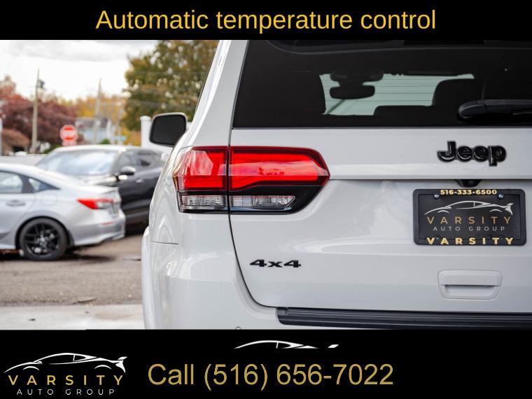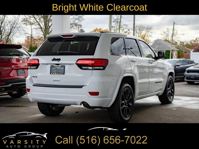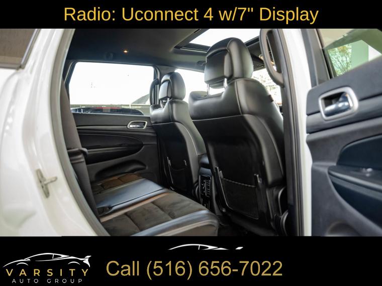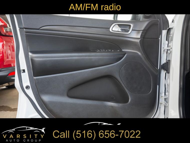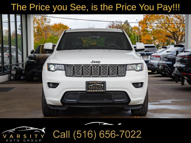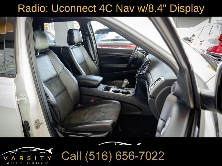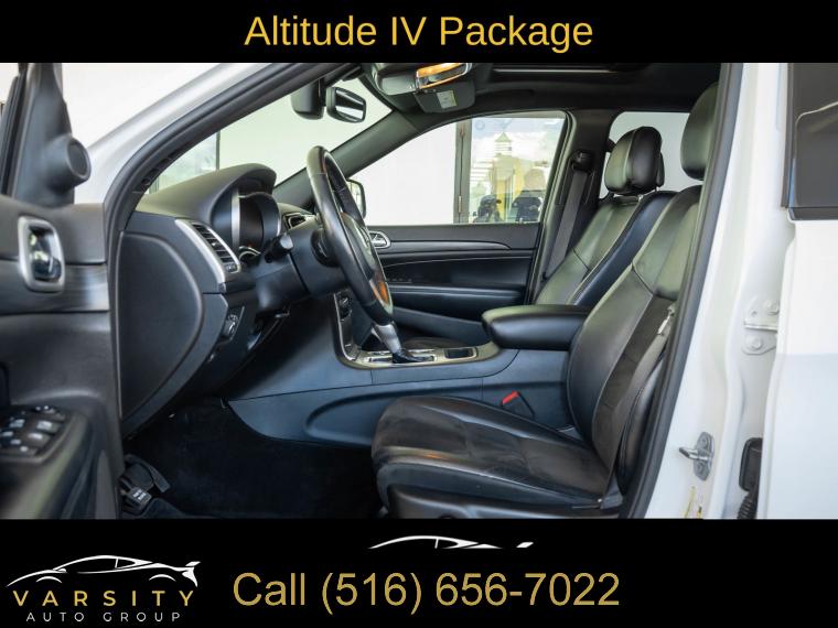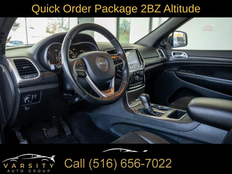 GPS Navigation, Altitude IV Package, Quick Order Package 2BZ Altitude, Security & Convenience Group, 1-Year SiriusXM Radio Service, 6 Speakers, AM/FM radio, Body Color Shark Fin Antenna, GPS Antenna Input, HD Radio, Integrated Center Stack Radio, Integrated Voice Command w/Bluetooth, Radio data system, Radio: Uconnect 4 w/7" Display, Radio: Uconnect 4C Nav w/8.4" Display, SiriusXM Satellite Radio, Air Conditioning, Automatic temperature control, Front dual zone A/C, Rear window defroster, Power steering, Power windows, Remote keyless entry, Security Alarm, Steering wheel mounted audio controls, Universal Garage Door Opener, Four wheel independent suspension, Normal Duty Suspension, Speed-sensing steering, Traction control, 4-Wheel Disc Brakes, ABS brakes, Anti-whiplash front head restraints, Dual front impact airbags, Dual front side impact airbags, Front anti-roll bar, Knee airbag, Low tire pressure warning, Occupant sensing airbag, Overhead airbag, Rear anti-roll bar, Power Sunroof, Body Color Fascia, Power Liftgate, Brake assist, Electronic Stability Control, ParkView Rear Back-Up Camera, Delay-off headlights, Front fog lights, Fully automatic headlights, Panic alarm, Speed control, Altitude Grille, Body Color Claddings, Bumpers: body-color, Dark Day Light Opening Moldings, Dark Headlamp Bezel Finish, Dark Lens Taillamps, Front Accent/Body Color Fascia, Front License Plate Bracket, Gloss Black Rear Fascia Applique, Heated door mirrors, Jeep Black Gloss Badging, Manufacturer's Statement of Origin, Power door mirrors, Rear Accent/Body Color Fascia, Rear Fascia Black MIC Step Pad, Single Exhaust w/Bright Tip, Spoiler, 1-Yr SiriusXM Guardian Trial, 115V Auxiliary Power Outlet, 4G LTE Wi-Fi Hot Spot, 5-Year SiriusXM Traffic Service, 5-Year SiriusXM Travel Link Service, 8.4" Touchscreen Display, Apple CarPlay, Apple CarPlay/Android Auto, Auto-Dimming Rear-View Mirror, Black Suede Seats w/Black Stitching, Compass, Driver door bin, Driver vanity mirror, Front reading lights, Google Android Auto, Illuminated entry, Instrument Cluster w/Off-Road Disp. Pages, Leather Shift Knob, Outside temperature display, Overhead console, Passenger vanity mirror, Rear reading lights, Rear seat center armrest, SiriusXM Traffic Plus, SiriusXM Travel Link, Steering Wheel Mounted Audio Controls, Tachometer, Telescoping steering wheel, Tilt steering wheel, Trip computer, USB Host Flip, Cloth Bucket Seats, Front Bucket Seats, Power 4-Way Driver Lumbar Adjust, Power 8-Way Driver/Manual Passenger Seat, Split folding rear seat, Cargo Compartment Cover, Front Center Armrest w/Storage, Passenger door bin, Alloy wheels, Wheels: 17" x 8.0" Silver Aluminum, Wheels: 20" x 8.0" Gloss Black Aluminum, Rear window wiper, Speed-Sensitive Wipers, Variably intermittent wipers, 3.45 Rear Axle Ratio, The Price you See, is the Price You Pay!!!, Jeep Grand Cherokee Altitude, Bright White Clearcoat, Black w/Cloth Bucket Seats or Black Suede Seats w/Black Stitching, 4 wheel drive