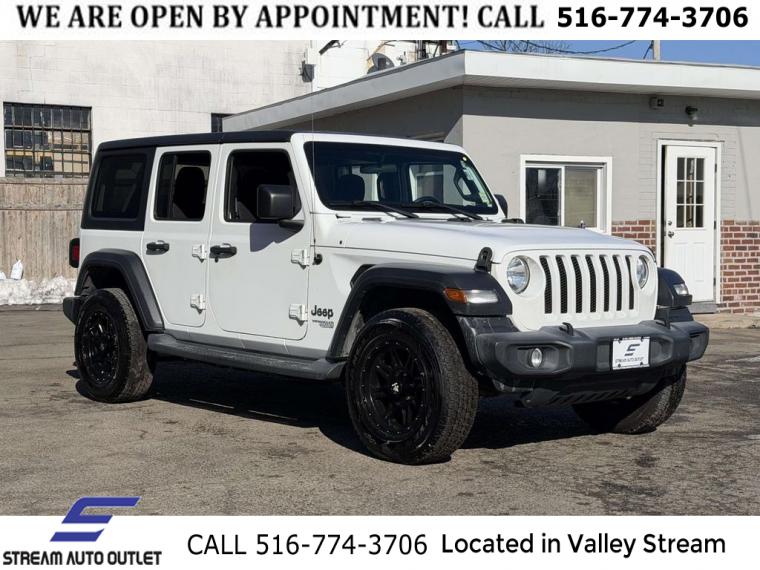 * NYS INSPECTION INCLUDED *, * FULL INTERIOR / EXTERIOR DETAIL *, * BACK UP CAMERA *, * BLUETOOTH *, * LIMITED NYS LEMON LAW WARRANTY INCLUDED *, *FRESH OIL CHANGE *, * 150 MULTI POINT INSPECTION *, APPLE CAR PLAY/ANDROID AUTO, Wrangler Unlimited Sport S, 4D Sport Utility, 3.6L V6 24V VVT, 8-Speed Automatic, 4WD, Bright White Clearcoat, Black w/Cloth Low-Back Bucket Seats, Automatic Headlamps, Black 3-Piece Hard Top, Cold Weather Group, Convenience Group, Deep Tint Sunscreen Windows, Freedom Panel Storage Bag, Front 1-Touch Down Power Windows, Heated Front Seats, Heated Steering Wheel, Leather Wrapped Steering Wheel, No Soft Top, Power Heated Mirrors, Quick Order Package 24S Sport S, Rear Window Defroster, Rear Window Wiper/Washer, Remote Keyless Entry, Security Alarm, Speed Sensitive Power Locks, Sun Visors w/Illuminated Vanity Mirrors, Universal Garage Door Opener.