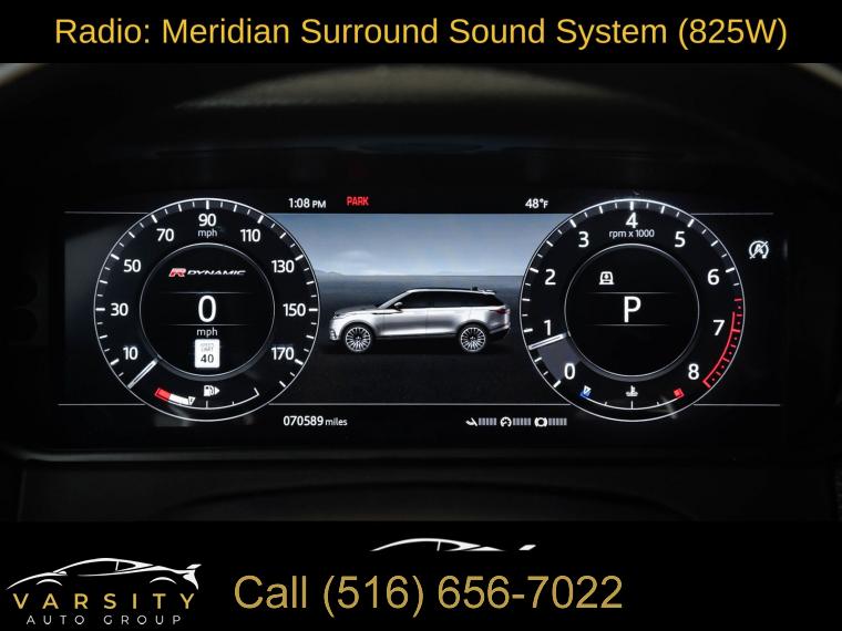 Navigation system: Touch Pro Navigation System, 17 Speakers, AM/FM radio, Radio data system, Radio: Meridian Surround Sound System (825W), Air Conditioning, Automatic temperature control, Front dual zone A/C, Rear window defroster, Memory seat, Power driver seat, Power steering, Power windows, Remote keyless entry, Steering wheel mounted audio controls, Adaptive suspension, Auto-leveling suspension, Four wheel independent suspension, Speed-sensing steering, Traction control, 4-Wheel Disc Brakes, ABS brakes, Dual front impact airbags, Dual front side impact airbags, Emergency communication system, Front anti-roll bar, Low tire pressure warning, Occupant sensing airbag, Overhead airbag, Rear anti-roll bar, Power moonroof, Power Liftgate, Brake assist, Electronic Stability Control, Lane Departure Warning System, Exterior Parking Camera Rear, Auto High-beam Headlights, Delay-off headlights, Front fog lights, Fully automatic headlights, Headlight cleaning, Rear fog lights, Panic alarm, Security system, Speed control, Auto-dimming door mirrors, Bumpers: body-color, Heated door mirrors, Power door mirrors, Spoiler, Turn signal indicator mirrors, 10-Way Front Seats w/Driver Memory, Auto-dimming Rear-View mirror, Compass, Driver door bin, Driver vanity mirror, Front reading lights, Garage door transmitter, Illuminated entry, Outside temperature display, Overhead console, Passenger seat mounted armrest, Passenger vanity mirror, Rear reading lights, Rear seat center armrest, Tachometer, Telescoping steering wheel, Tilt steering wheel, Trip computer, Driver's Seat Mounted Armrest, Front Bucket Seats, Front Center Armrest, Perforated Grained Leather & Suedecloth Seat Trim, Power passenger seat, Split folding rear seat, Passenger door bin, Alloy wheels, Wheels: 20" 10 Spoke w/Satin Dark Grey Finish, Rain sensing wipers, Rear window wiper, Speed-Sensitive Wipers, Variably intermittent wipers, 3.73 Axle Ratio, Land Rover Range Rover Velar SE R-Dynamic, Indus Silver Metallic, 4 Wheel Drive, One Owner, Clean CarFAX