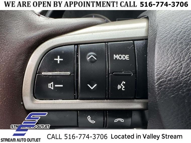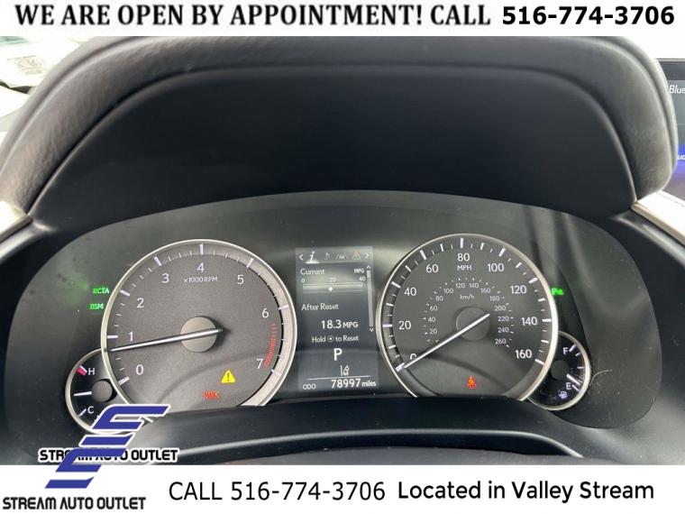 9 Speakers, AM/FM radio: SiriusXM, AM/FM/CD Radio, CD player, Radio data system, Air Conditioning, Automatic temperature control, Front dual zone A/C, Rear window defroster, Power driver seat, Power steering, Power windows, Remote keyless entry, Steering wheel mounted audio controls, Four wheel independent suspension, Speed-sensing steering, Traction control, 4-Wheel Disc Brakes, ABS brakes, Anti-whiplash front head restraints, Dual front impact airbags, Dual front side impact airbags, Emergency communication system: Lexus Enform w/Safety Connect, Front anti-roll bar, Knee airbag, Low tire pressure warning, Occupant sensing airbag, Overhead airbag, Rear anti-roll bar, Rear side impact airbag, Power Liftgate, Electronic Stability Control, Exterior Parking Camera Rear, Auto High-beam Headlights, Delay-off headlights, Front fog lights, Fully automatic headlights, Panic alarm, Security system, Distance pacing cruise control: All-Speed Dynamic Radar Cruise Control, Speed control, Bumpers: body-color, Heated door mirrors, Power door mirrors, Spoiler, Turn signal indicator mirrors, Auto-dimming Rear-View mirror, Compass, Driver door bin, Driver vanity mirror, Front reading lights, Garage door transmitter: HomeLink, Genuine wood console insert, Genuine wood door panel insert, Illuminated entry, Leather Shift Knob, Leather steering wheel, Outside temperature display, Overhead console, Passenger vanity mirror, Rear reading lights, Rear seat center armrest, Tachometer, Telescoping steering wheel, Tilt steering wheel, Trip computer, Front Bucket Seats, Front Center Armrest, NuLuxe Seat Trim, Power passenger seat, Split folding rear seat, Passenger door bin, Alloy wheels, Wheels: 18" x 8" 7-Spoke Aluminum, Rain sensing wipers, Rear window wiper, Variably intermittent wipers, 2.277 Axle Ratio, * NYS INSPECTION INCLUDED *, * FULL INTERIOR / EXTERIOR DETAIL *, * BLUETOOTH *, * LIMITED NYS LEMON LAW WARRANTY INCLUDED *, *FRESH OIL CHANGE *, * 150 MULTI POINT INSPECTION *