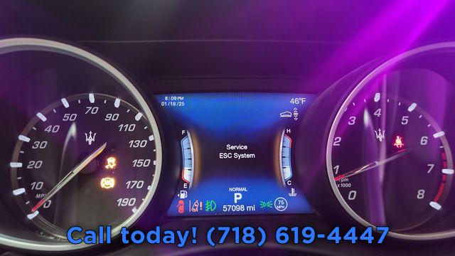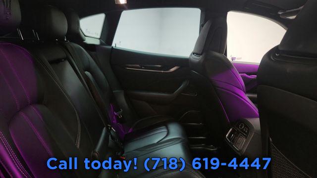Navigation System, 14 Speakers, AM/FM radio: SiriusXM, harman/kardon 900 Watts Premium Audio System, harman/kardonĀ® Speakers, Radio data system, Radio: Maserati Touch Control Plus, Air Conditioning, Automatic temperature control, Front dual zone A/C, Rear window defroster, Memory seat, Power driver seat, Power steering, Power windows, Remote keyless entry, Steering wheel memory, Steering wheel mounted audio controls, Adaptive suspension, Auto-leveling suspension, Four wheel independent suspension, Speed-sensing steering, Traction control, 4-Wheel Disc Brakes, ABS brakes, Anti-whiplash front head restraints, Dual front impact airbags, Dual front side impact airbags, Front anti-roll bar, Low tire pressure warning, Occupant sensing airbag, Overhead airbag, Rear anti-roll bar, Power moonroof, Power Liftgate, Brake assist, Electronic Stability Control, Exterior Parking Camera Rear, Auto High-beam Headlights, Delay-off headlights, Front fog lights, Headlight cleaning, High intensity discharge headlights: Bi-Xenon, Security system, Speed control, Aluminum Column-Mounted Paddle Shifters, Auto-dimming door mirrors, Bumpers: body-color, Heated door mirrors, Power door mirrors, Spoiler, Turn signal indicator mirrors, 12-Way Heated Power Front Sport Seats, Apple CarPlay/Android Auto, Auto-dimming Rear-View mirror, Compass, Driver door bin, Driver vanity mirror, Front reading lights, Garage door transmitter, Illuminated entry, Leather Shift Knob, Leather steering wheel, Outside temperature display, Overhead console, Passenger vanity mirror, Rear reading lights, Rear seat center armrest, Sport steering wheel, Tachometer, Telescoping steering wheel, Tilt steering wheel, Trip computer, Front Bucket Seats, Front Center Armrest, Heated front seats, Power passenger seat, Split folding rear seat, Upgraded Full Leather Upholstery, Passenger door bin, 20" Wheels, Alloy wheels, Wheels: 20" Machine Polished Nereo, Rain sensing wipers, Rear window wiper, Speed-Sensitive Wipers, Variably intermittent wipers, 3.27 Axle Ratio