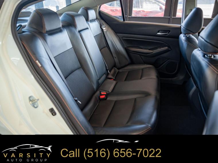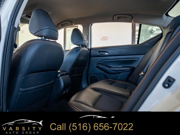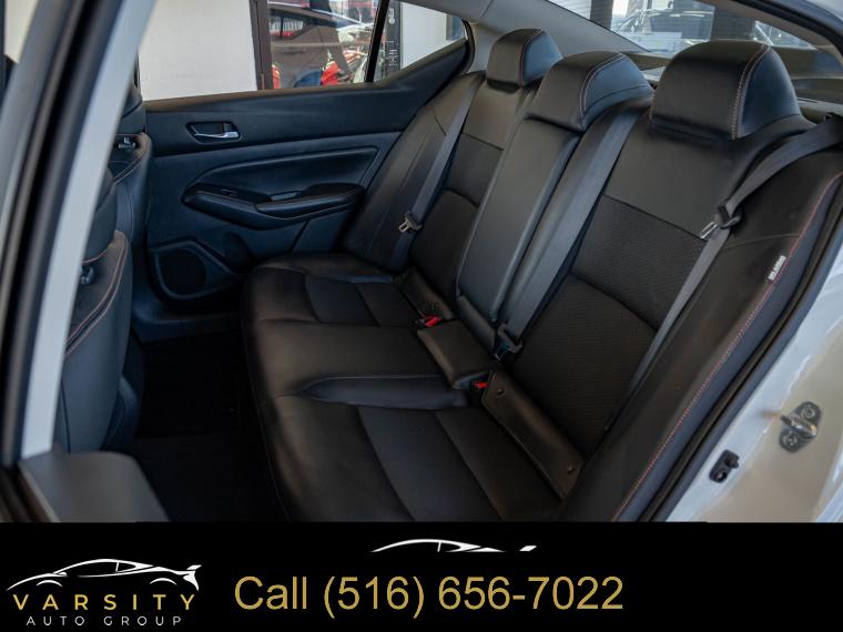 19" Alloy Wheels, Front Sport Bucket Seats, Sport Seat Trim, Radio: AM/FM Audio System, SR Floor Mats/Trunk Mat/Hideaway Nets, 4-Wheel Disc Brakes, NissanConnect featuring Apple CarPlay and Android Auto, AM/FM radio: SiriusXM, Front Center Armrest w/Storage, Blind Spot Warning, Front beverage holders, Variably intermittent wipers, Trip computer, Traction control, Tilt steering wheel, Telescoping steering wheel, Steering wheel mounted audio controls, Split folding rear seat, Speed-sensing steering, Speed control, Security system, Remote keyless entry, Rear window defroster, Rear side impact airbag, Rear seat center armrest, Rear reading lights, Rear anti-roll bar, Radio data system, Power windows, Power steering, Power driver seat, Power door mirrors, Passenger vanity mirror, Passenger door bin, Panic alarm, Overhead console, Overhead airbag, Outside temperature display, Occupant sensing airbag, Low tire pressure warning, Knee airbag, Illuminated entry, Fully automatic headlights, Front reading lights, Front anti-roll bar, Four wheel independent suspension, Dual front side impact airbags, Dual front impact airbags, Driver vanity mirror, Driver door bin, Delay-off headlights, Bumpers: body-color, Brake assist, Alloy wheels, ABS brakes, Tachometer, Spoiler, Leather Shift Knob, Front Bucket Seats, Electronic Stability Control, Air Conditioning, 6 Speakers
