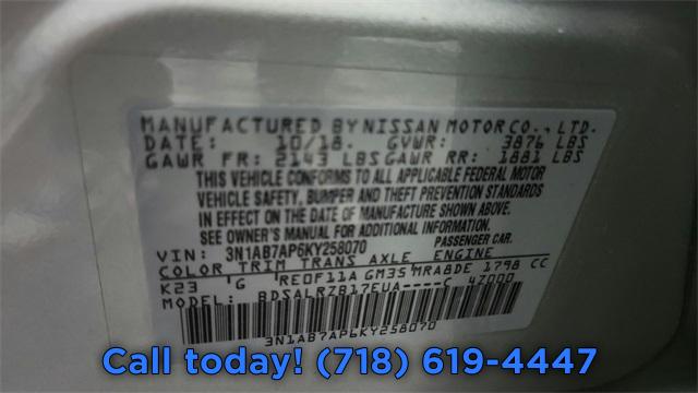 For more information on this 2019 Nissan Sentra, please call Major World at (718) 619-4447 or with the contact form on this page. This vehicle's vin number is 3N1AB7AP6KY258070 and is recorded as being in stock at Major World at 43-40 Northern Blvd in Long Island City. See all cars from this dealership.