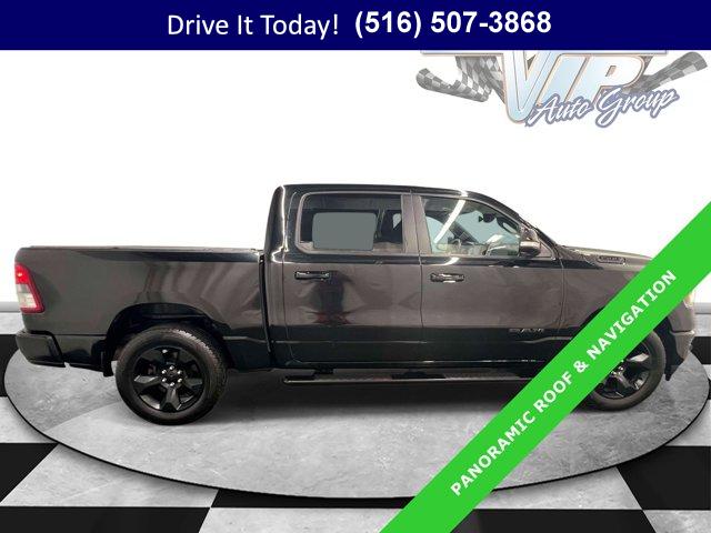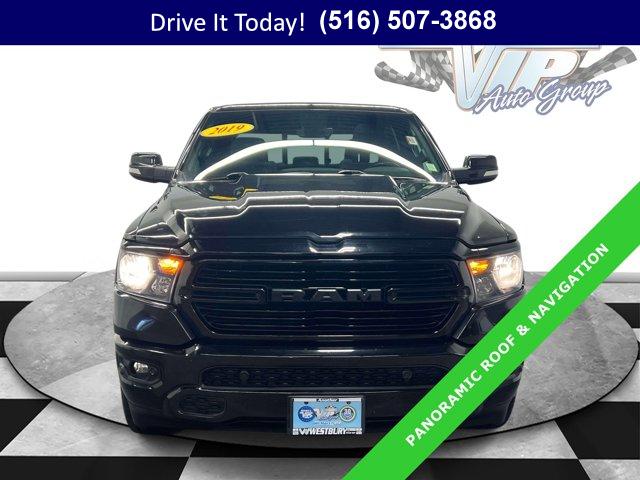 HEMI 5.7L V8 power and confident 4WD capability make this 2019 Ram 1500 4D Crew Cab a standout partner for workdays and weekends alike. Finished in Diamond Black Crystal Pearlcoat with a black cloth interior, it blends a bold look with everyday comfort. The smooth-shifting 8-speed automatic, composed ride, and quiet cabin keep long drives relaxing while the spacious Crew Cab layout gives family, friends, or coworkers the room they need.Slip inside and you are greeted by a driver-focused cabin that balances toughness with smart tech. The Uconnect 4C NAV system with an 8.4-inch multimedia display brings Apple CarPlay, Google Android Auto, HD Radio, and integrated GPS navigation together for easy directions and seamless playlists. Connect to SiriusXM with a 1-year trial, plus Traffic Plus and Travel Link with 5 years of service for live traffic, weather, sports, and more. A Remote Start System lets you warm up or cool down before you climb in, and Air Conditioning ATC with Dual Zone Control makes it simple for driver and passenger to set their own comfort. The Dual-Pane Panoramic Sunroof opens the cabin to sky and light, while the leather steering wheel adds a refined touch. For confident maneuvering, ParkSense Front/Rear Park Assist with Stop pairs with ParkView Rear Back-Up Camera to help you navigate tight spots. Fully automatic headlights and front fog lights boost visibility. Stability and control come through 4-wheel disc brakes, ABS, Electronic Stability Control, and Traction Control. Outside, the Black Appearance Package, black tubular side steps, and bed-ready hardware from the Bed Utility Group pair with a factory spray-in bedliner to handle cargo with less worry. The 48V Belt Starter Generator supports smooth starts and refined drivability, and the rear 60/40 folding seat, premium overhead console, and smart storage touches keep gear organized & more.This Ram has been lightly driven for its age with 84,210 miles, well under the market average for similar trucks, and it shows in how tight and composed it feels on the road. The Big Horn Level 2 Equipment Group adds the convenience and comfort that make daily use easier without complicating your routine.VIP+ ProgramEvery purchase includes our VIP+ Program. Enjoy Unlimited Oil and Filter Changes for 1 year, then included with every factory maintenance thereafter, plus Complimentary NYS Inspections, Complimentary Loaner Cars, and Complimentary 24/7 Rescue and Towing. These benefits are For Life and Transferable, adding long-term value and peace of mind to your ownership experience.More About UsOur vehicles are hand selected for quality and long-term reliability, then professionally reconditioned prior to sale so you can purchase with confidence. Certified vehicles in our inventory meet strict standards, including brake life no less than 50 percent, to help ensure dependable performance. Count on a transparent process focused on trust, preparation, and peace of mind. We are a proud member of the VIP Auto Group serving NY drivers since 1957. We Will Satisfy You!If you commute year-round, this 4WD Ram delivers winter confidence, solid traction, and composed highway manners for daily reliability and long-term value. If you?re looking for a used car on Long Island or a used truck in New York, the spray-in bedliner, Bed Utility Group, and remote start make life simpler from jobsite to driveway, while the panoramic sunroof and dual-zone climate control keep everyone comfortable on weekend escapes.Local shoppers ready for a capable, comfortable, and tech-smart used truck are invited to call now, schedule a test drive, or learn more. New York buyers can also visit WestburyJeep.com to see up-to-date inventory and current pricing. Disclosure: The feature list and vehicle description are intended as a general overview. Equipment, packages, and specifications may vary by vehicle. Please confirm details with our team.