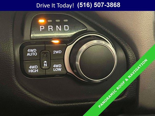 QUICK ORDER PACKAGE 25Z BIG HORN/LONE STAR -inc: Engine: 5.7L V8 HEMI MDS VVT Transmission: 8-Speed Automatic (8HP75) Steering Wheel Mounted Audio Controls, TRANSMISSION: 8-SPEED AUTOMATIC (8HP75), GVWR: 7 100 LBS, ENGINE: 5.7L V8 HEMI MDS VVT -inc: Active Noise Control System 180 Amp Alternator Heavy Duty Engine Cooling GVWR: 7 100 lbs Dual Rear Exhaust w/Bright Tips Hemi Badge, 3.21 REAR AXLE RATIO (STD), DUAL-PANE PANORAMIC SUNROOF -inc: Premium Overhead Console Dome Dual LED Reading Lamp Overhead LED Lamps, BED UTILITY GROUP -inc: Spray In Bedliner 4 Adjustable Cargo Tie-Down Hooks Pick-Up Box Lighting, BLACK TUBULAR SIDE STEPS, BLACK APPEARANCE PACKAGE -inc: Tires: 275/55R20 OWL All Season Exterior Mirrors w/Supplemental Signals Black Headlamp Bezels Power Heated Fold-Away Mirrors Body Color Door Handles Exterior Mirrors Courtesy Lamps Auto Dim Exterior Driver Mirror Black Exterior Truck Badging Exterior Mirrors w/Memory Grille B/Color Outline 1 Texture 2 Black Interior Accents Dual Exhaust w/Black Tips Power-Folding Mirrors Body Color Front Bumper Wheels: 20 x 9 Cast Aluminum Black Body Color Rear Bumper w/Step Pads, SINGLE DISC REMOTE CD PLAYER, BIG HORN LEVEL 2 EQUIPMENT GROUP -inc: Radio: Uconnect 4 w/8.4 Display Rear Window Defroster Integrated Center Stack Radio ParkSense Front/Rear Park Assist w/Stop Rear View Auto Dim Mirror Power Adjustable Pedals Rear Power Sliding Window Rear Dome w/On/Off Switch Lamp Glove Box Lamp Power 4-Way Driver Lumbar Adjust 115V Auxiliary Rear Power Outlet Power 8-Way Driver Seat 2 USB Full Function/Charge Only Media Hub Heated Front Seats Heated Steering Wheel 8.4 Touchscreen Display Foam Bottle Insert (Door Trim Panel) Class IV Receiver Hitch Dampened Tailgate Security Alarm Power Heated Fold Away Mirrors Big Horn IP Badge Remote Start System SiriusXM Satellite Radio 400W Inverter Air Conditioning ATC w/Dual Zone Control 115V Auxiliary Power Outlet Cluster 7.0 TFT Color Display Universal Garage Door Opener Single Disc Remote CD Player Sun Visors w/Illuminated Vanity Mirrors, PARKSENSE FRONT/REAR PARK ASSIST W/STOP, RADIO: UCONNECT 4C NAV W/8.4 DISPLAY -inc: Google Android Auto 1-Year SiriusXM Radio Service SiriusXM Traffic Plus SiriusXM Satellite Radio Disassociated Touchscreen Display HD Radio For Details Visit DriveUconnect.com Integrated Center Stack Radio For More Info Call 800-643-2112 1-Yr SiriusXM Guardian Trial Air Conditioning ATC w/Dual Zone Control 5-Year SiriusXM Travel Link Service GPS Navigation 5-Year SiriusXM Traffic Service SiriusXM Travel Link No Satellite Coverage w/HI/AK/PR/VI/GU 8.4 Touchscreen Display Apple CarPlay, BLACK DELUXE CLOTH BUCKET SEATS -inc: Power 8-Way Driver Seat Center Console Parts Module Bucket Seats Manual Adjust 4-Way Front Passenger Seat Full Length Floor Console Power 4-Way Driver Lumbar Adjust, DIAMOND BLACK CRYSTAL PEARLCOAT, REMOTE START SYSTEM, TIRES: 275/55R20 OWL ALL SEASON, WHEELS: 20 X 9 CAST ALUMINUM BLACK