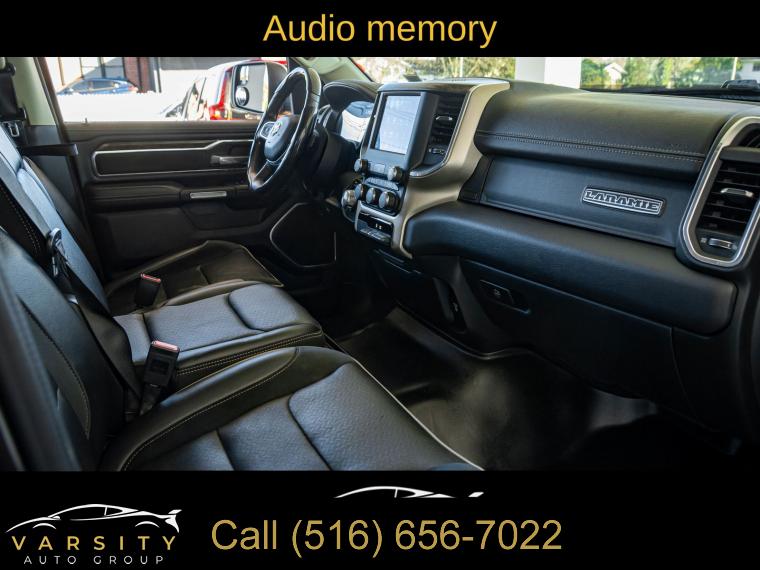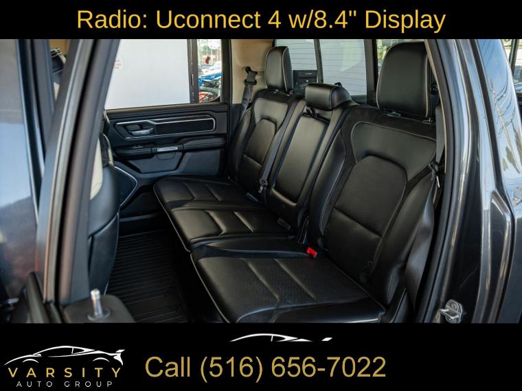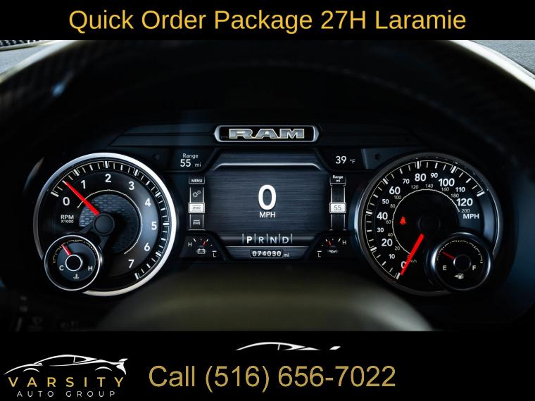 Quick Order Package 27H Laramie, 10 Speakers, AM/FM radio: SiriusXM, Audio memory, GPS Antenna Input, Integrated Center Stack Radio, Radio data system, Radio: Uconnect 4 w/8.4" Display, SiriusXM Satellite Radio, Air Conditioning, Automatic temperature control, Front dual zone A/C, Rear window defroster, Driver Seat Memory, Memory seat, Pedal memory, Power driver seat, Power steering, Power windows, Remote keyless entry, Steering wheel mounted audio controls, Traction control, 4-Wheel Disc Brakes, ABS brakes, Dual front impact airbags, Dual front side impact airbags, Front anti-roll bar, Front wheel independent suspension, Low tire pressure warning, Occupant sensing airbag, Overhead airbag, Rear anti-roll bar, Brake assist, Electronic Stability Control, ParkView Rear Back-Up Camera, Delay-off headlights, Front fog lights, Fully automatic headlights, Panic alarm, Security system, Speed control, 48V Belt Starter Generator, Auto-dimming door mirrors, Bumpers: chrome, Heated door mirrors, Power door mirrors, Rear step bumper, Turn signal indicator mirrors, #1 Seat Foam Cushion, 8.4" Touchscreen Display, Adjustable pedals, Apple CarPlay, Apple CarPlay/Android Auto, Auto-dimming Rear-View mirror, Compass, Driver door bin, Driver vanity mirror, Front reading lights, Garage door transmitter, Google Android Auto, Heated Steering Wheel, Heated steering wheel, Illuminated entry, Leather steering wheel, Manufacturer's Statement of Origin, Outside temperature display, Overhead console, Passenger vanity mirror, Rear seat center armrest, Tachometer, Telescoping steering wheel, Tilt steering wheel, Trip computer, Voltmeter, 3 Rear Seat Head Restraints, 4 Way Front Headrests, Heated Front Seats, Heated front seats, Leather Trim 40/20/40 Bench Seat, Power 4-Way Driver Lumbar Adjust, Power 4-Way Passenger Lumbar Adjust, Power 8-Way Driver & Passenger Seats, Power passenger seat, Split folding rear seat, Ventilated Front Seats, Ventilated front seats, Front Center Armrest w/Storage, Front Seat Back Map Pockets, Passenger door bin, Alloy wheels, Wheels: 18" x 8" Aluminum Base Painted, Variably intermittent wipers, 3.21 Rear Axle Ratio, The Price you See, is the Price You Pay!!!, Ram 1500 Laramie, Granite Crystal Metallic Clearcoat, HEMI 5.7L V8 Multi Displacement VVT, 4 Wheel drive, Clean CARFAX