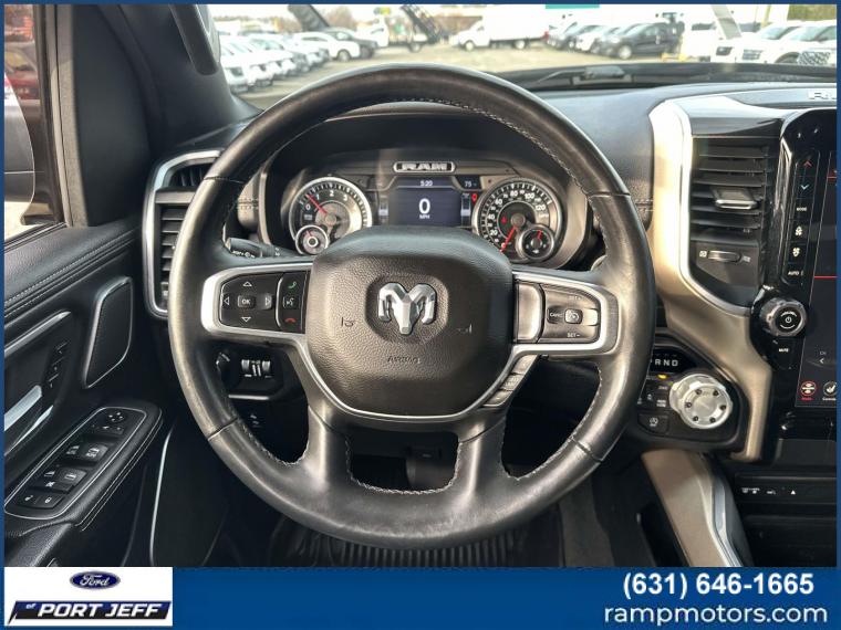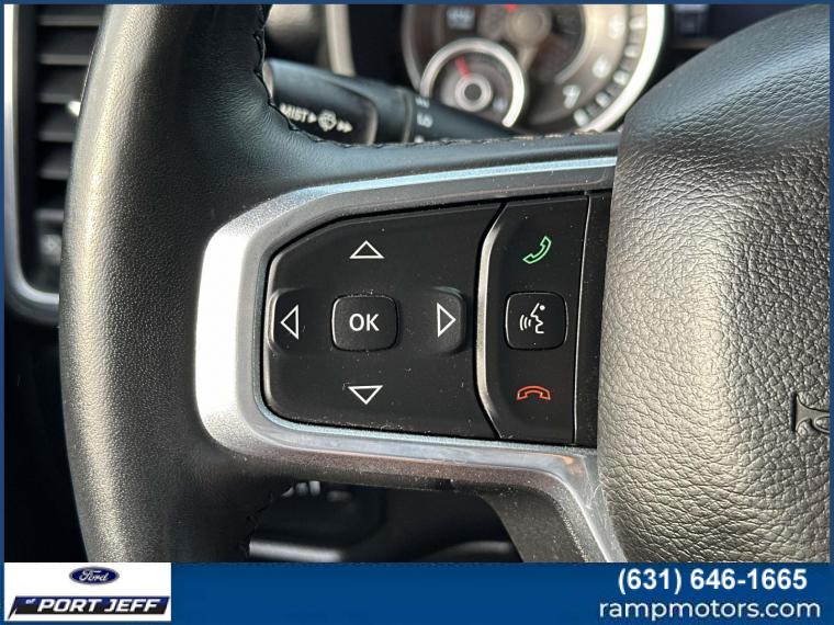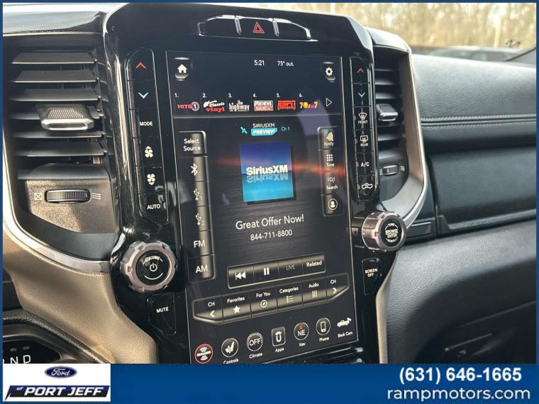 FUEL EFFICIENT 22 MPG Hwy/17 MPG City! CARFAX 1-Owner. Heated/Cooled Leather Seats, iPod/MP3 Input, Back-Up Camera, 4x4, Alloy Wheels, Bed Liner, Trailer Hitch, ENGINE: 5.7L V8 HEMI MDS VVT ETORQUE, ANTI-SPIN DIFFERENTIAL REAR AXLE <br /<br /KEY FEATURES INCLUDE<br /4x4, Heated Driver Seat, Cooled Driver Seat, Back-Up Camera, iPod/MP3 Input, Trailer Hitch, Chrome Wheels, Dual Zone A/C, WiFi Hotspot, Apple CarPlay® MP3 Player, Keyless Entry, Privacy Glass, Steering Wheel Controls. Ram Laramie with Diamond Black Crystal Pearlcoat exterior and Black interior features a 8 Cylinder Engine with 305 HP at 6400 RPM*. <br /<br /OPTION PACKAGES<br /LARAMIE LEVEL 2 EQUIPMENT GROUP Blind Spot & Cross Path Detection, Rain Sensitive Windshield Wipers, ParkSense Front/Rear Park Assist w/Stop, Wireless Charging Pad, Radio: Uconnect 4C Nav w/8.4 Display, SiriusXM Traffic Plus, Disassociated Touchscreen Display, HD Radio, For Details, Visit DriveUconnect.com, 1-Yr SiriusXM Guardian Trial, GPS Navigation, SiriusXM Travel Link, No Satellite Coverage w/HI/AK/PR/VI/GU, Rear 60/40 Folding Split Recline Seat, Remote Tailgate Release, harman/kardon® 19 Speaker Premium Sound, Rear Underseat Compartment Storage, Auto High Beam Headlamp Control, Heated Second Row Seats, Tailgate Ajar Warning Lamp, Foam Bottle Insert (Door Trim Panel), Single Disc Remote CD Player, BLACK APPEARANCE PACKAGE Black Exterior Truck Badging, Wheels: 22 x 9 Polished Painted, Tires: 285/45R22XL BSW All Season, Black Interior Accents, Dual Exhaust w/Black Tips, Black Headlamp Bezels, Power Heated Fold-Away Mirrors, Sport Performance Hood, Body Color Front Bumper, Body Color Door Handles, Body Color Rear Bumper w/Step Pads, Grille B/Color Outline 3 Texture 4, ENGINE: 5.7L V8 HEMI MDS VVT ETORQUE Active Noise Control System, Heavy Duty Engine Cooling, GVWR: 7,100 lbs, Dual Rear Exhaust w/Bright Tips, Hemi Badge, 18 Aluminum Spare Wheel, BLACK, LEATHER TRIMMED BUCKET SEATS Bucket Seats, Rear 60/40 Folding Split Recline Seat, Center Console Parts Module, Full Length Upgraded Floor Console, BED UTILITY GROUP Spray In Bedliner, 4 Adjustable Cargo Tie-Down Hooks, Pick-Up Box Lighting, ANTI-SPIN DIFFERENTIAL REAR AXLE, TRANSMISSION: 8-SPEED AUTOMATIC (8HP75). <br /<br /VEHICLE REVIEWS<br /Edmunds.com explains It feels strong off the line, and it serves up excellent roll-on acceleration when its time to merge or make a pass.. <br /<br /Horsepower calculations based on trim engine configuration. Fuel economy calculations based on original manufacturer data for trim engine configuration. Please confirm the accuracy of the included equipment by calling us prior to purchase. <br /