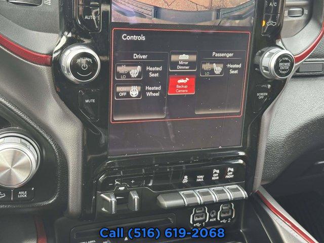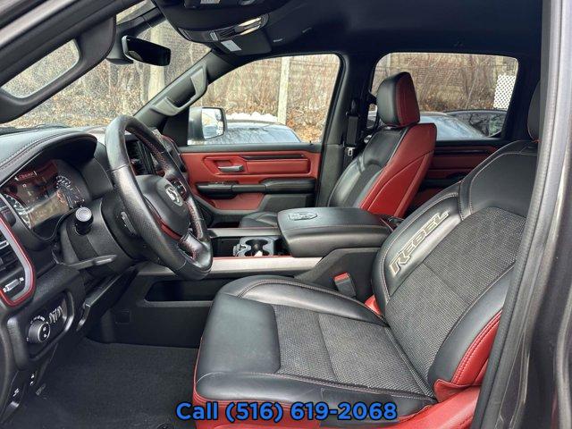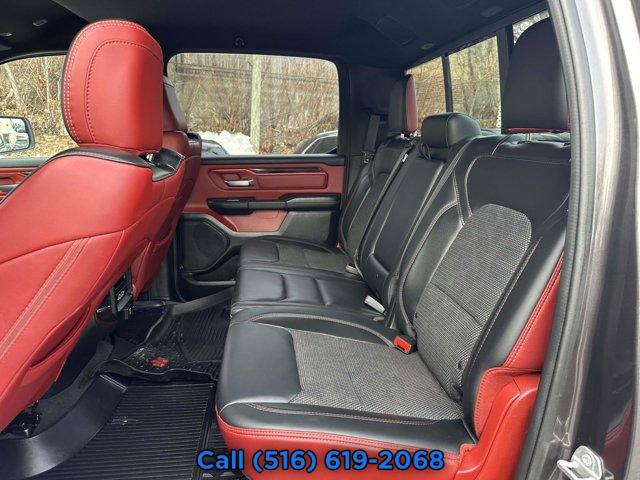 DIAMOND BLACK CRYSTAL PEARLCOAT, RADIO: UCONNECT 12 W/NAVIGATION, BLACK TUBULAR SIDE STEPS, SPRAY IN BEDLINER, PARKSENSE FRONT/REAR PARK ASSIST W/STOP, REBEL LEVEL 2 EQUIPMENT GROUP -inc: Google Android Auto Radio: Uconnect 4 w/8.4 Display Rear Window Defroster Rain Sensitive Windshield Wipers Integrated Center Stack Radio ParkSense Front/Rear Park Assist w/Stop Rear View Auto Dim Mirror Power Adjustable Pedals Rear Dome w/On/Off Switch Lamp 115V Auxiliary Rear Power Outlet Auto Dim Exterior Driver Mirror 2 USB Full Function/Charge Only Media Hub Rear Underseat Compartment Storage Heated Front Seats Heated Steering Wheel 8.4 Touchscreen Display Foam Bottle Insert (Door Trim Panel) Security Alarm Power Heated Fold Away Mirrors Apple CarPlay Remote Start System Exterior Mirrors w/Supplemental Signals Exterior Mirrors Courtesy Lamps Air Conditioning ATC w/Dual Zone Control Remote Proximity Keyless Entry Universal Garage Door Opener Power-Folding Mirrors Single Disc Remote CD Player Sun Visors w/Illuminated Vanity Mirrors, 9 AMPLIFIED SPEAKERS W/SUBWOOFER, GVWR: 7 100 LBS, RADIO: UCONNECT 12 W/NAVIGATION -inc: Google Android Auto SiriusXM Traffic Plus USB Host Flip Disassociated Touchscreen Display HD Radio For Details Visit DriveUconnect.com Integrated Center Stack Radio 1-Yr SiriusXM Guardian Trial 12 Touchscreen Display 5-Year SiriusXM Travel Link Service GPS Navigation 5-Year SiriusXM Traffic Service SiriusXM Travel Link SiriusXM w/360L No Satellite Coverage w/HI/AK/PR/VI/GU Apple CarPlay, LOWER TWO TONE PAINT, TRANSMISSION: 8-SPEED AUTOMATIC (8HP75), REMOTE START SYSTEM, BLIND SPOT & CROSS PATH DETECTION, TRAILER BRAKE CONTROL, ENGINE: 5.7L V8 HEMI MDS VVT -inc: Active Noise Control System Heavy Duty Engine Cooling Dual Exhaust w/Black Tips GVWR: 7 100 lbs Hemi Badge 220 Amp Alternator, QUICK ORDER PACKAGE 25W REBEL -inc: Engine: 5.7L V8 HEMI MDS VVT Transmission: 8-Speed Automatic (8HP75) Body Color Door Handles, GRANITE CRYSTAL METALLIC CLEARCOAT, RED/BLACK CLOTH/VINYL LOW BACK BUCKET SEATS, Four Wheel Drive, Locking/Limited Slip Differential, Tow Hitch, Power Steering, ABS, 4-Wheel Disc Brakes, Brake Assist, Lithium Ion Traction Battery, Aluminum Wheels, Tires - Front All-Terrain, Tires - Rear All-Terrain, Conventional Spare Tire, Tow Hooks, Heated Mirrors, Power Mirror(s), Privacy Glass, Intermittent Wipers, Variable Speed Intermittent Wipers, Power Door Locks, Fog Lamps, Daytime Running Lights, Automatic Headlights, LED Headlights, AM/FM Stereo, Satellite Radio, Bluetooth Connection, Requires Subscription, MP3 Capability, Steering Wheel Audio Controls, Auxiliary Audio Input, Satellite Radio, Requires Subscription, Bluetooth Connection, Power Driver Seat, Driver Adjustable Lumbar, Power Driver Seat, Driver Adjustable Lumbar, Pass-Through Rear Seat, Rear Bench Seat, Adjustable Steering Wheel, Trip Computer, Power Windows, WiFi Hotspot, Leather Steering Wheel, Keyless Start, Keyless Entry, Power Door Locks, Cruise Control, A/C, Cloth Seats, Vinyl Seats, Bucket Seats, Passenger Vanity Mirror, Passenger Illuminated Visor Mirror, Floor Mats, Power Windows, Power Door Locks, Trip Computer, Immobilizer, Traction Control, Stability Control, Traction Control, Front Side Air Bag, Rear Parking Aid, Tire Pressure Monitor, Driver Air Bag, Passenger Air Bag, Front Head Air Bag, Rear Head Air Bag, Passenger Air Bag Sensor, Child Safety Locks, Back-Up Camera