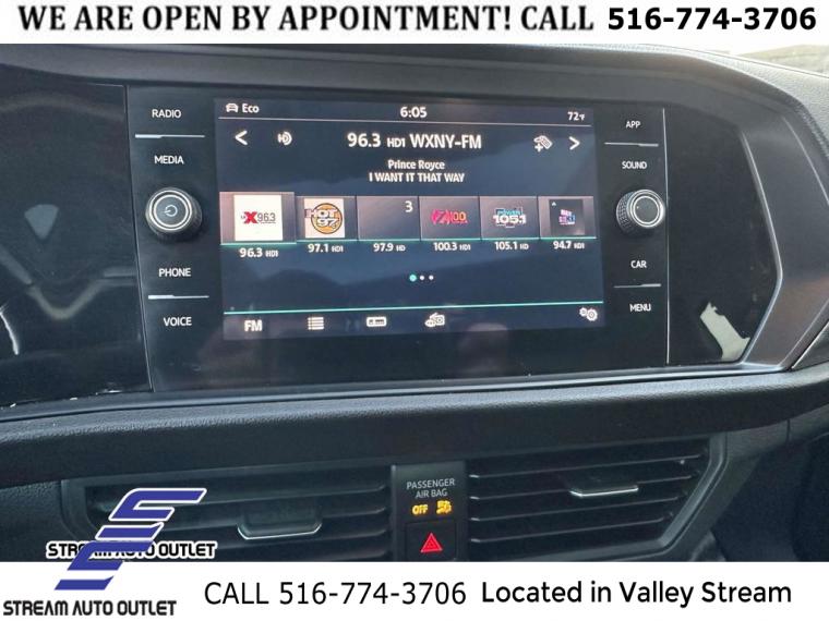 9 Speakers, AM/FM radio: SiriusXM, Radio data system, Radio: Composition Media w/8" Touchscreen, Remote CD player, Air Conditioning, Automatic temperature control, Front dual zone A/C, Rear window defroster, Power steering, Power windows, Remote keyless entry, Steering wheel mounted audio controls, Speed-sensing steering, Traction control, 4-Wheel Disc Brakes, ABS brakes, Dual front impact airbags, Dual front side impact airbags, Emergency communication system: VW Car-Net services (capabilities require enrollment or subscription), Front anti-roll bar, Front wheel independent suspension, Low tire pressure warning, Occupant sensing airbag, Overhead airbag, Rear anti-roll bar, Power moonroof, Brake assist, Electronic Stability Control, Exterior Parking Camera Rear, Auto High-beam Headlights, Delay-off headlights, Fully automatic headlights, Panic alarm, Speed control, Bumpers: body-color, Heated door mirrors, Power door mirrors, Auto-dimming Rear-View mirror, Driver door bin, Driver vanity mirror, Front reading lights, Illuminated entry, Leather Shift Knob, Outside temperature display, Overhead console, Passenger vanity mirror, Rear reading lights, Rear seat center armrest, Tachometer, Telescoping steering wheel, Tilt steering wheel, Trip computer, Front Bucket Seats, Front Center Armrest, Heated Front Comfort Seats, Heated front seats, Perforated V-Tex Leatherette Seat Trim, Split folding rear seat, Passenger door bin, Alloy wheels, Wheels: 16" Two-Tone Rama Black, Rain sensing wipers, Variably intermittent wipers, * NYS INSPECTION INCLUDED *, * FULL INTERIOR / EXTERIOR DETAIL *, * BLUETOOTH *, * LIMITED NYS LEMON LAW WARRANTY INCLUDED *, *FRESH OIL CHANGE *, * 150 MULTI POINT INSPECTION *
