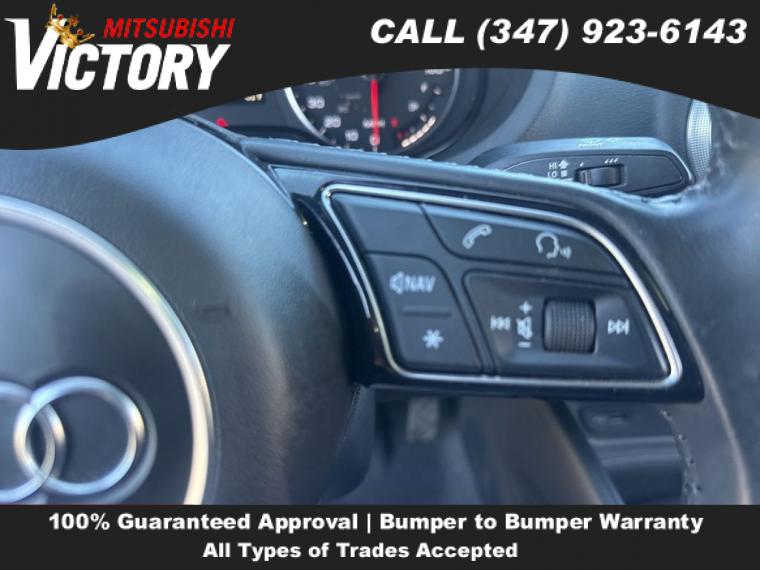 Side & Rear Cross Traffic Assist Package, 10 Speakers, AM/FM radio: SiriusXM, CD player, Radio data system, Radio: Audi Concert AM/FM/CD/SAT Player, Air Conditioning, Automatic temperature control, Front dual zone A/C, Rear window defroster, Power driver seat, Power steering, Power windows, Remote keyless entry, Steering wheel mounted audio controls, Four wheel independent suspension, Speed-sensing steering, Traction control, 4-Wheel Disc Brakes, ABS brakes, Anti-whiplash front head restraints, Dual front impact airbags, Dual front side impact airbags, Front anti-roll bar, Knee airbag, Low tire pressure warning, Occupant sensing airbag, Overhead airbag, Rear anti-roll bar, Power moonroof, Audi Side Assist, Brake assist, Electronic Stability Control, Exterior Parking Camera Rear, Delay-off headlights, High intensity discharge headlights: Xenon plus, Rear fog lights, Panic alarm, Security system, Speed control, Bumpers: body-color, Heated door mirrors, Power door mirrors, Turn signal indicator mirrors, Audi Parking System Plus, Audi smartphone interface (Apple CarPlay/Android Auto), Driver door bin, Driver vanity mirror, Front reading lights, Illuminated entry, Leather Shift Knob, Leather steering wheel, Outside temperature display, Passenger vanity mirror, Rear reading lights, Rear seat center armrest, Tachometer, Telescoping steering wheel, Tilt steering wheel, Trip computer, Front Bucket Seats, Front Center Armrest, Heated Front Bucket Seats, Heated front seats, Leather Seating Surfaces, Split folding rear seat, Passenger door bin, Alloy wheels, Wheels: 18" x 8" 5-Double-Spoke-Design Bi-Color, Rain sensing wipers, Speed-Sensitive Wipers, Variably intermittent wipers,