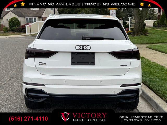 All pricing and details are believed to be accurate, but we do not warrant or guarantee such accuracy. The prices shown above may vary from region to region, as will incentives, and are subject to change. All cars are sold cosmetically As-Is. Vehicle information is based on standard equipment and may vary from vehicle to vehicle. Call or email for complete vehicle specific information. Price Does not include tax, title, license, destination charges, finance charges, or any reconditioning fees. Our special Internet pricing cannot be extended without a printed copy of the online pricing. The in-store price may exceed our special online pricing. Sorry but we cannot extend special pricing without a printed copy of the on-line pricing. To take advantage of our special Internet discounts, please print this page and present it to your salesperson at the BEGINNING of the transaction. Special Internet pricing posted on this ad/coupon/promotion is only available to customers who reference such pricing & present the ad at time of sale otherwise our store standard list price applies. Please be advised this ad is a Special Internet only ad. Prices can be modified and adjusted weekly, daily and sometimes hourly due to inquiries, bidding and website traffic on any Vehicles. All displayed inventory is subject to prior sale and all prices expire at midnight on the date displayed. Every reasonable effort has been made to ensure the accuracy of the information contained on this site, however absolute accuracy cannot be guaranteed. Advertised special excludes state tax, title, license, registration, NY state inspection, NYS tire recycling fee, finance charges, and dealer fees if applicable. Please verify any information in question with the dealership sales manager. This is easily done by calling us at (516) 271-4110 or by visiting us at the dealership. **With approved credit. Ibis White 2020 Audi Q3 Premium S line quattro quattro 8-Speed Automatic with Tiptronic 2.0L 4-Cylinder TFSI