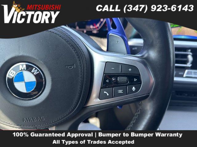 Navigation System, Connected Package Pro, Driving Assistance Package, Executive Package, Premium Package, 10 Speakers, AM/FM radio: SiriusXM, harman/kardon Surround Sound System, Hi-Fi Sound System, Radio Control US, Radio data system, Radio: AM/FM Audio System, SiriusXM Satellite Radio, Air Conditioning, Automatic temperature control, Front dual zone A/C, Rear air conditioning, Rear window defroster, Head-Up Display, Lumbar Support, Memory seat, Power driver seat, Power steering, Power windows, Remote Engine Start, Remote keyless entry, Steering wheel mounted audio controls, Four wheel independent suspension, Speed-sensing steering, Traction control, 4-Wheel Disc Brakes, ABS brakes, Dual front impact airbags, Dual front side impact airbags, Emergency communication system: BMW Assist eCall, Front anti-roll bar, Low tire pressure warning, Occupant sensing airbag, Overhead airbag, Rear anti-roll bar, Power moonroof, Power Tailgate, Active Blind Spot Detection, Brake assist, Electronic Stability Control, Lane Departure Warning System, Exterior Parking Camera Rear, Automatic High Beams, Delay-off headlights, Fully automatic headlights, Panic alarm, Security system, Speed control, Auto-dimming door mirrors, Bumpers: body-color, Heated door mirrors, Icon Adaptive LED Headlights w/Laserlight, Power door mirrors, Spoiler, Turn signal indicator mirrors, Active Driving Assistant, Ambient Lighting, Apple CarPlay Compatibility, Auto-dimming Rear-View mirror, BMW Assist eCall, BMW TeleServices, Compass, ConnectedDrive Services, Driver door bin, Driver vanity mirror, Front reading lights, Garage door transmitter, Gesture Control, Hands-Free Bluetooth & USB Audio Connection, Heated Steering Wheel, Illuminated entry, Leather Shift Knob, Leather steering wheel, Live Cockpit Pro w/Navi, Outside temperature display, Parking Assistant Plus, Passenger vanity mirror, Rear reading lights, Rear seat center armrest, Sport steering wheel, Tachometer, Telescoping steering wheel, Tilt steering wheel, Trip computer, Front Bucket Seats, Front Center Armrest, Heated Front Seats, Power Front Seats, Power passenger seat, SensaTec Upholstery, Split folding rear seat, Sport Seats, Passenger door bin, Alloy wheels, Wheels: 18" x 7.5" Fr & 18" x 8.5" Rr (Style 790M), Wheels: 19" x 8" Fr & 19" x 8.5" Rr (Style 792M), Rain sensing wipers, Speed-Sensitive Wipers, Variably intermittent wipers,