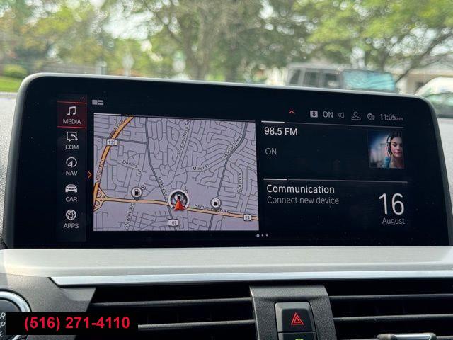 Navigation System, 12 Speakers, AM/FM radio, Hi-Fi Sound System, Radio data system, Radio: AM/FM/HD, Air Conditioning, Automatic temperature control, Front dual zone A/C, Rear air conditioning, Rear window defroster, Memory seat, Power driver seat, Power steering, Power windows, Remote keyless entry, Steering wheel mounted audio controls, Four wheel independent suspension, Speed-sensing steering, Traction control, 4-Wheel Disc Brakes, ABS brakes, Anti-whiplash front head restraints, Dual front impact airbags, Dual front side impact airbags, Emergency communication system: BMW Assist eCall, Front anti-roll bar, Low tire pressure warning, Occupant sensing airbag, Overhead airbag, Rear anti-roll bar, Power moonroof, Power Liftgate, Brake assist, Electronic Stability Control, Exterior Parking Camera Rear, Delay-off headlights, Front fog lights, Fully automatic headlights, Rear fog lights, Panic alarm, Security system, Speed control, Auto-dimming door mirrors, Bodyside moldings, Bumpers: body-color, Heated door mirrors, M Sport Suspension, Power door mirrors, Spoiler, Turn signal indicator mirrors, Apple CarPlay Compatibility, Apple CarPlay Compatibility w/1 Year Trial, Auto-dimming Rear-View mirror, BMW Assist eCall, BMW TeleServices, ConnectedDrive Services, Driver door bin, Driver vanity mirror, Enhanced USB & Bluetooth w/Smartphone Integration, Front reading lights, Garage door transmitter, Genuine wood dashboard insert, Genuine wood door panel insert, Illuminated entry, Leather Shift Knob, Outside temperature display, Passenger vanity mirror, Rear reading lights, Rear seat center armrest, Sport steering wheel, Tachometer, Telescoping steering wheel, Tilt steering wheel, Trip computer, Front Bucket Seats, Front Center Armrest, Power Front Seats, Power passenger seat, SensaTec Upholstery, Split folding rear seat, Sport Bucket Seats, Passenger door bin, Alloy wheels, Wheels: 19" x 7.5" Y-Spoke (Style 693), Rain sensing wipers, Speed-Sensitive Wipers, Variably intermittent wipers, 3.39 Axle Ratio