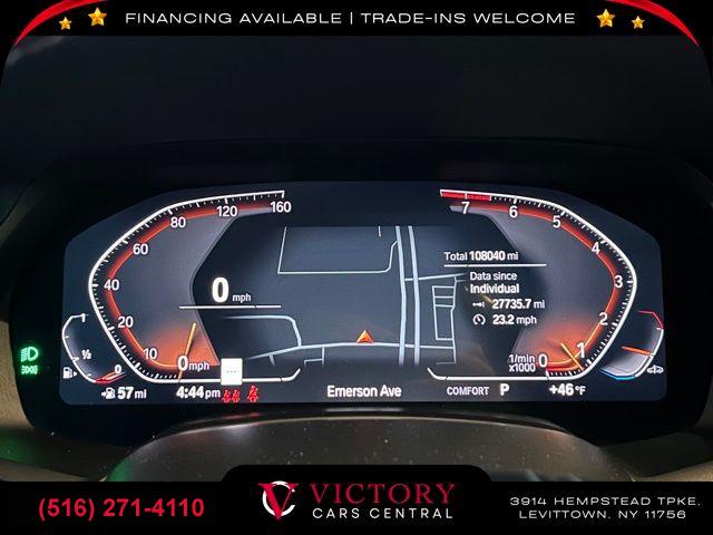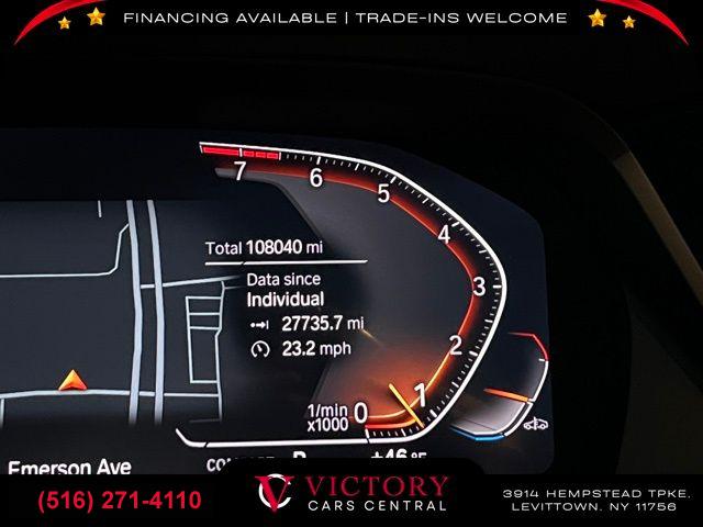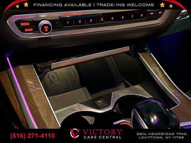 Navigation System, Luxury Seating Package, Parking Assistance Package, Premium Package, 10 Speakers, AM/FM radio: SiriusXM, AM/FM Stereo, harman/kardon Surround Sound System, Hi-Fi Sound System, Radio data system, SiriusXM Satellite Radio, 5-Zone Automatic Climate Control, Air Conditioning, Automatic temperature control, Front dual zone A/C, Rear air conditioning, Rear dual zone A/C, Rear window defroster, Head restraints memory, Head-Up Display, Lumbar Support, Memory seat, Power driver seat, Power steering, Power windows, Remote Engine Start, Remote keyless entry, Steering wheel memory, Steering wheel mounted audio controls, Auto-leveling suspension, Four wheel independent suspension, Speed-sensing steering, Traction control, 4-Wheel Disc Brakes, ABS brakes, Dual front impact airbags, Dual front side impact airbags, Emergency communication system: BMW Assist eCall, Front anti-roll bar, Knee airbag, Low tire pressure warning, Occupant sensing airbag, Overhead airbag, Power adjustable front head restraints, Rear anti-roll bar, Power moonroof, Soft-Close Automatic Doors, Brake assist, Electronic Stability Control, Exterior Parking Camera Rear, Rear-View Camera, Auto High-beam Headlights, Delay-off headlights, Front fog lights, Fully automatic headlights, Panic alarm, Security system, Speed control, Auto-dimming door mirrors, Bumpers: body-color, Heated door mirrors, Parking Assistant Plus, Power door mirrors, Roof rack: rails only, Spoiler, Turn signal indicator mirrors, Apple CarPlay Compatibility, Auto tilt-away steering wheel, Auto-dimming Rear-View mirror, Compass, Drive Recorder, Driver door bin, Driver vanity mirror, Front reading lights, Garage door transmitter, Genuine wood console insert, Genuine wood dashboard insert, Genuine wood door panel insert, Gesture Control, Illuminated entry, Leather Shift Knob, Outside temperature display, Passenger vanity mirror, Rear reading lights, Rear seat center armrest, Sport steering wheel, Surround View w/3D View, Tachometer, Telescoping steering wheel, Tilt steering wheel, Trip computer, 3rd row seats: split-bench, Front Bucket Seats, Front Center Armrest, Front Massaging Seats, Front Ventilated Seats, Heated Front Seats, Heated front seats, Multi-Contour Seats, Power Front Seats, Power passenger seat, Reclining 3rd row seat, Second-Row Captain's Chairs, SensaTec Upholstery, Split folding rear seat, Sport Seats, Passenger door bin, Alloy wheels, Wheels: 21" x 9.5" Y-Spoke Bi-Color (Style 753), Wheels: 22" x 9.5" Fr & 22" x 10.5" Rr Y-Spoke, Rear Electric Side Window Shades, Rain sensing wipers, Rear window wiper, Speed-Sensitive Wipers, Variably intermittent wipers, 3.64 Axle Ratio