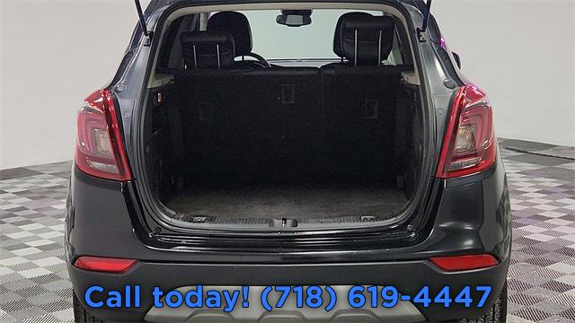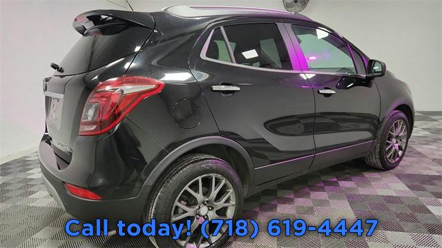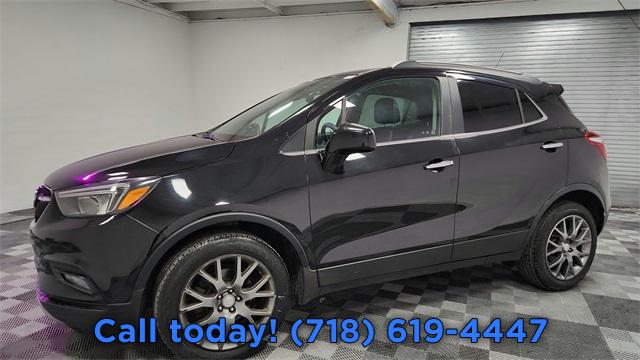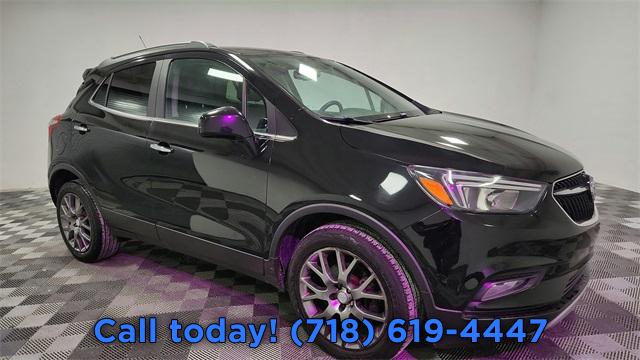 Encore Sport Touring Package, Preferred Equipment Group 1SH, 6 Speakers, 6-Speaker Audio System, AM/FM radio: SiriusXM, Radio data system, Radio: Buick Infotainment System AM/FM Stereo, SiriusXM Radio, Air Conditioning, Rear window defroster, Power driver seat, Power steering, Power windows, Remote keyless entry, Remote Vehicle Starter System, Steering wheel mounted audio controls, Ride & Handling Suspension, Speed-sensing steering, Traction control, 4-Wheel Disc Brakes, ABS brakes, Dual front impact airbags, Dual front side impact airbags, Emergency communication system: OnStar and Buick connected services capable, Front anti-roll bar, Front wheel independent suspension, Knee airbag, Low tire pressure warning, Occupant sensing airbag, Overhead airbag, Rear side impact airbag, Brake assist, Electronic Stability Control, Exterior Parking Camera Rear, Delay-off headlights, Front Fog Lamps, Front fog lights, Fully automatic headlights, Panic alarm, Security system, Speed control, Bumpers: body-color, Heated door mirrors, Power door mirrors, Rear Sport Spoiler, Roof rack: rails only, Spoiler, All-Weather Floor Mats, Apple CarPlay/Android Auto, Compass, Driver door bin, Driver vanity mirror, Front reading lights, Illuminated entry, Outside temperature display, Passenger vanity mirror, Rear seat center armrest, Tachometer, Telescoping steering wheel, Tilt steering wheel, Trip computer, 2-Way Manual Front Passenger Seat Adjuster, 6-Way Power Driver Seat Adjuster, Cloth w/Leatherette Seat Trim, Driver's Seat Mounted Armrest, Front Bucket Seats, Split folding rear seat, Passenger door bin, Alloy wheels, Wheels: 18" Midnight Silver Aluminum Alloy, Rear window wiper, Variably intermittent wipers, 3.53 Final Drive Axle Ratio