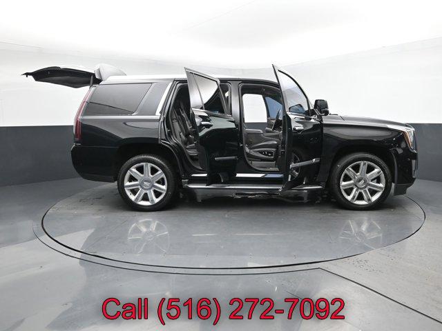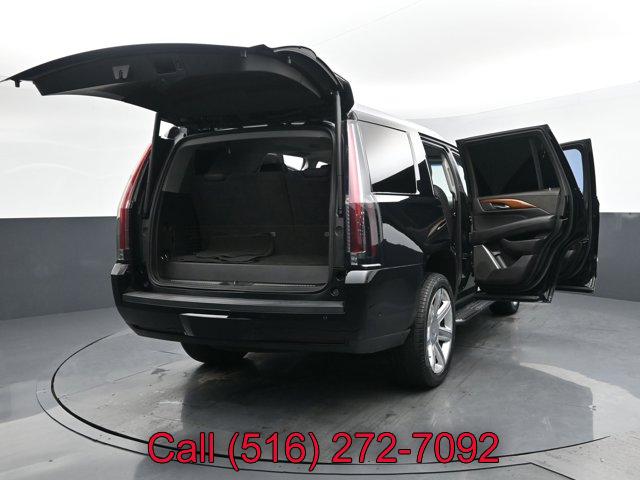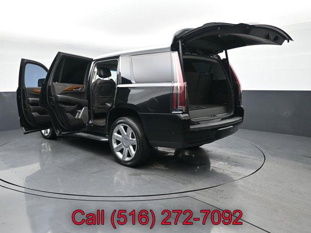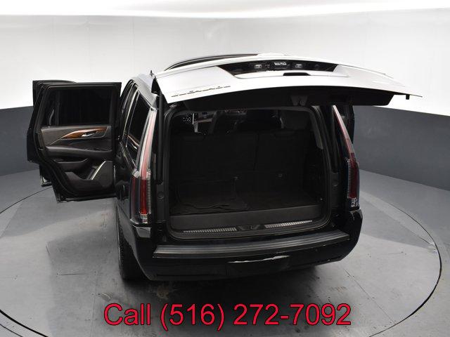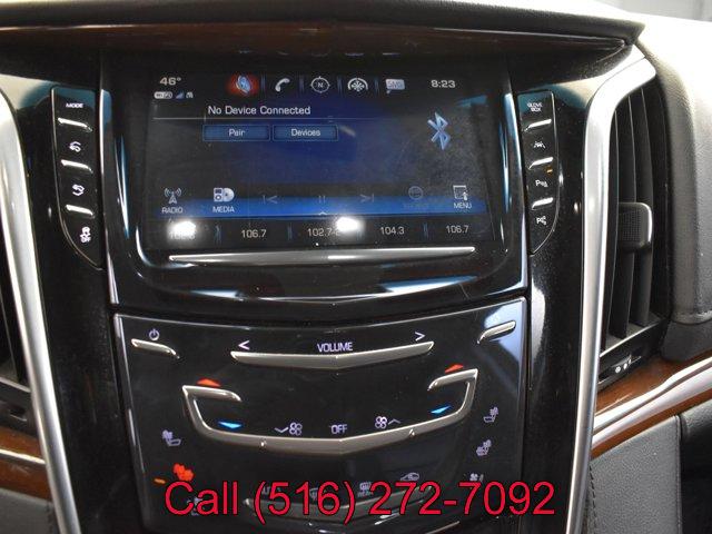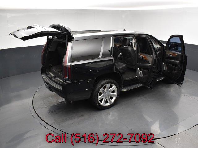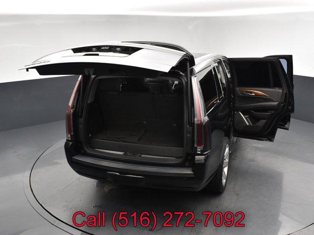 CADILLAC USER EXPERIENCE WITH EMBEDDED NAVIGATION AM/FM stereo with 8 diagonal color information display featuring touch response haptic feedback gesture recognition Natural Voice Recognition Phone Integration for Apple CarPlay and Android Auto capability for compatible phone Connected Apps and Teen Driver. Five USB ports including one in the articulating storage door/bin and auxiliary audio port (STD), LUXURY PREFERRED EQUIPMENT GROUP Includes Standard Equipment, WHEELS 22 X 9 (55.9 CM X 22.9 CM) 7-SPOKE ALLOY WITH CHROME INSERTS/PEARL NICKEL FINISH (STD), REAR AXLE 3.23 RATIO, TRANSMISSION 10-SPEED AUTOMATIC electronically controlled with overdrive tow/haul mode and tap up/tap down shifting (STD), LICENSE PLATE BRACKET FRONT BLACK, SEATS FRONT BUCKET with leather seating surfaces driver and front passenger 12-way power seat adjusters including 4-way power lumbar control independently heated driver and front passenger seat cushions and seatbacks (three settings) and 2-position driver memory (STD), SEATS SECOND ROW BUCKET POWER CONFIGURABLE (STD), BLACK RAVEN, JET BLACK LEATHER SEATING SURFACES with mini perforated inserts, ENGINE 6.2L V8 WITH ACTIVE FUEL MANAGEMENT Spark Ignition Direct Injection (SIDI) and Variable Valve Timing (VVT) includes aluminum block construction (420 hp [313.2 kW] @ 5600 rpm 460 lb-ft of torque [621 N-m] @ 4100 rpm) (STD), Blind Spot Monitor, Lane Departure Warning, Cross-Traffic Alert, Lane Keeping Assist, Front Collision Mitigation, Front Collision Warning, Automatic Highbeams, Security System, Keyless Start, Locking/Limited Slip Differential, Four Wheel Drive, Tow Hitch, Active Suspension, Air Suspension, Power Steering, ABS, 4-Wheel Disc Brakes, 4-Wheel Disc Brakes, Aluminum Wheels, Tires - Front Performance, Tires - Rear Performance, Conventional Spare Tire, Conventional Spare Tire, Sun/Moonroof, Generic Sun/Moonroof, Luggage Rack, Running Boards/Side Steps, Automatic Highbeams, Automatic Headlights, Privacy Glass, Heated Mirrors, Power Mirror(s), Integrated Turn Signal Mirrors, Power Folding Mirrors, Intermittent Wipers, Variable Speed Intermittent Wipers, Rain Sensing Wipers, Intermittent Wipers, Remote Trunk Release, Power Liftgate, Hands-Free Liftgate, AM/FM Stereo, Navigation System, MP3 Capability, Bluetooth Connection, Auxiliary Audio Input, Smart Device Integration, Driver Restriction Features, Satellite Radio, Requires Subscription, HD Radio, Premium Sound System, CD Player, MP3 Capability, WiFi Hotspot, Bluetooth Connection, Satellite Radio, Telematics, Navigation from Telematics, Requires Subscription, Power Driver Seat, Power Passenger Seat, Leather Seats, Bucket Seats, Heated Front Seat(s), Driver Adjustable Lumbar, Passenger Adjustable Lumbar, Seat Memory, Bucket Seats, Rear Bucket Seats, Heated Front Seat(s), Cooled Front Seat(s), Heated Rear Seat(s), Power Passenger Seat, 3rd Row Seat, Pass-Through Rear Seat, Climate Control, A/C, MP3 Capability, Auxiliary Audio Input, Heated Rear Seat(s), Floor Mats, Adjustable Steering Wheel, Leather Steering Wheel, Adjustable Steering Wheel, Heated Steering Wheel, Steering Wheel Audio Controls, Tire Pressure Monitor, Trip Computer, Heads-Up Display, Power Windows, Power Windows, Power Door Locks, Power Door Locks, Adjustable Pedals, Adjustable Steering Wheel, Mirror Memory, Adjustable Pedals, Seat Memory, Keyless Entry, Power Door Locks, Immobilizer, Keyless Start, Remote Engine Start, Cruise Control, Universal Garage Door Opener, Security System, Immobilizer, Security System, Climate Control, Multi-Zone A/C, A/C, Rear A/C, Rear Defrost, Back-Up Camera, Traction Control, Stability Control, Front Collision Mitigation, Front Collision Warning, Driver Air Bag, Passenger Air Bag, Front Side Air Bag, Front Head Air Bag, Rear Head Air Bag, Passenger Air Bag Sensor, Telematics, Requires Subscription, Rear Parking Aid, Rear Parking Aid, Automatic Parking, Back-Up Camera, Aerial View Display System, Lane Departure Warning, Lane Keeping Assist, Cross-Traffic Alert, Blind Spot Monitor, Front Collision Warning, Child Safety Locks, Driver Restriction Features, Tire Pressure Monitor
