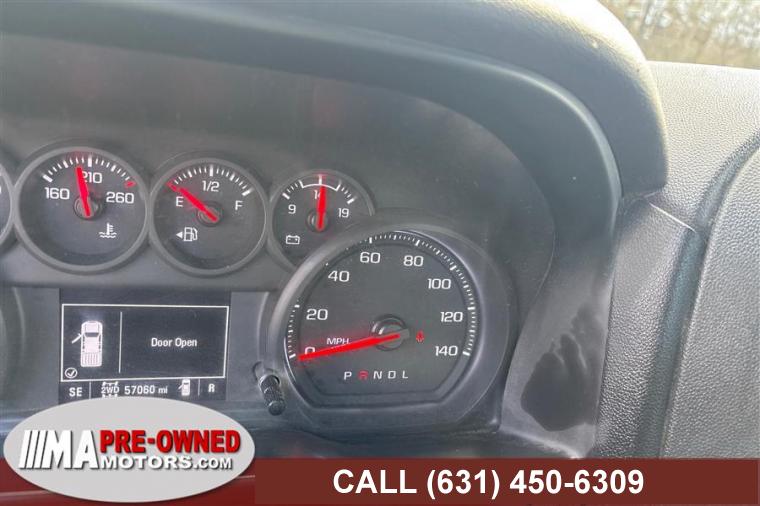 ABS, 4-Wheel Disc Brakes, 8 Cylinder Engine, A/C, A/T, Adjustable Steering Wheel, AM/FM Stereo, Auxiliary Audio Input, Power Outlet, Back-Up Camera, Driver Air Bag, Driver Restriction Features, Stability Control, Four Wheel Drive, Floor Mats, Tow Hooks, Gasoline Fuel, MP3 Capability, Pass-Through Rear Seat, Passenger Air Bag, Passenger Air Bag Sensor, Power Door Locks, Power Steering, Power Windows, Rear Bench Seat, Rear Head Air Bag, Front Side Air Bag, Front Head Air Bag, Smart Device Integration, Split Bench Seat, Tire Pressure Monitor, Traction Control, Bluetooth Connection, Bumpers, front, Black (semi-gloss), Bumpers, rear, Black (semi-gloss), Cargo tie downs (12), fixed rated at 500 lbs per corner, CornerStep, rear bumper, Door handles, Black, Glass, solar absorbing, tinted, Grille (Black bars and mesh inserts.), Headlamps, halogen reflector with halogen Daytime Running Lamps, Lamps, cargo area, cab mounted integrated with center high mount stop lamp, with switch in bank on left side of steering wheel, Mirrors, outside manual, Black, Recovery hooks, front, frame-mounted, black (Included with 4WD models or on 2WD models with (PQA) WT Safety Package. Available free flow on 2WD models.), Tailgate and bed rail protection cap, top, Tailgate, gate function manual, no EZ Lift, Tailgate, locking utilizes same key as ignition and door (Upgraded to (QT5) EZ Lift power lock and release tailgate when (PCV) WT Convenience Package is ordered.) (Upgraded to (QT5) EZ Lift power lock and release tailgate when (ZLQ) WT Fleet Convenience Package or (PCV) WT Convenience Package is ordered.), Taillamps, with incandescent tail, stop and reverse lights, Tire carrier lock, keyed cylinder lock that utilizes same key as ignition and door, Tire, spare 255/70R17 all-season, blackwall (Included with (QBN) 255/70R17 all-season, blackwall tires.), Tires, 255/70R17 all-season, blackwall, Wheels, 17" x 8" (43.2 cm x 20.3 cm) Ultra Silver painted steel, Air conditioning, single-zone, Air vents, rear, heating/cooling (Not available on Regular Cab models.), Assist handles front A-pillar mounted for driver and passenger, rear B-pillar mounted, Door locks, power (Standard on Crew Cab and Double Cab models.), Driver Information Center, 3.5" diagonal monochromatic display, Exterior Temperature Display located in radio display, Floor covering, rubberized-vinyl (Not available with LPO floor liners.), Instrument cluster, 6-gauge cluster featuring speedometer, fuel level, engine temperature, tachometer, voltage and oil pressure, Mirror, inside rearview, manual tilt, Power outlet, front auxiliary, 12-volt, Rear Seat Reminder (Requires Crew Cab or Double Cab model.), Seat adjuster, driver 4-way manual, Seat adjuster, passenger 4-way manual, Seat trim, Vinyl, Seat, rear 60/40 folding bench (folds up), 3-passenger (includes child seat top tether anchor) (Requires Crew Cab or Double Cab model.), Seats, front 40/20/40 split-bench, Steering column, Tilt-Wheel, manual with wheel locking security feature, Steering wheel, urethane, USB port, located on instrument panel, Window, power front, drivers express up/down (Standard on Crew Cab and Double Cab models.), Window, power front, passenger express down (Standard on Crew Cab and Double Cab models.), Windows, power rear, express down (Not available with Regular Cab models.), Alternator, 170 amps, Battery, heavy-duty 730 cold-cranking amps/70 Amp-hr, maintenance-free with rundown protection and retained accessory power (Included and only available with (LV3) 4.3L EcoTec3 V6 engine.), Brake lining wear indicator, Brakes, 4-wheel antilock, 4-wheel disc with DURALIFE rotors, Capless Fuel Fill, Cooling, external engine oil cooler (Not available with (L3B) 2.7L Turbo engine.), Durabed, pickup bed, Engine, 4.3L EcoTec3 V6 with Active Fuel Management, (285 hp [212 kW] @ 5300 rpm, 305 lb-ft of torque [413 Nm] @ 3900 rpm), Exhaust, single outlet, Four wheel drive, Frame, fully-boxed, hydroformed front section, GVWR, 7000 lbs. (3175 kg) (Requires Crew Cab or Double Cab 4WD model and (LV3) 4.3L EcoTec3 V6 engine or (L3B) 2.7L Turbo engine.), Rear axle, 3.42 ratio, Steering, Electric Power Steering (EPS) assist, rack-and-pinion, Transfer case, single speed electronic Autotrac with rotary dial control (4WD models only), Transmission, 6-speed automatic, electronically controlled, Airbags, dual-stage frontal airbags for driver and front outboard passenger; Seat-mounted side-impact airbags for driver and front outboard passenger; Head-curtain airbags for front and rear outboard seating positions; Includes front outboard Passenger Sensing System for frontal outboard passenger airbag (Always use seat belts and child restraints., Daytime Running Lamps with automatic exterior lamp control, Rear Vision Camera, StabiliTrak, stability control system with Proactive Roll Avoidance and traction control, includes electronic trailer sway control and hill start assist, Teen Driver a configurable feature that lets you activate customizable vehicle settings associated with a key fob, to help encourage safe driving behavior. It can limit certain available vehicle features, and it prevents certain safety systems from being turned off. An in-vehicle report card gives you information on driving habits and helps you to, Tire Pressure Monitoring System with Tire Fill Alert (does not apply to spare tire)