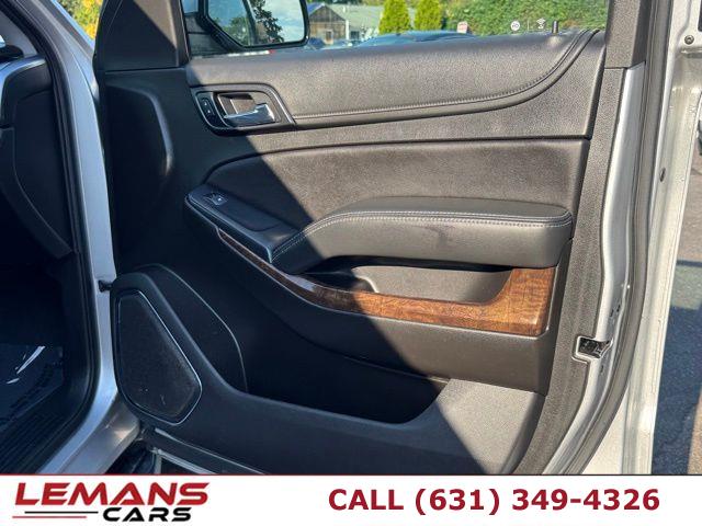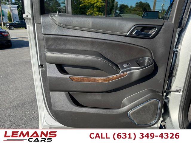 ABS, 4-Wheel Disc Brakes, 6-Speed A/T, 8 Cylinder Engine, A/C, A/T, 3rd Row Seat, Adjustable Steering Wheel, Security System, AM/FM Stereo, Automatic Headlights, Auxiliary Audio Input, Back-Up Camera, Brake Assist, CD Player, Child Safety Locks, Climate Control, Cloth Seats, Cruise Control, Daytime Running Lights, Driver Air Bag, Driver Adjustable Lumbar, Driver Restriction Features, Multi-Zone A/C, Stability Control, Four Wheel Drive, Floor Mats, Front Reading Lamps, Conventional Spare Tire, Gasoline Fuel, Heated Mirrors, Intermittent Wipers, Keyless Entry, Leather Steering Wheel, Locking/Limited Slip Differential, MP3 Capability, Pass-Through Rear Seat, Passenger Air Bag, Passenger Air Bag Sensor, Passenger Adjustable Lumbar, Power Door Locks, Power Mirror(s), Power Driver Seat, Power Passenger Seat, Power Steering, Power Windows, Privacy Glass, Rain Sensing Wipers, Rear A/C, Rear Bench Seat, Rear Defrost, Rear Head Air Bag, Rear Parking Aid, Rear Reading Lamps, Remote Engine Start, Requires Subscription, Running Boards/Side Steps, Front Side Air Bag, Front Head Air Bag, Smart Device Integration, Steering Wheel Audio Controls, Tire Pressure Monitor, Traction Control, Tow Hitch, Transmission Overdrive Switch, Variable Speed Intermittent Wipers, Bluetooth Connection, Active aero shutters, front, Assist steps, Black (Premier includes chrome accent strip) (Deleted when (RVQ) Assist step kit, Black, LPO or (VXH) Assist step kit, Chrome, LPO are ordered.), Fascia, front body-color, Fascia, rear body-color, Glass, acoustic, laminated, Glass, deep-tinted, Liftgate, rear manual, Luggage rack side rails, roof-mounted, Mirrors, outside heated power-adjustable, manual-folding and color keyed driver mirror includes spotter mirror, Tire carrier, lockable outside spare, winch-type mounted under frame at rear, Tire, spare P265/70R17 all-season, blackwall, Tires, P265/65R18 all-season, blackwall, Wheel, full-size spare, 17" (43.2 cm) steel, Wheels, 18" x 8.5" (45.7 cm x 21.6 cm) aluminum with high-polished finish, Windshield, solar absorbing, Wiper, rear intermittent with washer, Wipers, front intermittent, Rainsense, Assist handles, 1st row passenger and 2nd row outboard seats, Cargo management system, Cargo net, Chevrolet Connected Access capable (Subject to terms. See onstar.com or dealer for details.), Climate control, tri-zone automatic with individual climate settings for driver, right-front passenger and rear passengers, Console, floor with storage area, cup holders and auxiliary jack (Not available with (AZ3) 40/20/40 split-bench front seat.), Conversation mirror, Cruise control, electronic with set and resume speed, Defogger, rear-window electric, Door locks, power programmable with lockout protection and delayed locking, Driver Information Center, 4.2" diagonal multi-color, Floor covering, color-keyed carpeting, Floor mats, color-keyed carpeted first and second row, removable, Lighting, interior with dome light, driver- and passenger-side door switch with delayed entry feature, cargo lights, door handle or Remote Keyless Entry-activated illuminated entry and map lights in front and second seat positions, Power outlet, 110-volt, Power outlets, 5 auxiliary, 12-volt includes outlets in the instrument panel, console, back of console, 1 in 3rd row and 1 in cargo area (With (AZ3) 40/20/40 split-bench front seats, the outlet on the back of the console is deleted.), Remote Keyless Entry, extended-range, Remote vehicle start, Seat adjuster, driver power, multidirectional, Seat adjuster, front passenger 6-way power, Seat trim, cloth, Seat, third row manual 60/40 split-folding bench, fold flat, Seats, front bucket, with Premium Cloth passenger seat includes power fore/aft, power recline and power lumbar, 10-way power driver seat includes 6-way power cushion, 2-way power lumbar control and power recline (Includes (AYQ) frontal and side-impact for driver and front passenger airbags and (D07) front center console. Upgradeable to (AZ3) front, Seats, second row 60/40 split-folding bench, manual, Steering column, Tilt-Wheel, Steering wheel controls, mounted audio and cruise controls includes Driver Information Center controls, Steering wheel, leather-wrapped, Theft-deterrent system, electrical, unauthorized entry, Windows, power, with Express-Down and Express-Up on front doors and lock out features, 4-wheel drive, Alternator, 150 amps, Battery, 720 cold cranking amps with 80 amp hour rating, Cooling, auxiliary transmission oil cooler, heavy-duty air-to-oil, Cooling, external engine oil cooler, heavy-duty air-to-oil integral to driver side of radiator, Differential, heavy-duty locking rear, Engine, 5.3L EcoTec3 V8 with Active Fuel Management, Direct Injection and Variable Valve Timing, includes aluminum block construction (355 hp [265 kW] @ 5600 rpm, 383 lb-ft of torque [518 N-m] @ 4100 rpm), GVWR, 7500 lbs. (3402 kg) (Requires 4WD model.), Hill Start Assist, Rear axle, 3.08 ratio (Not available with (NHT) Max Trailering Package.), Steering, power, Suspension Package, Premium Smooth Ride (Not available with (NHT) Max Trailering Package.), Suspension, front coil-over-shock with stabilizer bar, Suspension, rear multi-link with coil springs, Trailer sway control, Trailering equipment includes trailering hitch platform, 7-wire harness with independent fused trailering circuits mated to a 7-way sealed connector and 2" trailering receiver, Transfer case, active, single-speed, electronic Autotrac with rotary controls, does not include neutral. Cannot be dinghy towed (Requires 4WD model. Not available with (NHT) Max Trailering Package.), Transmission, 6-speed automatic, electronically controlled with overdrive and tow/haul mode, Airbags, Frontal airbags for driver and front outboard passenger; Seat-mounted side-impact airbags for driver and front outboard passenger; Driver inboard seat-mounted side-impact airbag; Head-curtain airbags for all rows in outboard seating positions (Not available with (AZ3) front 40/20/40 s