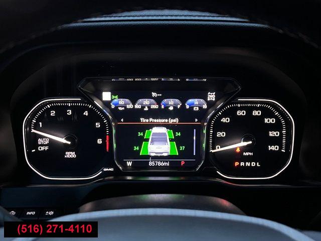 Navigation System, Denali Ultimate Package, Driver Alert Package I, Driver Alert Package II, GMC Protection Package (LPO), Preferred Equipment Group 5SA, Technology Package, Trailering Package, 7 Speakers, AM/FM radio: SiriusXM with 360L, HD Radio, Premium audio system: GMC Infotainment System, Premium Bose 7-Speaker Sound System, Radio data system, Radio: Premium GMC Infotainment Sys w/Navigation, SiriusXM w/360L, Steering Wheel Audio Controls, Air Conditioning, Automatic temperature control, Electric Rear-Window Defogger, Front dual zone A/C, Rear window defroster, 12-Volt Rear Auxiliary Power Outlet, 120-Volt Bed Mounted Power Outlet, 120-Volt Instrument Panel Power Outlet, Driver Memory, Memory seat, Power driver seat, Power Front Passenger Windows w/Express Up/Down, Power Front Windows w/Driver Express Up/Down, Power Rear Windows w/Express Down, Power steering, Power windows, Remote keyless entry, Remote Vehicle Starter System, Steering wheel mounted audio controls, Universal Home Remote, Adaptive suspension, Electrical Lock Control Steering Column, Manual Tilt-Wheel & Telescoping Steering Column, Speed-sensing steering, Traction control, 4-Wheel Disc Brakes, ABS brakes, Dual front impact airbags, Dual front side impact airbags, Front anti-roll bar, Front wheel independent suspension, Keyless Open & Start, Low tire pressure warning, Occupant sensing airbag, Overhead airbag, Power Door Locks, Power Sunroof, Brake assist, Electronic Stability Control, Hill Descent Control, Delay-off headlights, Front fog lights, Fully automatic headlights, Panic alarm, Security system, Theft Deterrent System (Unauthorized Entry), Adaptive Cruise Control - Camera, Speed control, Heavy-Duty Rear Locking Differential, 170 Amp Alternator, Auxiliary External Transmission Oil Cooler, Adaptive Ride Control Suspension, Auto-dimming door mirrors, Bumpers: body-color, Chrome Wheel To Wheel Assist Steps, Front & Rear Black Molded Splash Guards (LPO), Front License Plate Kit, GMC MultiPro Power Steps (DISC), Heated door mirrors, High-Capacity Air Filter, IntelliBeam Automatic High Beam On/Off, LED Cargo Area Lighting, Power door mirrors, ProGrade Trailering System, Rear step bumper, Rear Wheelhouse Liners, Signature Denali Grille, Spray-On Pickup Bed Liner w/Denali Logo, 2 USB Ports, 2 USB Ports (1st Row), 4G LTE Wi-Fi Hotspot Capable, All-Weather Floor Liner (LPO), Apple CarPlay/Android Auto, Auto-dimming Rear-View mirror, Automatic Emergency Braking, Bed View Camera, Color-Keyed Carpeting Floor Covering, Compass, Driver door bin, Driver vanity mirror, Floor-Mounted Center Console, Following Distance Indicator, Forward Collision Alert, Front Pedestrian Braking, Front reading lights, Garage door transmitter, Genuine wood console insert, Genuine wood door panel insert, GMC Connected Access Capable, HD Rear Vision Camera, HD Surround Vision w/2 Trailer View Camera Provisions, Heated steering wheel, Illuminated entry, Lane Change Alert w/Side Blind Zone Alert, Lane Keep Assist w/Lane Departure Warning, Multicolor 15" Diagonal Head-Up Display, OnStar & GMC Connected Services Capable, Outside temperature display, Overhead console, Passenger vanity mirror, Rear Camera Mirror, Rear Cross Traffic Alert, Rear Dual USB Charging-Only Ports, Rear reading lights, Rear seat center armrest, Safety Alert Seat, Tachometer, Telescoping steering wheel, Tilt steering wheel, Trip computer, Ultrasonic Front & Rear Park Assist, Voltmeter, Wireless Charging, 10-Way Power Driver Seat Adjuster w/Lumbar, 10-Way Power Passenger Seat Adjuster w/Lumbar, Forge Perforated Leather-Appointed Seat Trim, Front Bucket Seats, Front Center Armrest, Heated 2nd Row Outboard Seats, Heated Driver & Front Outboard Passenger Seating, Heated front seats, Heated rear seats, Power passenger seat, Split folding rear seat, Ventilated Driver & Front Passenger Seats, Ventilated front seats, Passenger door bin, Chrome Recovery Hooks, Hitch Guidance, Hitch Guidance w/Hitch View, In-Vehicle Trailering App, Integrated Trailer Brake Controller, Alloy wheels, Wheels: 20" x 9" Multi-Dimensional Polished Alum, Wheels: 22" Bright Chrome (LPO), Wheels: 22" x 9" Steel Interim, Deep-Tinted Glass, Power Sliding Rear Window w/Rear Defogger, Variably intermittent wipers, 3.23 Rear Axle Ratio