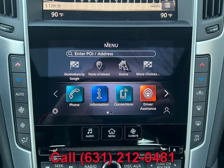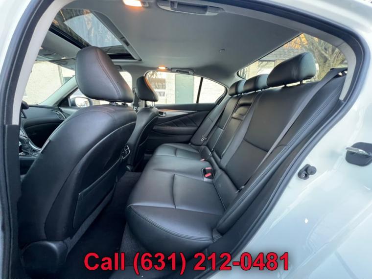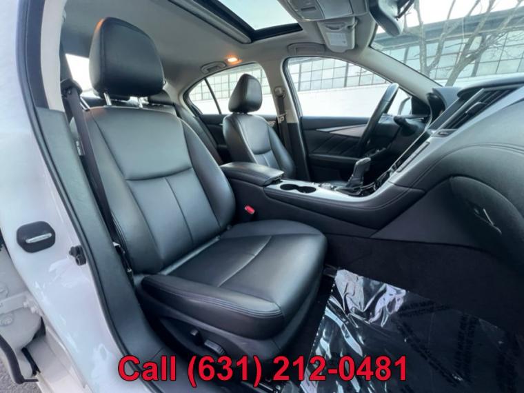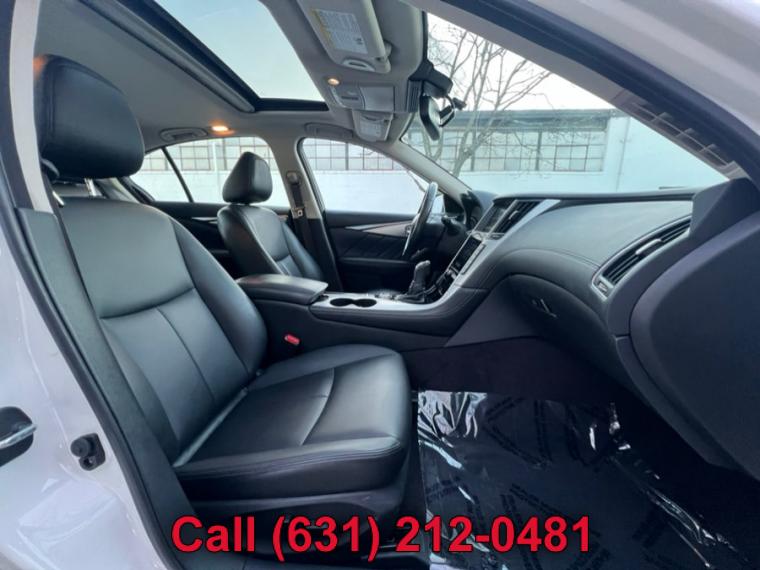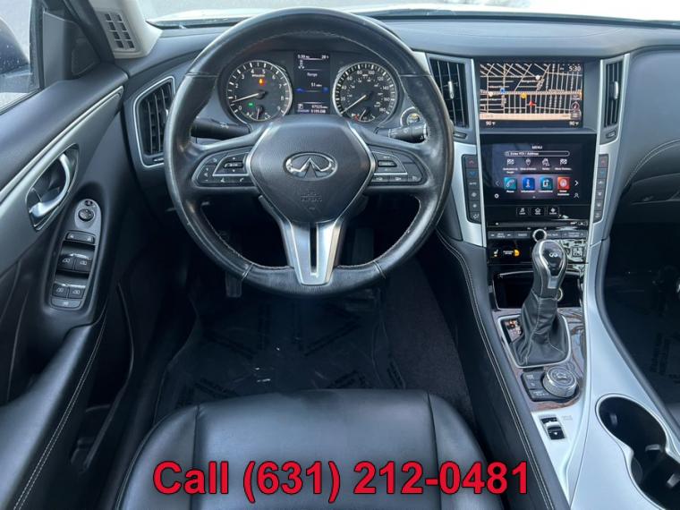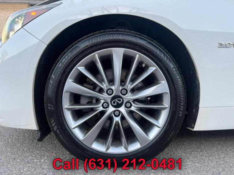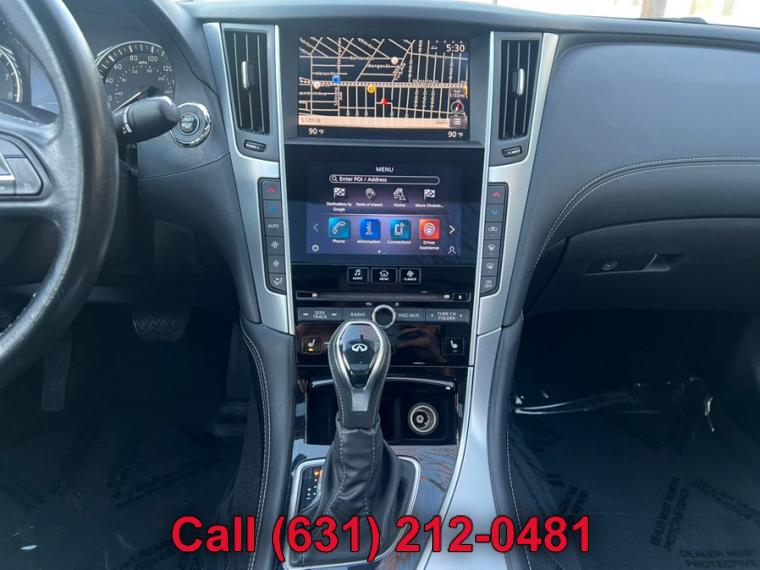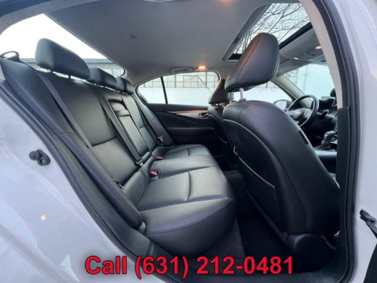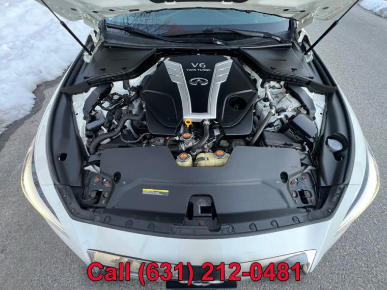 ABS, 4-Wheel Disc Brakes, 7-Speed A/T, A/C, A/T, Adjustable Steering Wheel, Security System, All Wheel Drive, Aluminum Wheels, AM/FM Stereo, Transmission w/Dual Shift Mode, Automatic Headlights, Auxiliary Audio Input, Back-Up Camera, Brake Assist, Bucket Seats, CD Player, Child Safety Locks, Climate Control, Cruise Control, Daytime Running Lights, Driver Air Bag, Driver Illuminated Vanity Mirror, Driver Adjustable Lumbar, Driver Vanity Mirror, Multi-Zone A/C, Auto-Dimming Rearview Mirror, Stability Control, Fog Lamps, Floor Mats, Gasoline Fuel, HD Radio, Heated Mirrors, Integrated Turn Signal Mirrors, Intermittent Wipers, Keyless Entry, Keyless Start, Leather Steering Wheel, MP3 Player, Pass-Through Rear Seat, Passenger Air Bag, Passenger Air Bag Sensor, Passenger Illuminated Visor Mirror, Passenger Vanity Mirror, Power Door Locks, Power Mirror(s), Power Driver Seat, Power Passenger Seat, Power Steering, Sun/Moonroof, Power Windows, Premium Synthetic Seats, Rain Sensing Wipers, Rear Bench Seat, Rear Defrost, Rear Head Air Bag, Remote Trunk Release, Requires Subscription, Satellite Radio, Front Side Air Bag, Front Head Air Bag, Smart Device Integration, Steering Wheel Audio Controls, Generic Sun/Moonroof, Tire Pressure Monitor, Tires - Front Performance, Tires - Rear Performance, Traction Control, Trip Computer, Turbocharged, Universal Garage Door Opener, V6 Cylinder Engine, Variable Speed Intermittent Wipers, Engine Immobilizer, Bluetooth Connection, Body-Colored Front Bumper w/Chrome Rub Strip/Fascia Accent, Body-Colored Power Heated Side Mirrors w/Manual Folding and Turn Signal Indicator, Body-Colored Rear Bumper w/Chrome Rub Strip/Fascia Accent, Chrome Door Handles, Chrome Grille, Chrome Side Windows Trim and Black Front Windshield Trim, Clearcoat Paint, Express Open/Close Sliding And Tilting Glass 1st Row Sunroof w/Sunshade, Fixed Rear Window w/Defroster, Front Fog Lamps, Fully Automatic Projector Beam Led Low/High Beam Daytime Running Headlamps w/Delay-Off, Galvanized Steel/Aluminum Panels, LED Brakelights, Light Tinted Glass, Perimeter/Approach Lights, Speed Sensitive Rain Detecting Variable Intermittent Wipers, Tires: P225/50R18 AS Run-Flat, Trunk Rear Cargo Access, Wheels: 18" x 7.5" Aluminum-Alloy, 2 12V DC Power Outlets, 2 Seatback Storage Pockets, Air Filtration, Analog Display, Bench Front Facing Rear Seat, Cargo Space Lights, Carpet Floor Trim and Carpet Trunk Lid/Rear Cargo Door Trim, Compass, Cruise Control w/Steering Wheel Controls, Day-Night Auto-Dimming Rearview Mirror, Delayed Accessory Power, Driver And Passenger Door Bins, Driver And Passenger Visor Vanity Mirrors w/Driver And Passenger Illumination, Driver And Passenger Auxiliary Mirror, Driver Foot Rest, Driver Seat, Dual Zone Front Automatic Air Conditioning, Engine Immobilizer, Fade-To-Off Interior Lighting, FOB Controls -inc: Cargo Access and Windows, Front And Rear Map Lights, Front Bucket Seats -inc: 8-way power driver w/2-way manual lumbar and 8-way power passenger, Front Center Armrest and Rear Center Armrest w/Pass-Thru, Front Cupholder, Full Carpet Floor Covering -inc: Carpet Front And Rear Floor Mats, Full Cloth Headliner, Full Floor Console w/Covered Storage, Mini Overhead Console w/Storage and 2 12V DC Power Outlets, Gauges -inc: Speedometer, Odometer, Engine Coolant Temp, Tachometer, Trip Odometer and Trip Computer, HomeLink Garage Door Transmitter, HVAC -inc: Underseat Ducts and Console Ducts, Illuminated Locking Glove Box, Interior Trim -inc: Aluminum Instrument Panel Insert, Aluminum Door Panel Insert, Aluminum Console Insert and Chrome Interior Accents, Leather Steering Wheel, Leather/Aluminum Gear Shifter Material, Leatherette Door Trim Insert, Leatherette Seating Surfaces, Manual Anti-Whiplash Adjustable Front Head Restraints and Manual Adjustable Rear Head Restraints, Manual Tilt/Telescoping Steering Column, Outside Temp Gauge, Passenger Seat, Perimeter Alarm, Power 1st Row Windows w/Front And Rear 1-Touch Up/Down, Power Door Locks w/Autolock Feature, Power Fuel Flap Locking Type, Power Rear Windows, Proximity Key For Doors And Push Button Start, Rear Cupholder, Remote Keyless Entry w/Integrated Key Transmitter, 2 Door Curb/Courtesy, Illuminated Entry, Illuminated Ignition Switch and Panic Button, Remote Releases -Inc: Power Cargo Access and Power Fuel, Seats w/Leatherette Back Material, Smart Device Integration, Trip Computer, Valet Function, 150 Amp Alternator, 2.94 Axle Ratio, 20 Gal. Fuel Tank, 4-Wheel Disc Brakes w/4-Wheel ABS, Front And Rear Vented Discs, Brake Assist and Hill Hold Control, 62-Amp/Hr Maintenance-Free Battery w/Run Down Protection, Double Wishbone Front Suspension w/Coil Springs, Dual Stainless Steel Exhaust w/Chrome Tailpipe Finisher, Electric Power-Assist Speed-Sensing Steering, Engine: 3.0L V6 Twin Turbo DOHC, Front And Rear Anti-Roll Bars, Full-Time All-Wheel, Gas-Pressurized Shock Absorbers, Multi-Link Rear Suspension w/Coil Springs, Transmission w/Driver Selectable Mode and Sequential Shift Control, Transmission: 7-Speed Automatic w/Overdrive -inc: manual shift mode w/downshift rev matching and INFINITI drive mode selector, ABS And Driveline Traction Control, Airbag Occupancy Sensor, Curtain 1st And 2nd Row Airbags, Dual Stage Driver And Passenger Front Airbags, Dual Stage Driver And Passenger Seat-Mounted Side Airbags, Electronic Stability Control (ESC), Outboard Front Lap And Shoulder Safety Belts -inc: Rear Center 3 Point, Height Adjusters and Pretensioners, Predictive Forward Collision Warning w/FEB, Rear Child Safety Locks, RearView Monitor Back-Up Camera, Side Impact Beams, Tire Specific Low Tire Pressure Warning