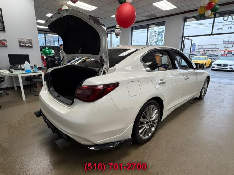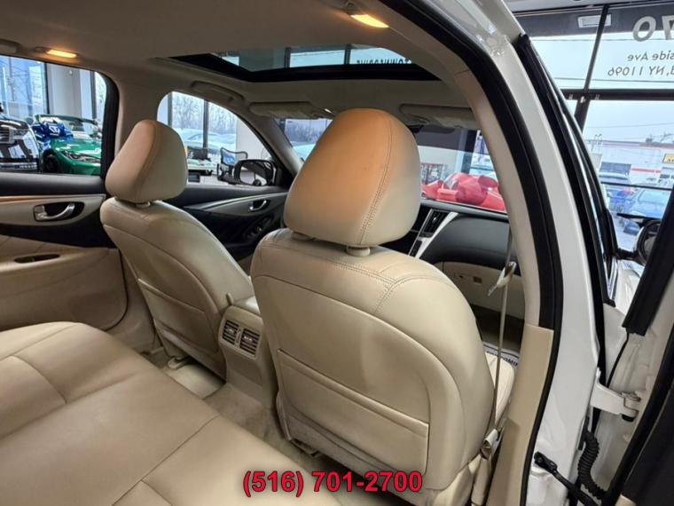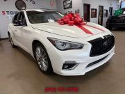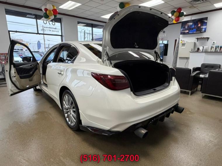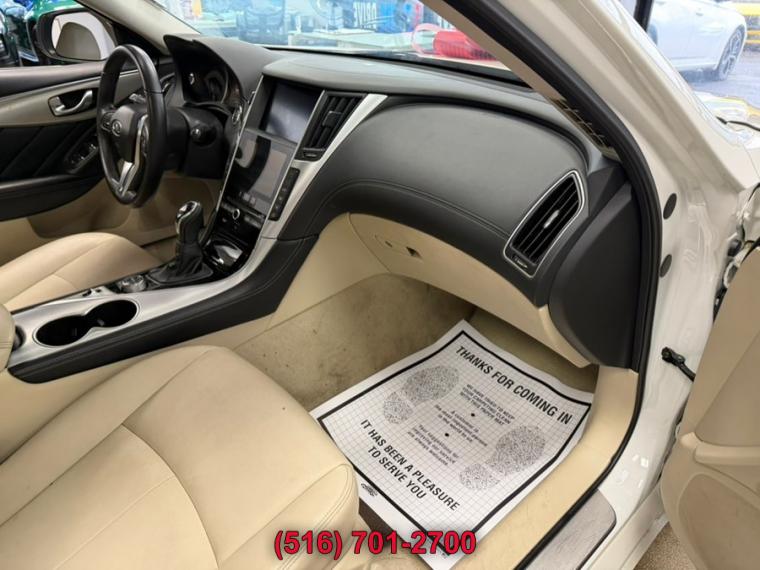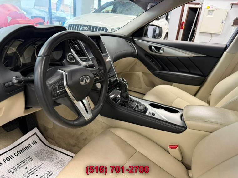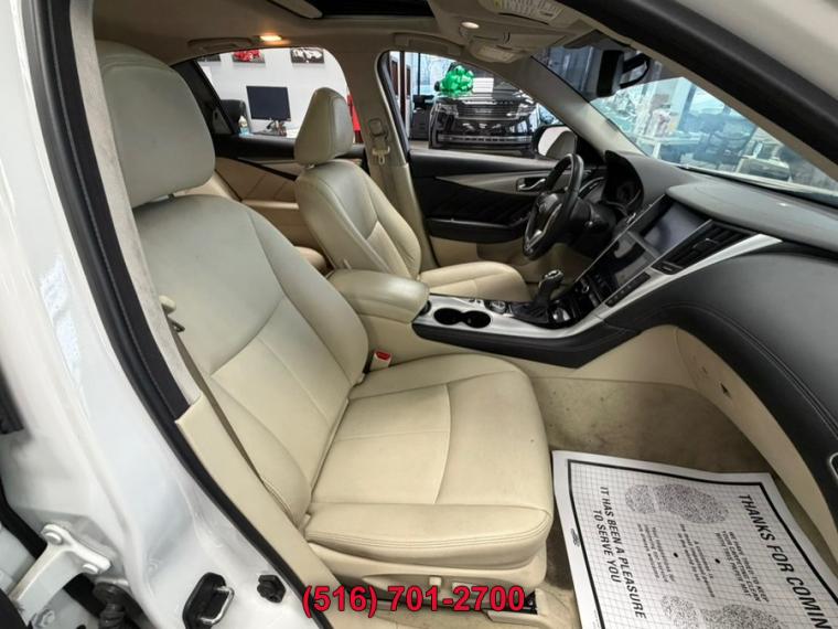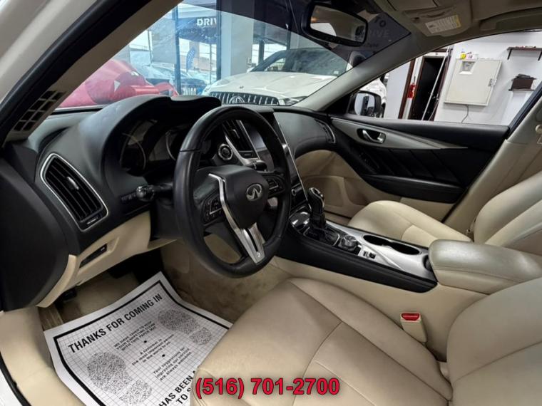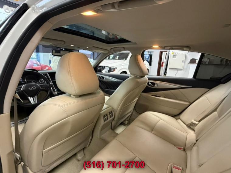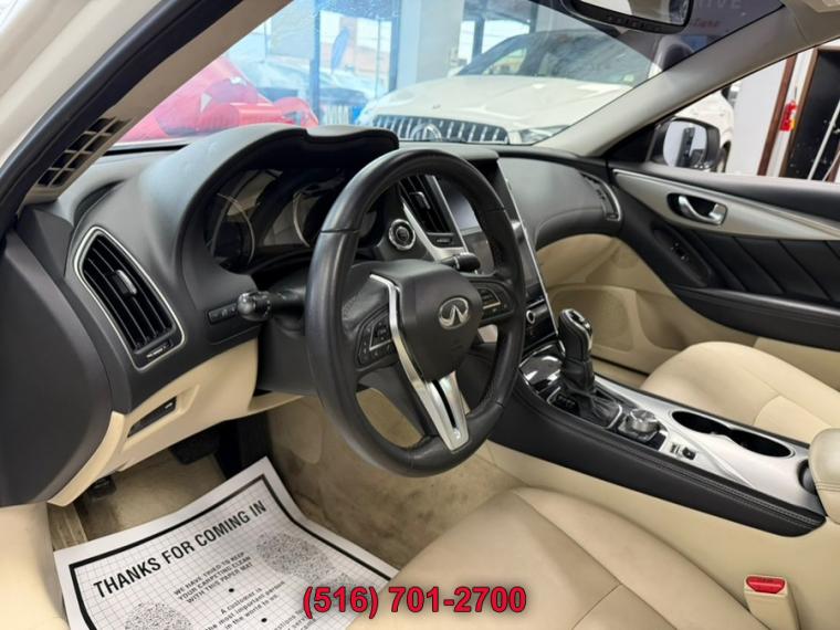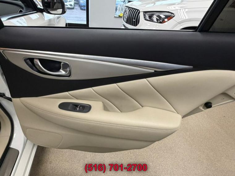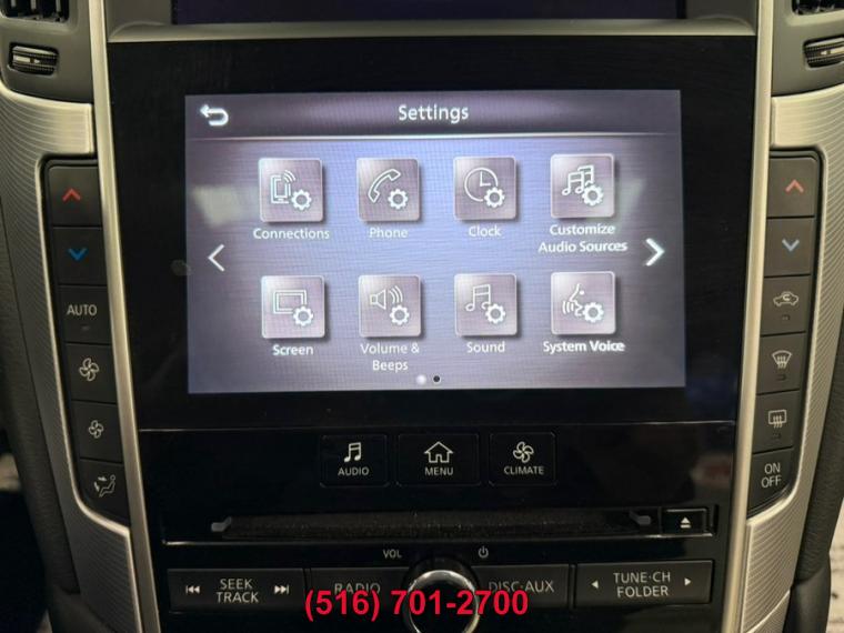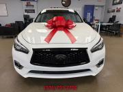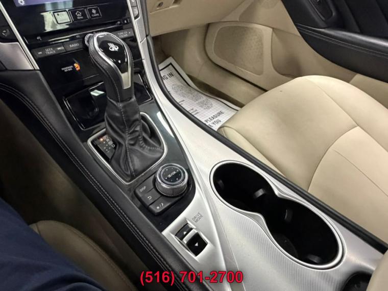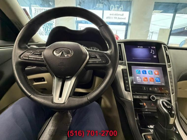 ABS, 4-Wheel Disc Brakes, 7-Speed A/T, A/C, A/T, Adjustable Steering Wheel, Security System, All Wheel Drive, Aluminum Wheels, AM/FM Stereo, Transmission w/Dual Shift Mode, Automatic Headlights, Auxiliary Audio Input, Back-Up Camera, Brake Assist, Bucket Seats, CD Player, Child Safety Locks, Climate Control, Cruise Control, Daytime Running Lights, Driver Air Bag, Driver Illuminated Vanity Mirror, Driver Adjustable Lumbar, Driver Vanity Mirror, Multi-Zone A/C, Auto-Dimming Rearview Mirror, Stability Control, Fog Lamps, Floor Mats, Gasoline Fuel, HD Radio, Heated Mirrors, Integrated Turn Signal Mirrors, Intermittent Wipers, Keyless Entry, Keyless Start, Leather Steering Wheel, MP3 Player, Pass-Through Rear Seat, Passenger Air Bag, Passenger Air Bag Sensor, Passenger Illuminated Visor Mirror, Passenger Vanity Mirror, Power Door Locks, Power Mirror(s), Power Driver Seat, Power Passenger Seat, Power Steering, Sun/Moonroof, Power Windows, Premium Synthetic Seats, Rain Sensing Wipers, Rear Bench Seat, Rear Defrost, Rear Head Air Bag, Remote Trunk Release, Requires Subscription, Satellite Radio, Front Side Air Bag, Front Head Air Bag, Smart Device Integration, Steering Wheel Audio Controls, Generic Sun/Moonroof, Tire Pressure Monitor, Tires - Front Performance, Tires - Rear Performance, Traction Control, Trip Computer, Turbocharged, Universal Garage Door Opener, V6 Cylinder Engine, Variable Speed Intermittent Wipers, Engine Immobilizer, Bluetooth Connection, Body-Colored Front Bumper w/Chrome Rub Strip/Fascia Accent, Body-Colored Power Heated Side Mirrors w/Manual Folding and Turn Signal Indicator, Body-Colored Rear Bumper w/Chrome Rub Strip/Fascia Accent, Chrome Door Handles, Chrome Grille, Chrome Side Windows Trim and Black Front Windshield Trim, Clearcoat Paint, Express Open/Close Sliding And Tilting Glass 1st Row Sunroof w/Sunshade, Fixed Rear Window w/Defroster, Front Fog Lamps, Fully Automatic Projector Beam Led Low/High Beam Daytime Running Headlamps w/Delay-Off, Galvanized Steel/Aluminum Panels, LED Brakelights, Light Tinted Glass, Perimeter/Approach Lights, Speed Sensitive Rain Detecting Variable Intermittent Wipers, Tires: P225/50R18 AS Run-Flat, Trunk Rear Cargo Access, Wheels: 18" x 7.5" Aluminum-Alloy, 2 12V DC Power Outlets, 2 Seatback Storage Pockets, Air Filtration, Analog Display, Bench Front Facing Rear Seat, Cargo Space Lights, Carpet Floor Trim and Carpet Trunk Lid/Rear Cargo Door Trim, Compass, Cruise Control w/Steering Wheel Controls, Day-Night Auto-Dimming Rearview Mirror, Delayed Accessory Power, Driver And Passenger Door Bins, Driver And Passenger Visor Vanity Mirrors w/Driver And Passenger Illumination, Driver And Passenger Auxiliary Mirror, Driver Foot Rest, Driver Seat, Dual Zone Front Automatic Air Conditioning, Engine Immobilizer, Fade-To-Off Interior Lighting, FOB Controls -inc: Cargo Access and Windows, Front And Rear Map Lights, Front Bucket Seats -inc: 8-way power driver w/2-way manual lumbar and 8-way power passenger, Front Center Armrest and Rear Center Armrest w/Pass-Thru, Front Cupholder, Full Carpet Floor Covering -inc: Carpet Front And Rear Floor Mats, Full Cloth Headliner, Full Floor Console w/Covered Storage, Mini Overhead Console w/Storage and 2 12V DC Power Outlets, Gauges -inc: Speedometer, Odometer, Engine Coolant Temp, Tachometer, Trip Odometer and Trip Computer, HomeLink Garage Door Transmitter, HVAC -inc: Underseat Ducts and Console Ducts, Illuminated Locking Glove Box, Interior Trim -inc: Aluminum Instrument Panel Insert, Aluminum Door Panel Insert, Aluminum Console Insert and Chrome Interior Accents, Leather Steering Wheel, Leather/Aluminum Gear Shifter Material, Leatherette Door Trim Insert, Leatherette Seating Surfaces, Manual Anti-Whiplash Adjustable Front Head Restraints and Manual Adjustable Rear Head Restraints, Manual Tilt/Telescoping Steering Column, Outside Temp Gauge, Passenger Seat, Perimeter Alarm, Power 1st Row Windows w/Front And Rear 1-Touch Up/Down, Power Door Locks w/Autolock Feature, Power Fuel Flap Locking Type, Power Rear Windows, Proximity Key For Doors And Push Button Start, Rear Cupholder, Remote Keyless Entry w/Integrated Key Transmitter, 2 Door Curb/Courtesy, Illuminated Entry, Illuminated Ignition Switch and Panic Button, Remote Releases -Inc: Power Cargo Access and Power Fuel, Seats w/Leatherette Back Material, Smart Device Integration, Trip Computer, Valet Function, 150 Amp Alternator, 2.94 Axle Ratio, 20 Gal. Fuel Tank, 4-Wheel Disc Brakes w/4-Wheel ABS, Front And Rear Vented Discs, Brake Assist and Hill Hold Control, 62-Amp/Hr Maintenance-Free Battery w/Run Down Protection, Double Wishbone Front Suspension w/Coil Springs, Dual Stainless Steel Exhaust w/Chrome Tailpipe Finisher, Electric Power-Assist Speed-Sensing Steering, Engine: 3.0L V6 Twin Turbo DOHC, Front And Rear Anti-Roll Bars, Full-Time All-Wheel, Gas-Pressurized Shock Absorbers, Multi-Link Rear Suspension w/Coil Springs, Transmission w/Driver Selectable Mode and Sequential Shift Control, Transmission: 7-Speed Automatic w/Overdrive -inc: manual shift mode w/downshift rev matching and INFINITI drive mode selector, ABS And Driveline Traction Control, Airbag Occupancy Sensor, Curtain 1st And 2nd Row Airbags, Dual Stage Driver And Passenger Front Airbags, Dual Stage Driver And Passenger Seat-Mounted Side Airbags, Electronic Stability Control (ESC), Outboard Front Lap And Shoulder Safety Belts -inc: Rear Center 3 Point, Height Adjusters and Pretensioners, Predictive Forward Collision Warning w/FEB, Rear Child Safety Locks, RearView Monitor Back-Up Camera, Side Impact Beams, Tire Specific Low Tire Pressure Warning