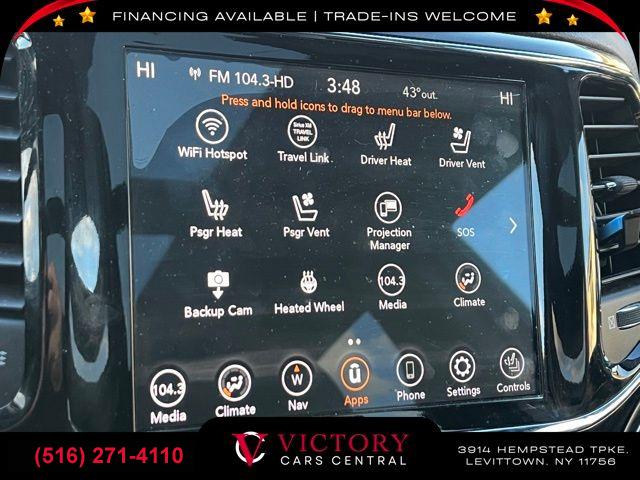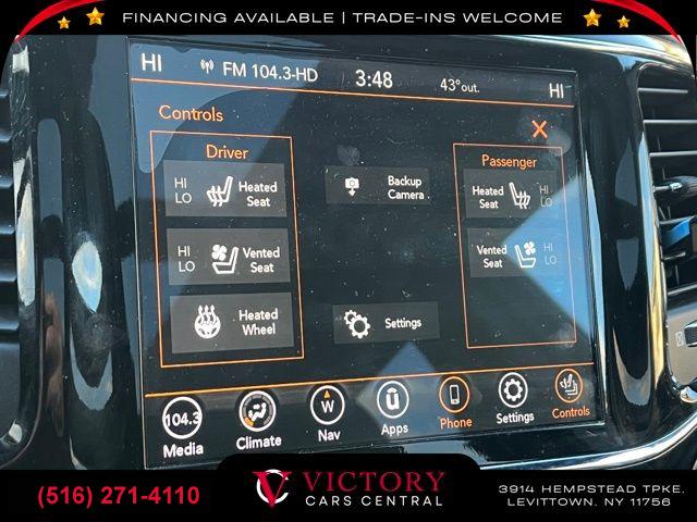 GPS Navigation, Navigation System, Luxury Group II, Quick Order Package 2BH, Quadra-Trac II 4WD System, 506 Watt Amplifier, 6 Speakers, Active Noise Control System, AM/FM radio: SiriusXM, Audio memory, GPS Antenna Input, HD Radio, Integrated Center Stack Radio, Premium Alpine Speaker System, Radio data system, Radio: Uconnect 4C Nav w/8.4" Display, SiriusXM Satellite Radio, Air Conditioning, Automatic temperature control, Front dual zone A/C, Rear window defroster, Heated Second Row Seats, Memory seat, Power driver seat, Power steering, Power windows, Remote keyless entry, Steering wheel mounted audio controls, Four wheel independent suspension, Normal Duty Suspension, Power Tilt/Telescope Steering Column, Speed-sensing steering, Traction control, 4-Wheel Disc Brakes, ABS brakes, Anti-whiplash front head restraints, Dual front impact airbags, Dual front side impact airbags, Emergency communication system: SiriusXM Guardian, Front anti-roll bar, Knee airbag, Low tire pressure warning, Occupant sensing airbag, Overhead airbag, Rear anti-roll bar, Dual-Pane Panoramic Sunroof, Power moonroof, Power Liftgate, Brake assist, Electronic Stability Control, ParkView Rear Back-Up Camera, Delay-off headlights, Front fog lights, Fully automatic headlights, Panic alarm, Security system, Speed control, Selec-Terrain System, Engine Oil Cooler, Auto-dimming door mirrors, Bumpers: body-color, Front License Plate Bracket, Heated door mirrors, Manufacturer's Statement of Origin (DISC), Power door mirrors, Spoiler, Turn signal indicator mirrors, 1-Year SiriusXM Guardian Trial, 4G LTE Wi-Fi Hot Spot, 8.4" Touchscreen Display, Apple CarPlay, Apple CarPlay/Android Auto, Auto-dimming Rear-View mirror, Compass, Driver door bin, Driver vanity mirror, Front reading lights, Garage door transmitter, Google Android Auto, Heated steering wheel, Illuminated entry, Integrated Voice Command w/Bluetooth, Leather Shift Knob, Leather Trim Seats w/Perforated Inserts, Outside temperature display, Overhead console, Passenger vanity mirror, Rear reading lights, Rear seat center armrest, SiriusXM Traffic Plus, SiriusXM Travel Link, Tachometer, Telescoping steering wheel, Tilt steering wheel, Trip computer, USB Host Flip, Voltmeter, Front Bucket Seats, Heated front seats, Leather Trimmed Bucket Seats, Power passenger seat, Split folding rear seat, Ventilated Front Seats, Cargo Compartment Cover, Front Center Armrest w/Storage, Passenger door bin, Alloy wheels, Wheels: 18" x 8.0" Tech Gray Diamond Cut, Rain Sensitive Windshield Wipers, Rear window wiper, Speed-Sensitive Wipers, Variably intermittent wipers, 3.45 Rear Axle Ratio