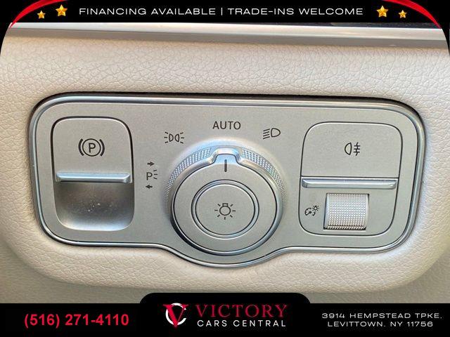 Navigation system: MBUX, 8 Speakers, Aerial for GPS, AM/FM radio, DVD-Audio, HD Radio, Premium audio system: MBUX, Radio data system, Radio: MBUX Multimedia System, Weather band radio, Air Conditioning, Automatic temperature control, Front dual zone A/C, Rear window defroster, Memory seat, Power driver seat, Power steering, Power windows, Remote keyless entry, Steering wheel memory, Steering wheel mounted audio controls, Four wheel independent suspension, Speed-sensing steering, Traction control, 4-Wheel Disc Brakes, ABS brakes, Anti-whiplash front head restraints, Dual front impact airbags, Dual front side impact airbags, Emergency communication system: eCall Emergency System, Front anti-roll bar, Knee airbag, Low tire pressure warning, Occupant sensing airbag, Overhead airbag, Power adjustable front head restraints, Rear anti-roll bar, Power moonroof, Smartphone Integration, Power Liftgate, Brake assist, Electronic Stability Control, Exterior Parking Camera Rear, Delay-off headlights, Fully automatic headlights, Rear fog lights, Panic alarm, Security system, Speed control, Auto-dimming door mirrors, Bumpers: body-color, Heated door mirrors, Power door mirrors, Roof rack: rails only, Spoiler, Turn signal indicator mirrors, Android Auto®, Apple CarPlay®, Apple CarPlay®/Android Auto®, Auto tilt-away steering wheel, Auto-dimming Rear-View mirror, Compass, Driver door bin, Driver vanity mirror, eCall Emergency System, Front reading lights, Garage door transmitter: Homelink, Genuine wood console insert, Genuine wood dashboard insert, Genuine wood door panel insert, Heated Power Front Seats w/Driver Memory, Illuminated entry, Leather steering wheel, Live Traffic, MB Navigation, MBUX Voice Control, Navigation Services, Navigation Updates for 3 Years, Outside temperature display, Passenger vanity mirror, Rear reading lights, Rear seat center armrest, Tachometer, Telescoping steering wheel, Tilt steering wheel, Trip computer, Wide Screen Media Display, 4-Way Lumbar Support, Front Bucket Seats, Front Center Armrest, Heated Front Bucket Seats, Heated front seats, MB-Tex Leatherette Seat Trim, Power passenger seat, Split folding rear seat, Passenger door bin, Alloy wheels, Wheels: 19" Twin 5-Spoke, Rain sensing wipers, Rear window wiper, Speed-Sensitive Wipers, Axle Ratio: 3.69