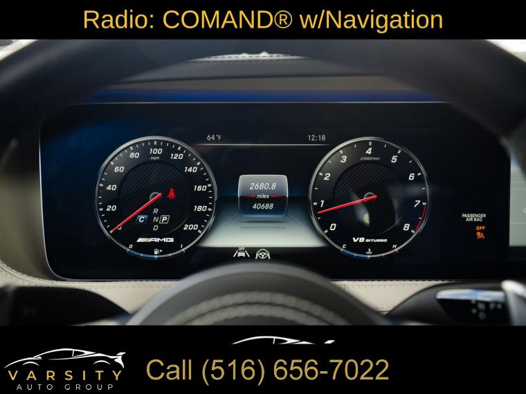 Navigation System, Driver Assistance Package, Driver Assistance Package (23P), 13 Speakers, AM/FM radio: SiriusXM, Burmester® Surround Sound System, Pre-Wiring for CD Player, Radio data system, Radio: COMAND® w/Navigation, SiriusXM Satellite Radio, Weather band radio, Air Conditioning, Automatic temperature control, Front dual zone A/C, HVAC memory, Rear window defroster, Head restraints memory, Head-Up Display, Memory seat, Power driver seat, Power Front Seats w/Memory, Power steering, Power windows, Remote keyless entry, Steering wheel memory, Steering wheel mounted audio controls, Adaptive suspension, AMG® Performance Steering Wheel in Nappa/DINAMICA, Auto-leveling suspension, Four wheel independent suspension, Speed-sensing steering, Traction control, 4-Wheel Disc Brakes, ABS brakes, AMG® Red-Painted Brake Calipers, Child-Seat-Sensing Airbag, Dual front impact airbags, Dual front side impact airbags, Emergency communication system: eCall Emergency System, Front anti-roll bar, Knee airbag, Low tire pressure warning, Occupant sensing airbag, Overhead airbag, Power adjustable front head restraints, Power adjustable rear head restraints, Rear anti-roll bar, Rear side impact airbag, Power moonroof: Panorama, Smartphone Integration, Brake assist, Electronic Stability Control, Auto High-beam Headlights, Delay-off headlights, Rear fog lights, Panic alarm, Security system, Active Distance Assist DISTRONIC®, Active Steering Assist, Speed control, Auto-dimming door mirrors, Bumpers: body-color, Door auto-latch, Heated door mirrors, Power door mirrors, Turn signal indicator mirrors, Active Lane Change Assist, Active Speed Limit Assist, AMG® Floormats, Android Auto®, Apple CarPlay®, Apple CarPlay®/Android Auto®, Auto tilt-away steering wheel, Auto-dimming Rear-View mirror, Compass, Driver door bin, Driver vanity mirror, Extended Restart in Stop & Go Traffic, Front reading lights, Garage door transmitter: Homelink, Genuine wood console insert, Genuine wood door panel insert, Illuminated entry, Leather steering wheel, Navigation Map Updates for 3 Years, NFC Wireless Charging, Outside temperature display, Overhead console, Passenger vanity mirror, Rear reading lights, Rear seat center armrest, Route-Based Speed Adaptation, Sport steering wheel, Tachometer, Telescoping steering wheel, Tilt steering wheel, Traffic Sign Assist, Trip computer, Front Bucket Seats, Front Center Armrest, Heated & Ventilated Front Seats, Heated front seats, Multicontour Front Seats w/Massage Feature, Perforated Nappa Leather Upholstery, Power passenger seat, Ventilated front seats, Passenger door bin, Alloy wheels, Wheels: 20" AMG® 5-Spoke Titanium w/Black Accents, Rear Window Blind, Rain sensing wipers, Variably intermittent wipers, The Price you See, is the Price You Pay!!!, S 63 AMG 4MATIC, ORIGINAL MSRP $165, 695, 00