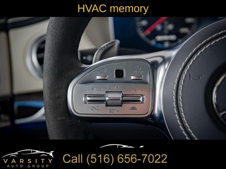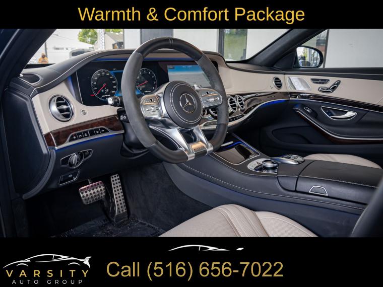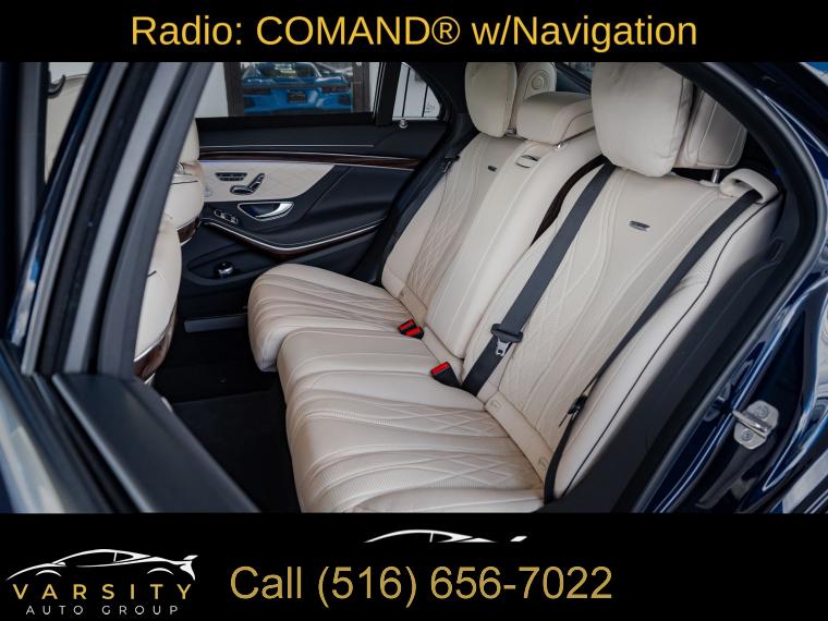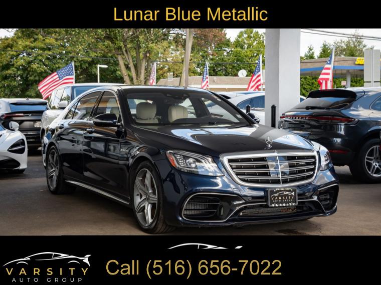 2020 Mercedes-Benz S-Class S 63 AMG 4MATIC, Lunar Blue Metallic, Porcelain/Black w/Exclusive Nappa Leather Upholstery, Driver Assistance Package, Warmth & Comfort Package, 4MATIC®, Porcelain/Black w/Exclusive Nappa Leather Upholstery, 13 Speakers, 4-Wheel Disc Brakes, ABS brakes, Active Distance Assist DISTRONIC®, Active Lane Change Assist, Active Speed Limit Assist, Active Steering Assist, Adaptive suspension, Air Conditioning, Alloy wheels, AM/FM radio: SiriusXM, AMG® Exclusive Floormats, AMG® Floormats, AMG® Performance Steering Wheel in Nappa/DINAMICA, AMG® Red-Painted Brake Calipers, Android Auto®, Apple CarPlay®, Apple CarPlay®/Android Auto®, Auto High-beam Headlights, Auto tilt-away steering wheel, Auto-dimming door mirrors, Auto-dimming Rear-View mirror, Auto-leveling suspension, Automatic temperature control, Black DINAMICA Headliner, Brake assist, Bumpers: body-color, Burmester® Surround Sound System, Child-Seat-Sensing Airbag, Compass, Delay-off headlights, Door auto-latch, Driver Assistance Package, Driver Assistance Package (23P), Driver door bin, Driver vanity mirror, Dual front impact airbags, Dual front side impact airbags, Electronic Stability Control, Emergency communication system: eCall Emergency System, Exclusive Nappa Leather Upholstery, Exclusive Trim (Additional Wood Trim), Extended Restart in Stop & Go Traffic, Four wheel independent suspension, Front anti-roll bar, Front Bucket Seats, Front Center Armrest, Front dual zone A/C, Front reading lights, Garage door transmitter: Homelink, Genuine wood console insert, Genuine wood door panel insert, Head restraints memory, Head-Up Display, Heated & Active Ventilated Rear Seats, Heated & Ventilated Front Seats, Heated door mirrors, Heated Front Armrests, Heated front seats, Heated Rear Armrests, Heated Steering Wheel, Heated Windshield, HVAC memory, Illuminated entry, Knee airbag, Leather steering wheel, Low tire pressure warning, Memory seat, Multicontour Front Seats w/Massage Feature, Navigation Map Updates for 3 Years, Navigation System, NFC Wireless Charging, Occupant sensing airbag, Outside temperature display, Overhead airbag, Overhead console, Panic alarm, Passenger door bin, Passenger vanity mirror, Perforated Nappa Leather Upholstery, Power adjustable front head restraints, Power adjustable rear head restraints, Power door mirrors, Power driver seat, Power Front Seats w/Memory, Power moonroof: Panorama, Power passenger seat, Power Rear Seats, Power steering, Power windows, Pre-Wiring for CD Player, Radio data system, Radio: COMAND® w/Navigation, Rain sensing wipers, Rear anti-roll bar, Rear fog lights, Rear Heated Seats PLUS, Rear Memory Seats, Rear reading lights, Rear seat center armrest, Rear side impact airbag, Rear Window Blind, Rear window defroster, Remote keyless entry, Route-Based Speed Adaptation, Security system, SiriusXM Satellite Radio, Smartphone Integration, Speed control, Speed-sensing steering, Sport steering wheel, Steering wheel memory, Steering wheel mounted audio controls, Tachometer, Telescoping steering wheel, Tilt steering wheel, Traction control, Traffic Sign Assist, Trip computer, Turn signal indicator mirrors, Variably intermittent wipers, Ventilated front seats, Warmth & Comfort Package, Warmth & Comfort Package (P69), Weather band radio, Wheels: 20" AMG® 5-Spoke Titanium w/Black Accents. Lunar Blue Metallic 2020 Mercedes-Benz S-Class S 63 AMG® 4MATIC® 4MATIC® 9-Speed Automatic 4.0L V8 Odometer is 7252 miles below market average! 17/26 City/Highway MPG