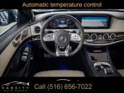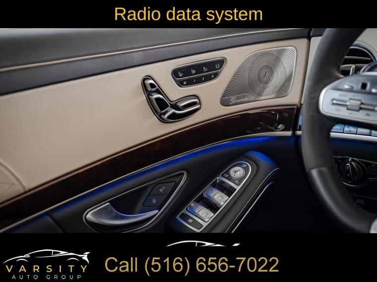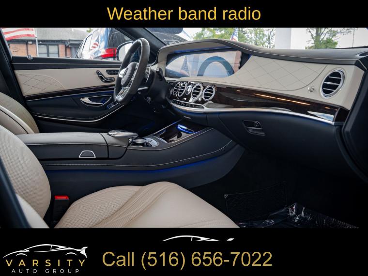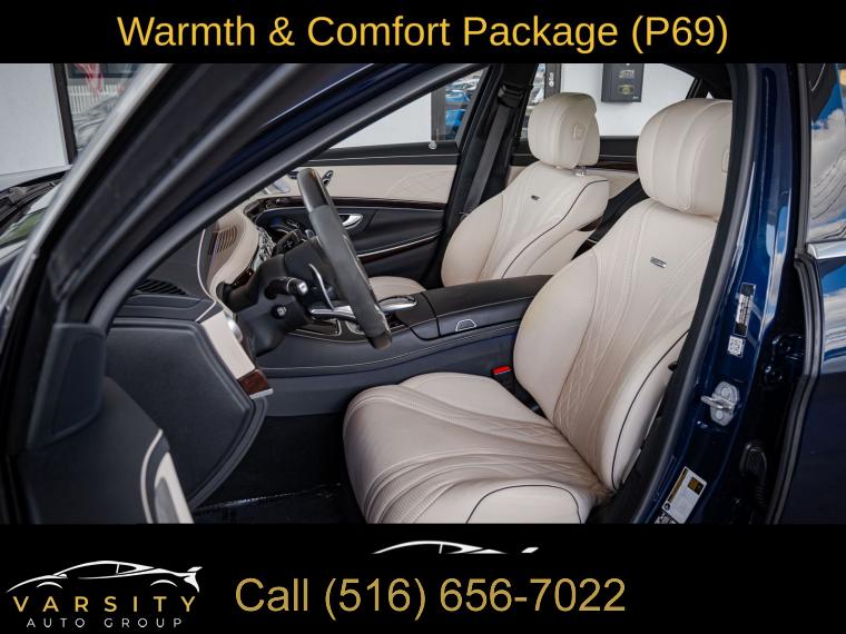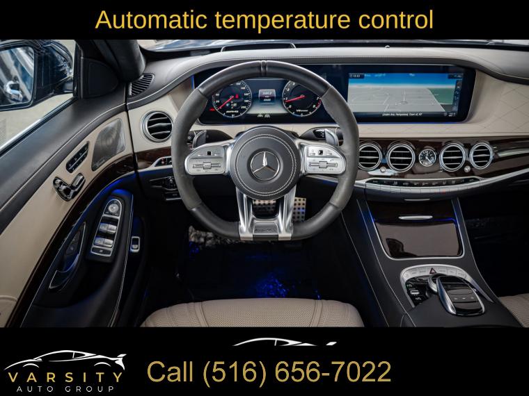 Navigation System, Driver Assistance Package, Driver Assistance Package (23P), Warmth & Comfort Package, Warmth & Comfort Package (P69), 13 Speakers, AM/FM radio: SiriusXM, Burmester® Surround Sound System, Pre-Wiring for CD Player, Radio data system, Radio: COMAND® w/Navigation, SiriusXM Satellite Radio, Weather band radio, Air Conditioning, Automatic temperature control, Front dual zone A/C, HVAC memory, Rear window defroster, Head restraints memory, Head-Up Display, Heated & Active Ventilated Rear Seats, Memory seat, Power driver seat, Power Front Seats w/Memory, Power Rear Seats, Power steering, Power windows, Rear Memory Seats, Remote keyless entry, Steering wheel memory, Steering wheel mounted audio controls, Adaptive suspension, AMG® Performance Steering Wheel in Nappa/DINAMICA, Auto-leveling suspension, Four wheel independent suspension, Speed-sensing steering, Traction control, 4-Wheel Disc Brakes, ABS brakes, AMG® Red-Painted Brake Calipers, Child-Seat-Sensing Airbag, Dual front impact airbags, Dual front side impact airbags, Emergency communication system: eCall Emergency System, Front anti-roll bar, Knee airbag, Low tire pressure warning, Occupant sensing airbag, Overhead airbag, Power adjustable front head restraints, Power adjustable rear head restraints, Rear anti-roll bar, Rear side impact airbag, Power moonroof: Panorama, Smartphone Integration, Brake assist, Electronic Stability Control, Auto High-beam Headlights, Delay-off headlights, Rear fog lights, Panic alarm, Security system, Active Distance Assist DISTRONIC®, Active Steering Assist, Speed control, Auto-dimming door mirrors, Bumpers: body-color, Door auto-latch, Heated door mirrors, Power door mirrors, Turn signal indicator mirrors, Active Lane Change Assist, Active Speed Limit Assist, AMG® Exclusive Floormats, AMG® Floormats, Android Auto®, Apple CarPlay®, Apple CarPlay®/Android Auto®, Auto tilt-away steering wheel, Auto-dimming Rear-View mirror, Black DINAMICA Headliner, Compass, Driver door bin, Driver vanity mirror, Exclusive Trim (Additional Wood Trim), Extended Restart in Stop & Go Traffic, Front reading lights, Garage door transmitter: Homelink, Genuine wood console insert, Genuine wood door panel insert, Heated Steering Wheel, Illuminated entry, Leather steering wheel, Navigation Map Updates for 3 Years, NFC Wireless Charging, Outside temperature display, Overhead console, Passenger vanity mirror, Rear reading lights, Rear seat center armrest, Route-Based Speed Adaptation, Sport steering wheel, Tachometer, Telescoping steering wheel, Tilt steering wheel, Traffic Sign Assist, Trip computer, Exclusive Nappa Leather Upholstery, Front Bucket Seats, Front Center Armrest, Heated & Ventilated Front Seats, Heated Front Armrests, Heated front seats, Heated Rear Armrests, Multicontour Front Seats w/Massage Feature, Perforated Nappa Leather Upholstery, Power passenger seat, Rear Heated Seats PLUS, Ventilated front seats, Passenger door bin, Alloy wheels, Wheels: 20" AMG® 5-Spoke Titanium w/Black Accents, Heated Windshield, Rear Window Blind, Rain sensing wipers, Variably intermittent wipers, 2020 Mercedes-Benz S-Class S 63 AMG 4MATIC, Lunar Blue Metallic, Porcelain/Black w/Exclusive Nappa Leather Upholstery