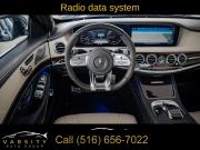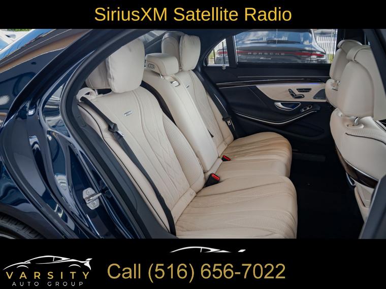 Navigation System, Driver Assistance Package, Driver Assistance Package (23P), Warmth & Comfort Package, Warmth & Comfort Package (P69), 13 Speakers, AM/FM radio: SiriusXM, Burmester® Surround Sound System, Pre-Wiring for CD Player, Radio data system, Radio: COMAND® w/Navigation, SiriusXM Satellite Radio, Weather band radio, Air Conditioning, Automatic temperature control, Front dual zone A/C, HVAC memory, Rear window defroster, Head restraints memory, Head-Up Display, Heated & Active Ventilated Rear Seats, Memory seat, Power driver seat, Power Front Seats w/Memory, Power Rear Seats, Power steering, Power windows, Rear Memory Seats, Remote keyless entry, Steering wheel memory, Steering wheel mounted audio controls, Adaptive suspension, AMG® Performance Steering Wheel in Nappa/DINAMICA, Auto-leveling suspension, Four wheel independent suspension, Speed-sensing steering, Traction control, 4-Wheel Disc Brakes, ABS brakes, AMG® Red-Painted Brake Calipers, Child-Seat-Sensing Airbag, Dual front impact airbags, Dual front side impact airbags, Emergency communication system: eCall Emergency System, Front anti-roll bar, Knee airbag, Low tire pressure warning, Occupant sensing airbag, Overhead airbag, Power adjustable front head restraints, Power adjustable rear head restraints, Rear anti-roll bar, Rear side impact airbag, Power moonroof: Panorama, Smartphone Integration, Brake assist, Electronic Stability Control, Auto High-beam Headlights, Delay-off headlights, Rear fog lights, Panic alarm, Security system, Active Distance Assist DISTRONIC®, Active Steering Assist, Speed control, Auto-dimming door mirrors, Bumpers: body-color, Door auto-latch, Heated door mirrors, Power door mirrors, Turn signal indicator mirrors, Active Lane Change Assist, Active Speed Limit Assist, AMG® Exclusive Floormats, AMG® Floormats, Android Auto®, Apple CarPlay®, Apple CarPlay®/Android Auto®, Auto tilt-away steering wheel, Auto-dimming Rear-View mirror, Black DINAMICA Headliner, Compass, Driver door bin, Driver vanity mirror, Exclusive Trim (Additional Wood Trim), Extended Restart in Stop & Go Traffic, Front reading lights, Garage door transmitter: Homelink, Genuine wood console insert, Genuine wood door panel insert, Heated Steering Wheel, Illuminated entry, Leather steering wheel, Navigation Map Updates for 3 Years, NFC Wireless Charging, Outside temperature display, Overhead console, Passenger vanity mirror, Rear reading lights, Rear seat center armrest, Route-Based Speed Adaptation, Sport steering wheel, Tachometer, Telescoping steering wheel, Tilt steering wheel, Traffic Sign Assist, Trip computer, Exclusive Nappa Leather Upholstery, Front Bucket Seats, Front Center Armrest, Heated & Ventilated Front Seats, Heated Front Armrests, Heated front seats, Heated Rear Armrests, Multicontour Front Seats w/Massage Feature, Perforated Nappa Leather Upholstery, Power passenger seat, Rear Heated Seats PLUS, Ventilated front seats, Passenger door bin, Alloy wheels, Wheels: 20" AMG® 5-Spoke Titanium w/Black Accents, Heated Windshield, Rear Window Blind, Rain sensing wipers, Variably intermittent wipers, The Price you See, is the Price You Pay!!!, 2020 Mercedes-Benz S-Class S 63 AMG 4MATIC, Lunar Blue Metallic, Porcelain/Black w/Exclusive Nappa Leather Upholstery